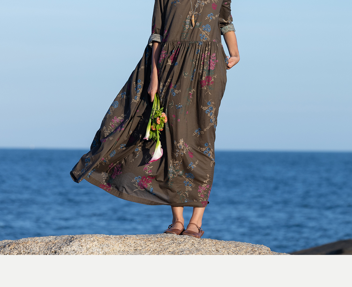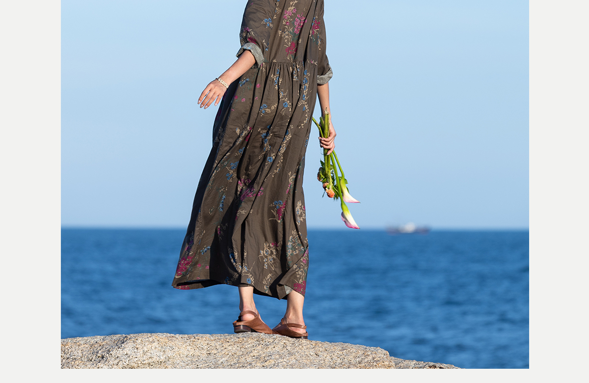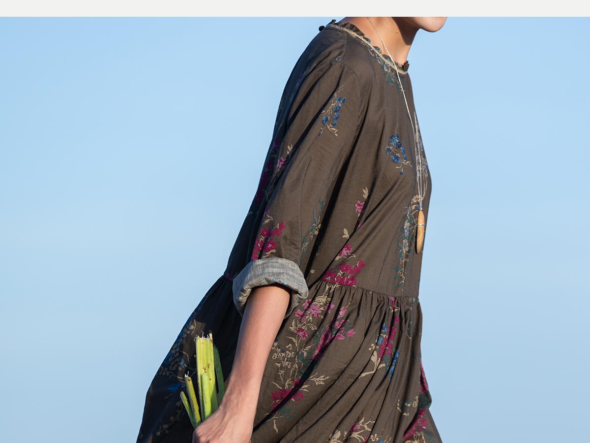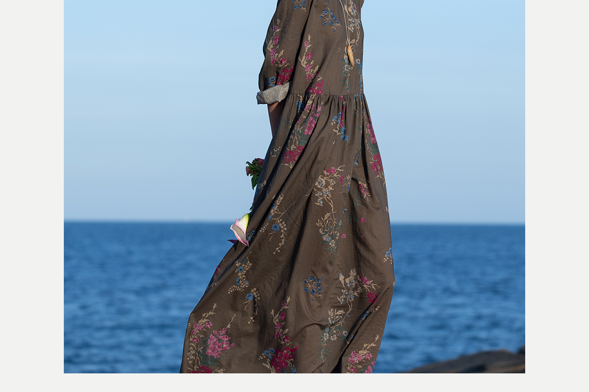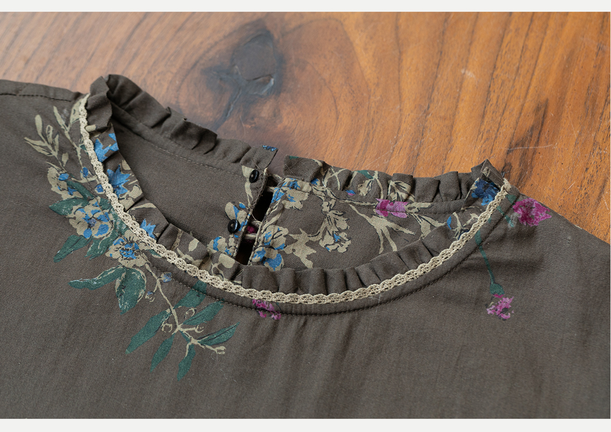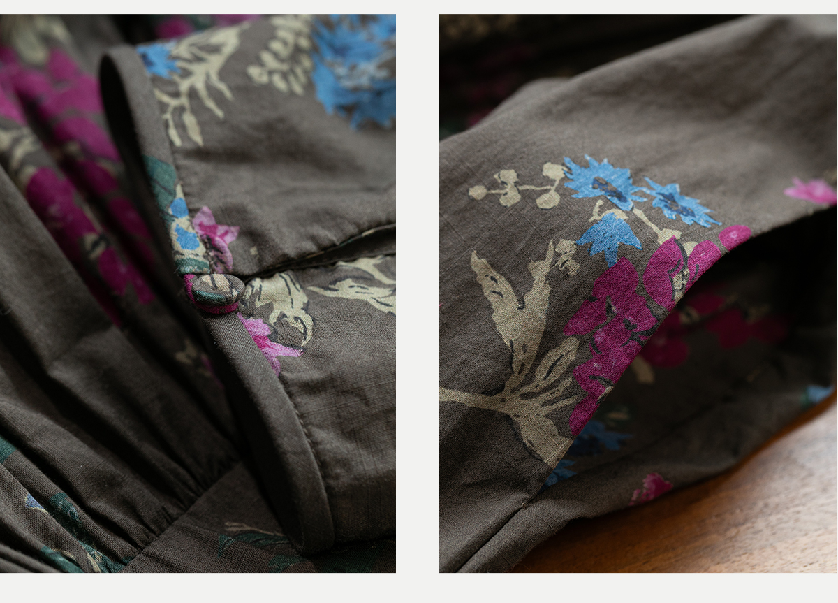 牧衣游原创 印花纯棉连衣裙早秋新款文艺复古碎花气质长裙 碧梧