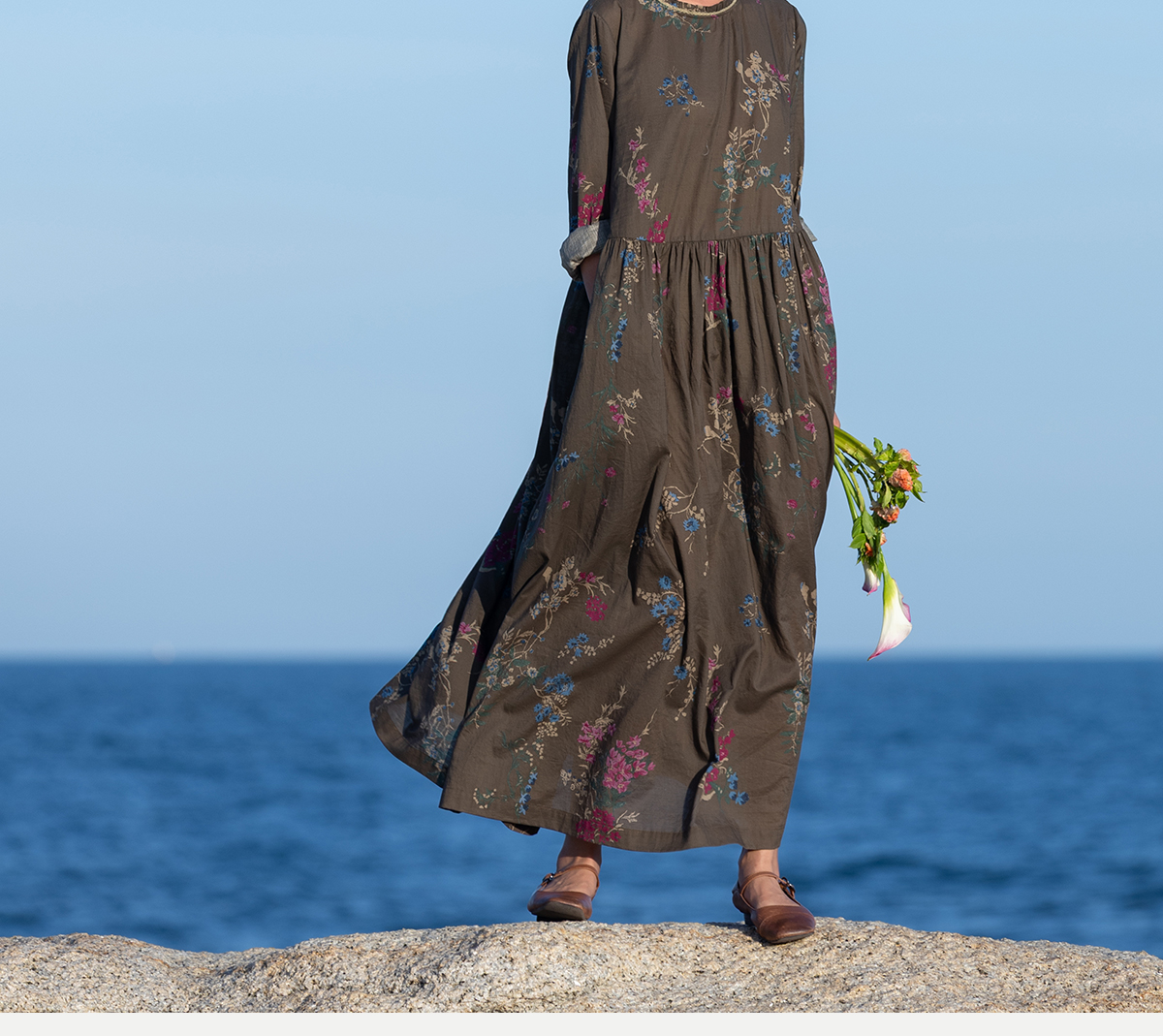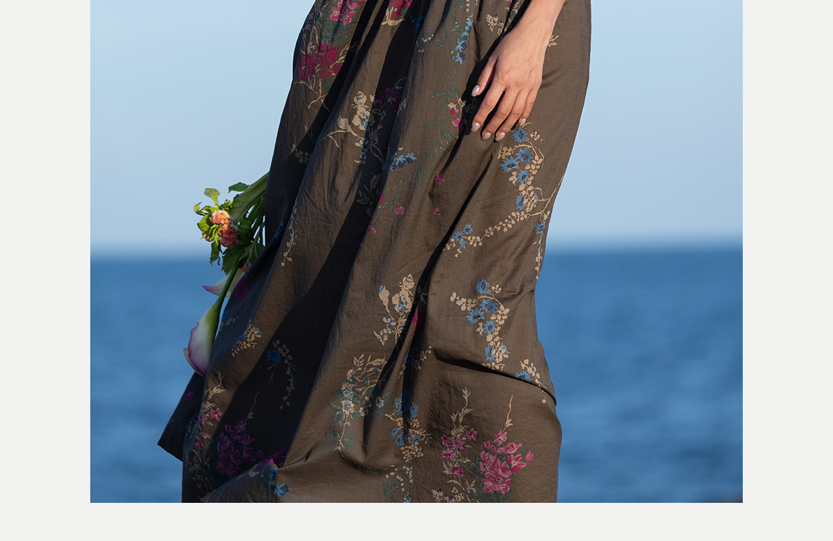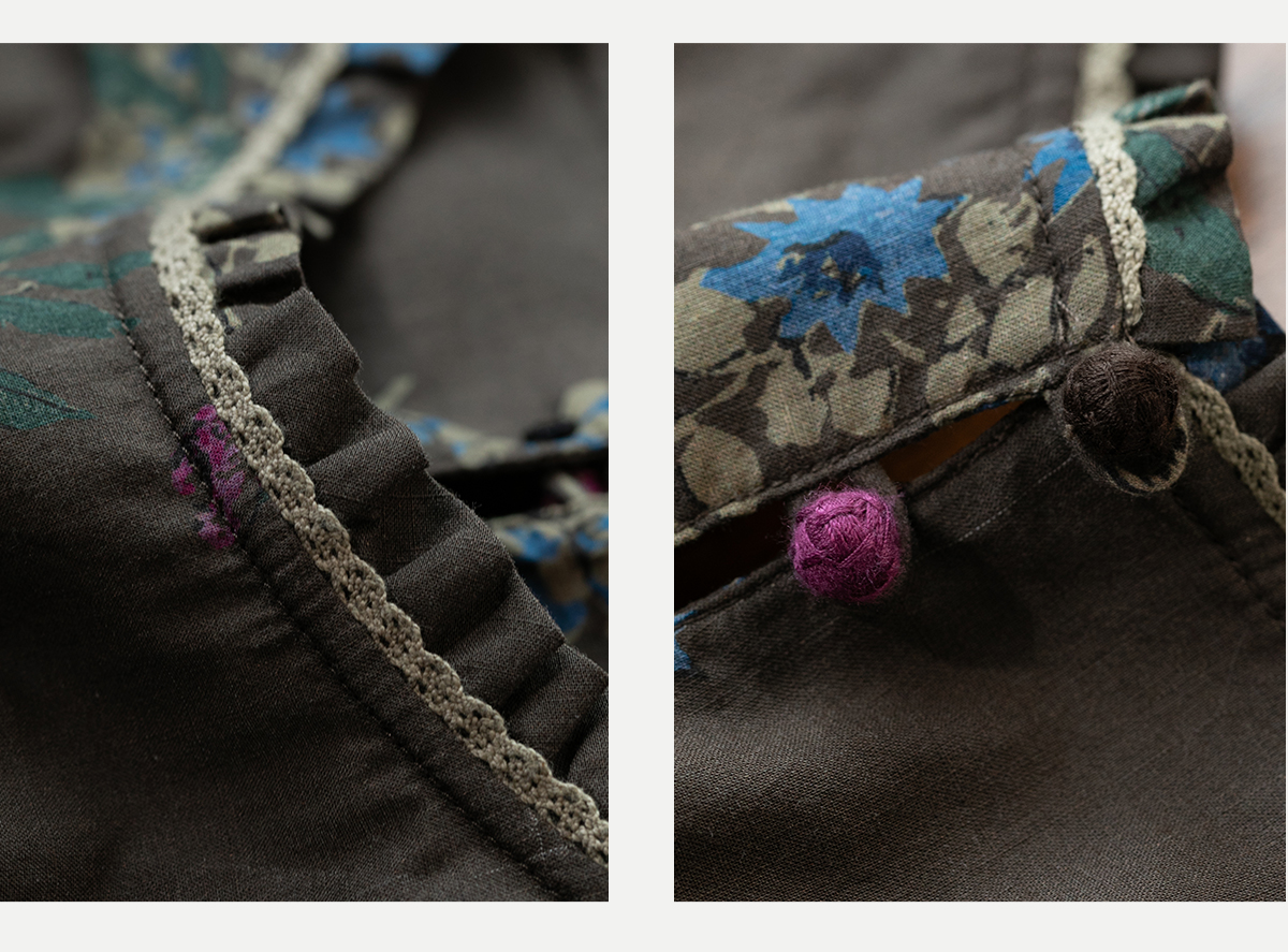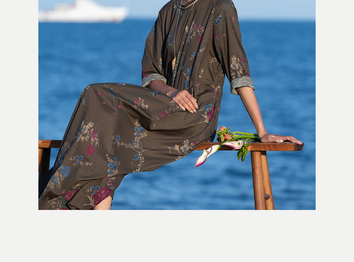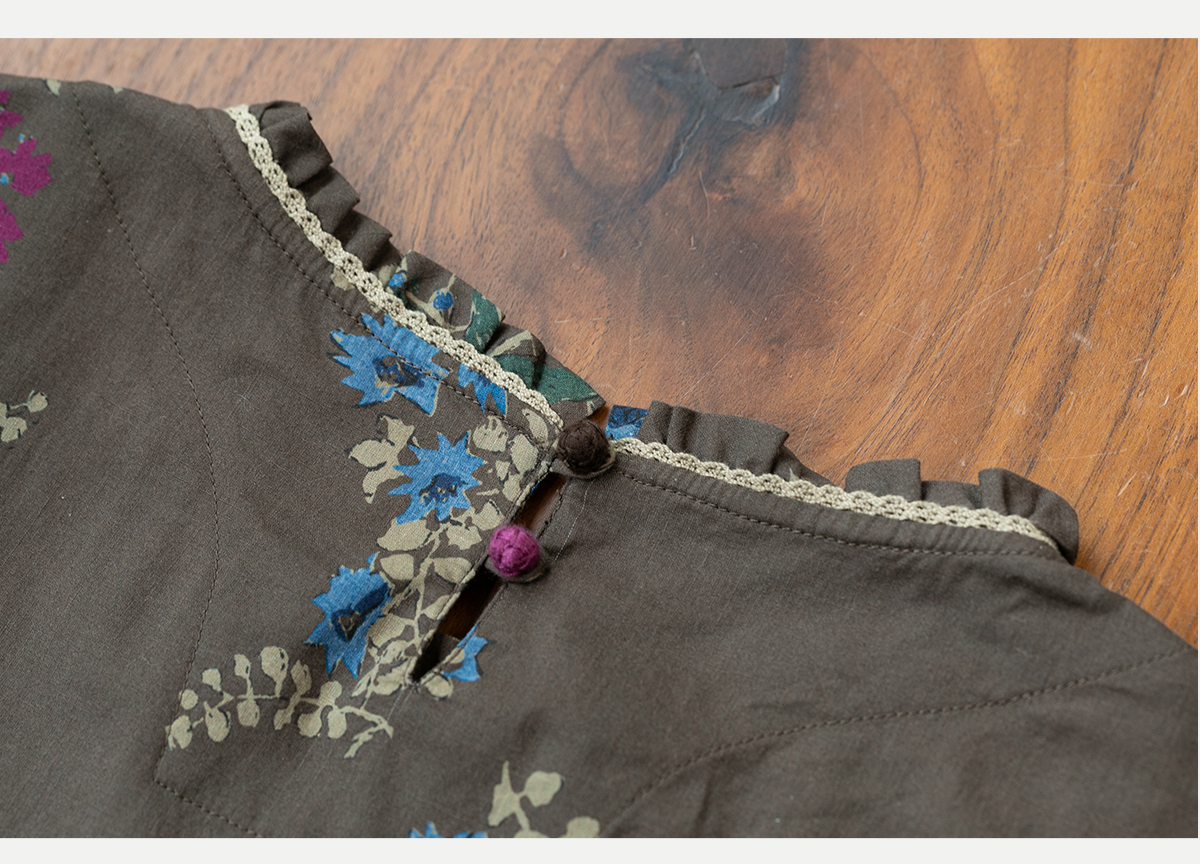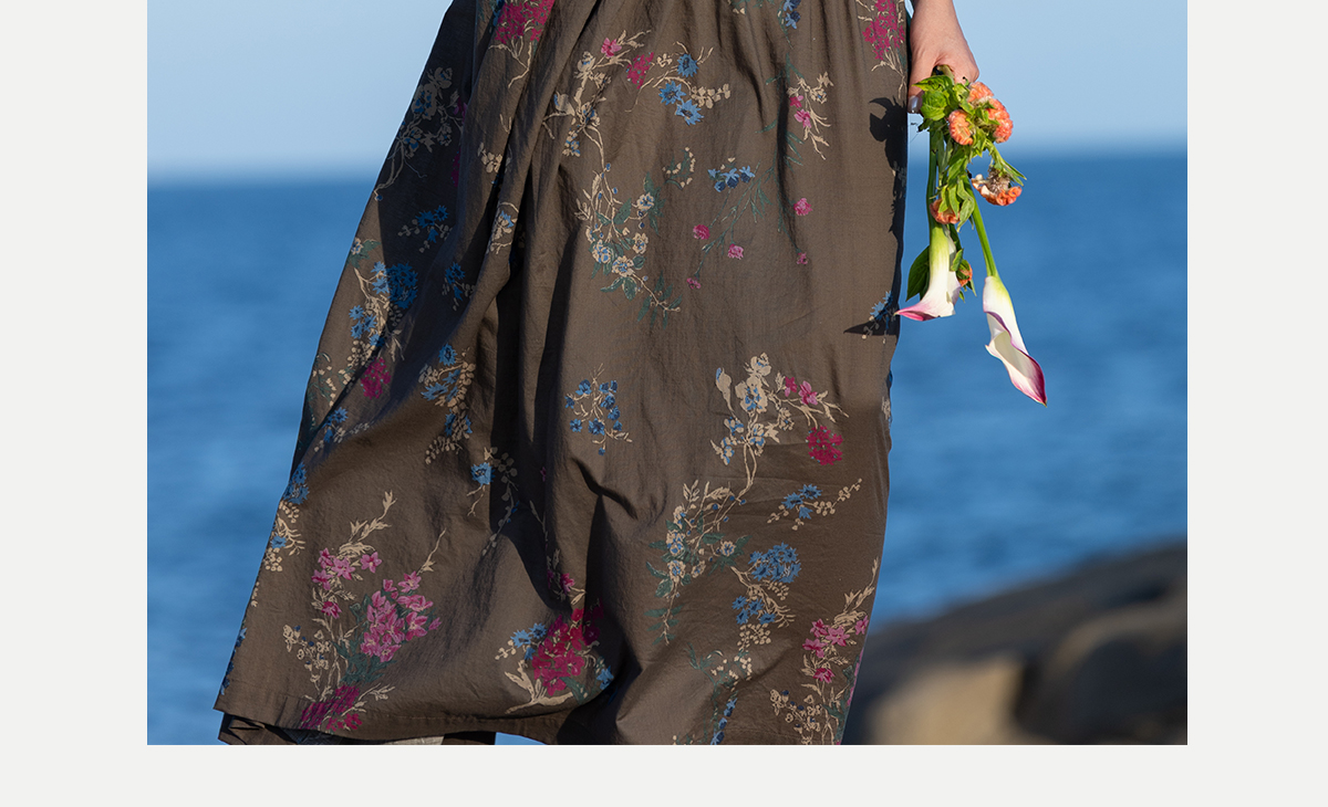 牧衣游原创 印花纯棉连衣裙早秋新款文艺复古碎花气质长裙 碧梧