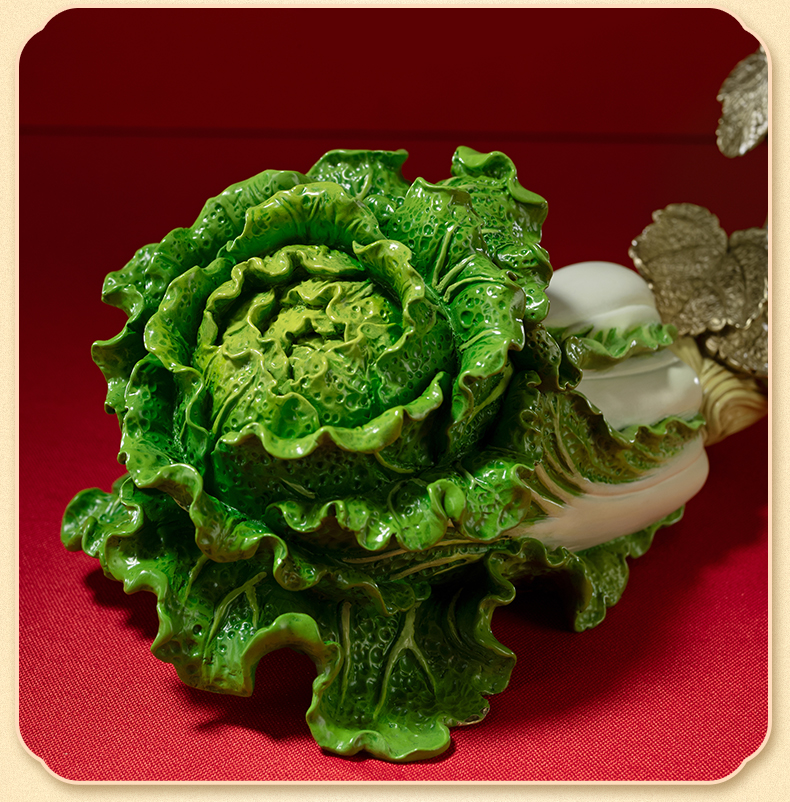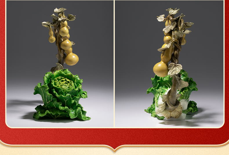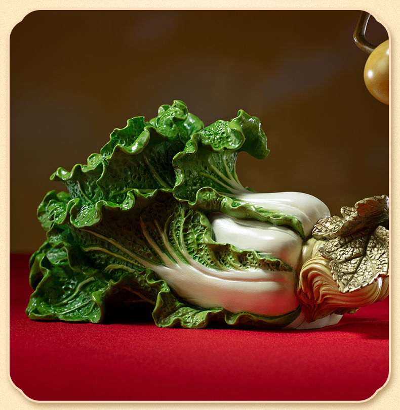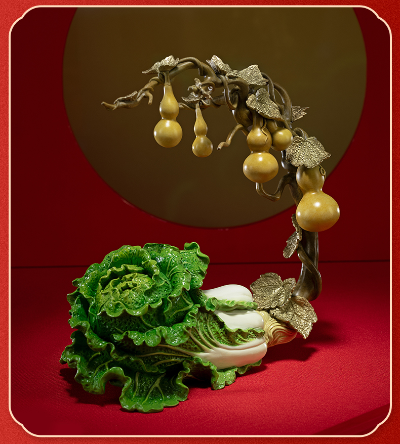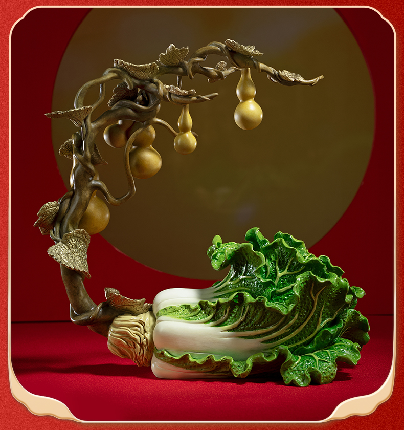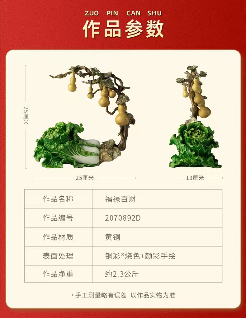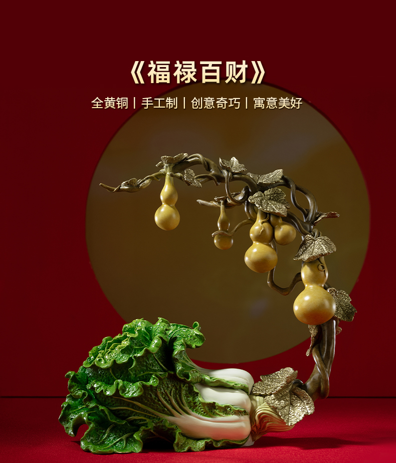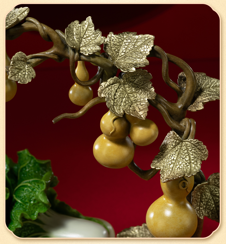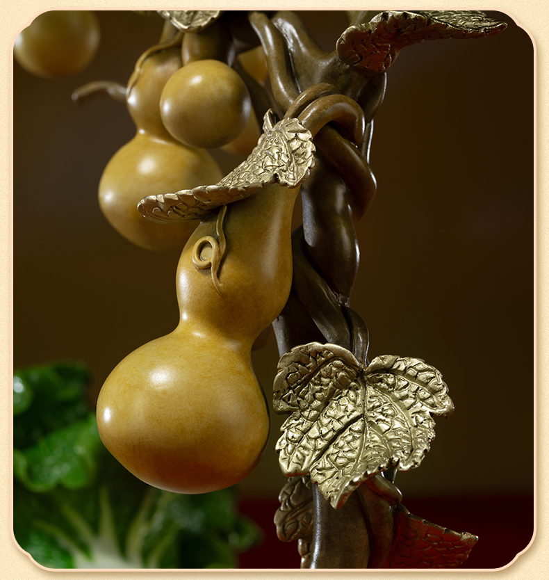 铜师傅《福禄百财》桌面铜葫芦白菜摆件 家居装饰工艺品