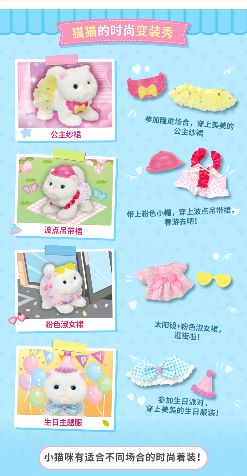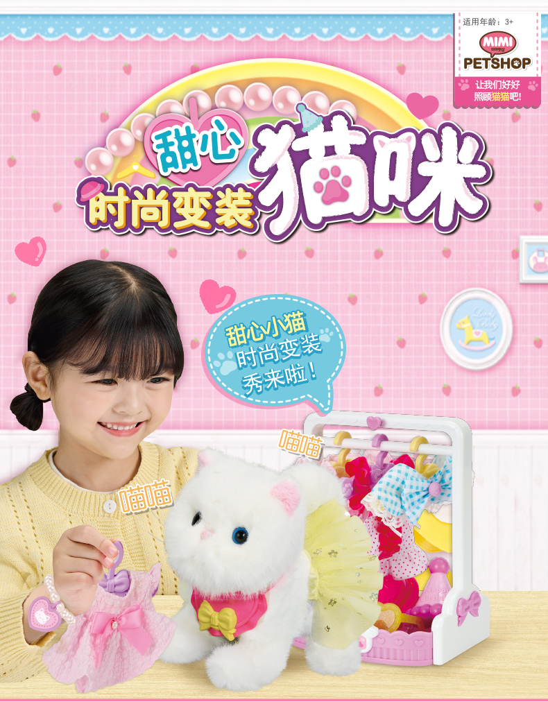 mimiworld儿童换装宠物甜心猫咪装扮裙子会走路摇尾巴女孩玩具猫