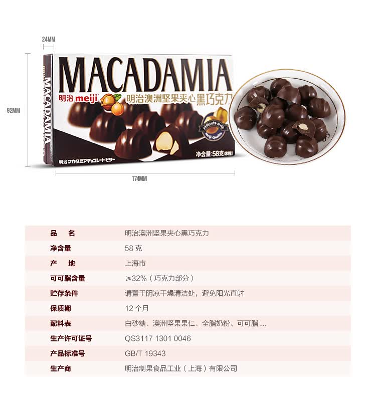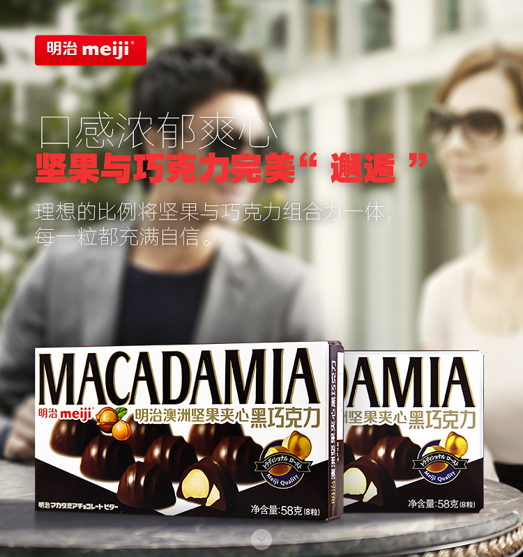 明治澳洲坚果夹心黑巧克力58g