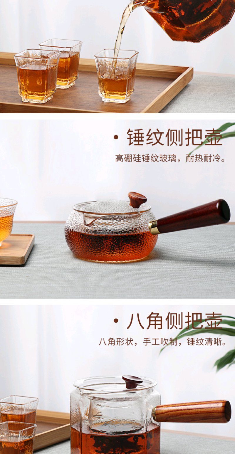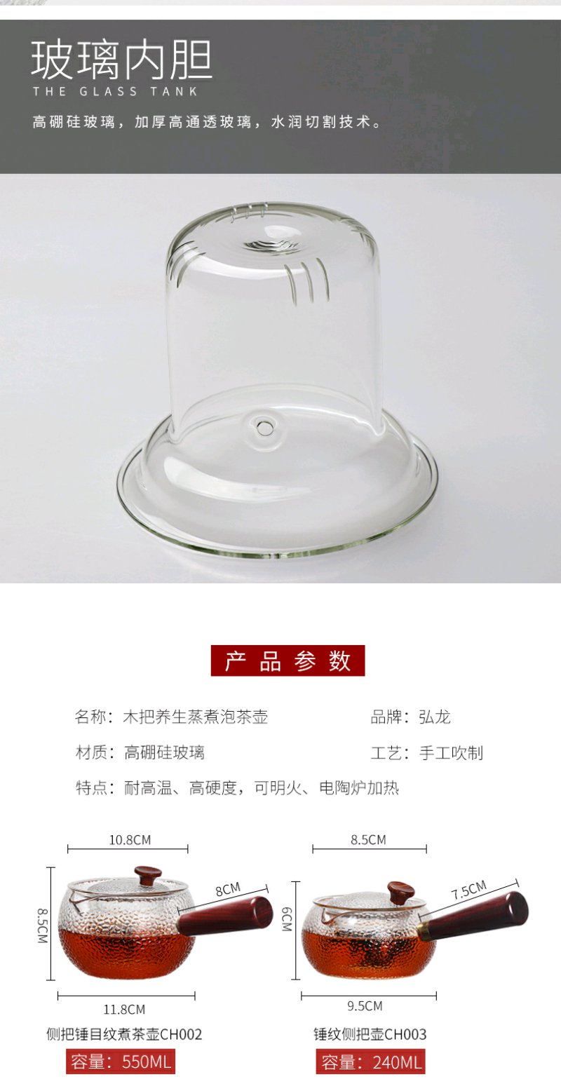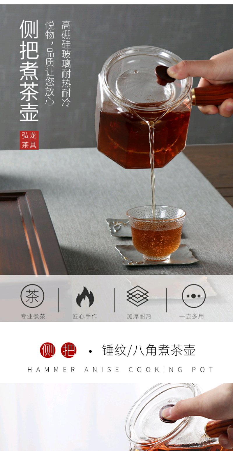 弘龙 侧把壶八角锤纹侧把锤目纹 煮茶壶实木把煮茶器耐高温过滤电陶炉适用茶壶