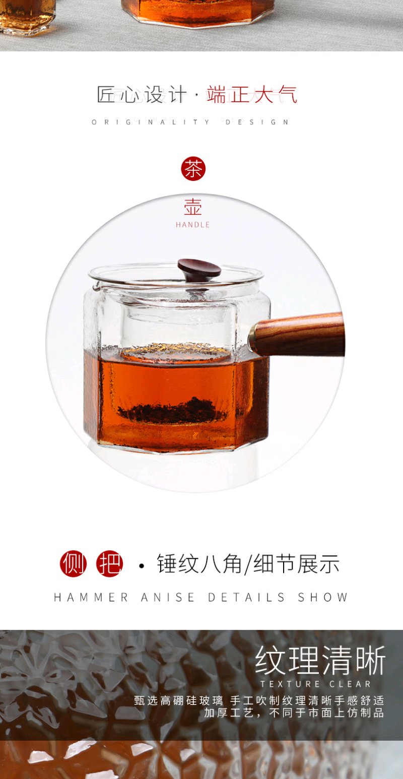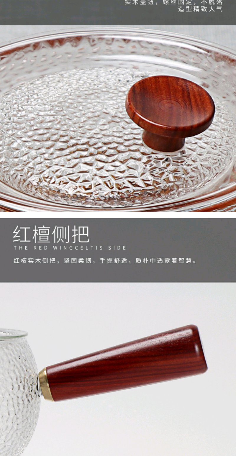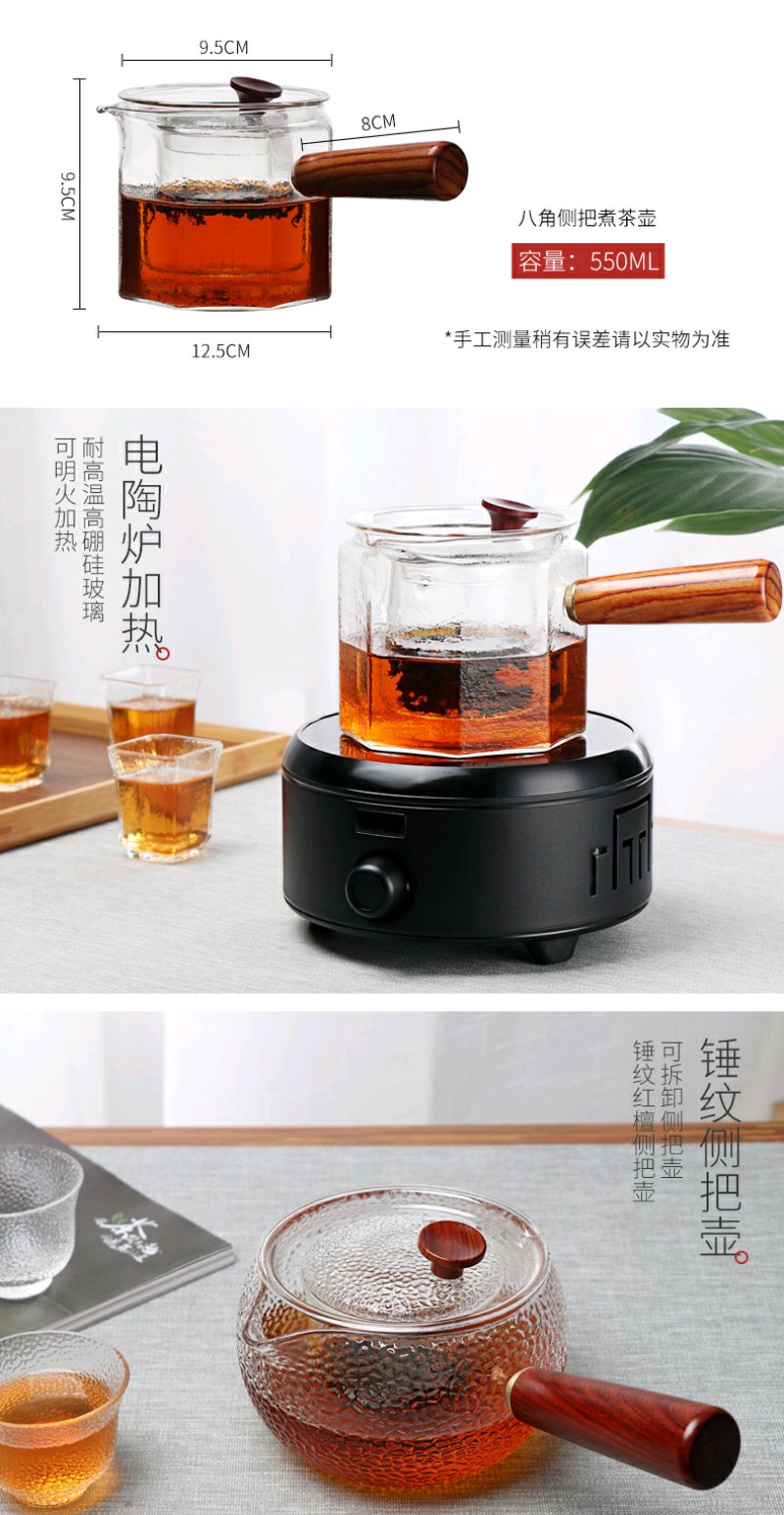 弘龙 侧把壶八角锤纹侧把锤目纹 煮茶壶实木把煮茶器耐高温过滤电陶炉适用茶壶