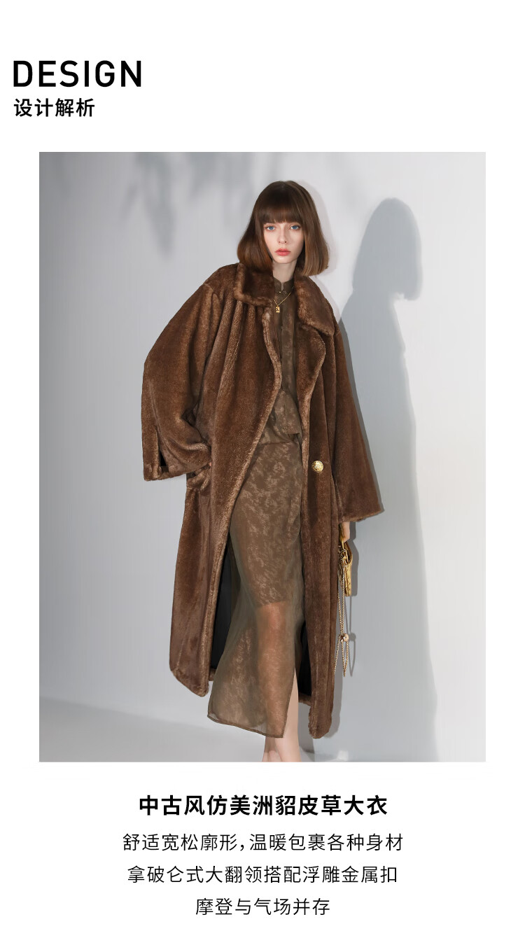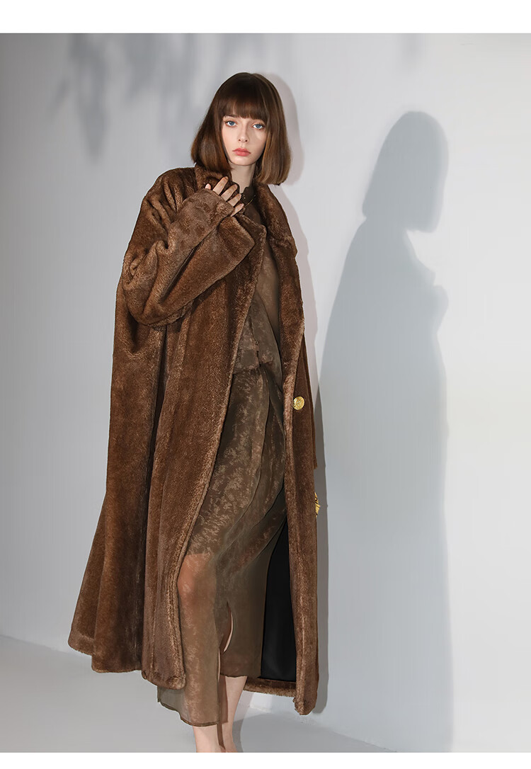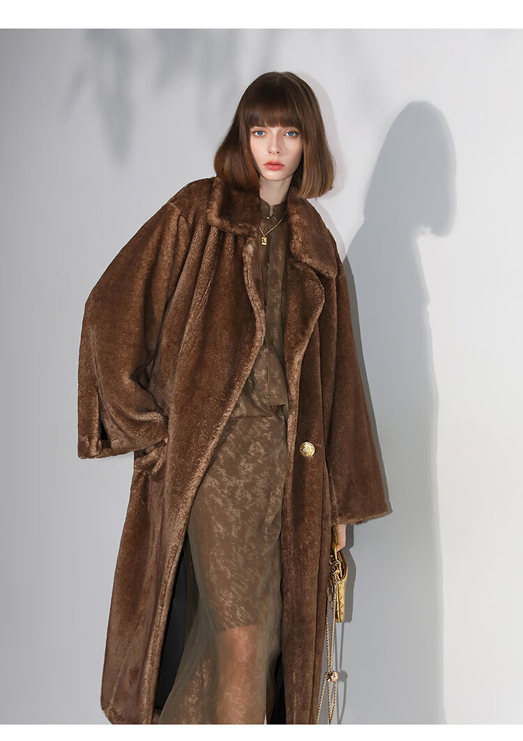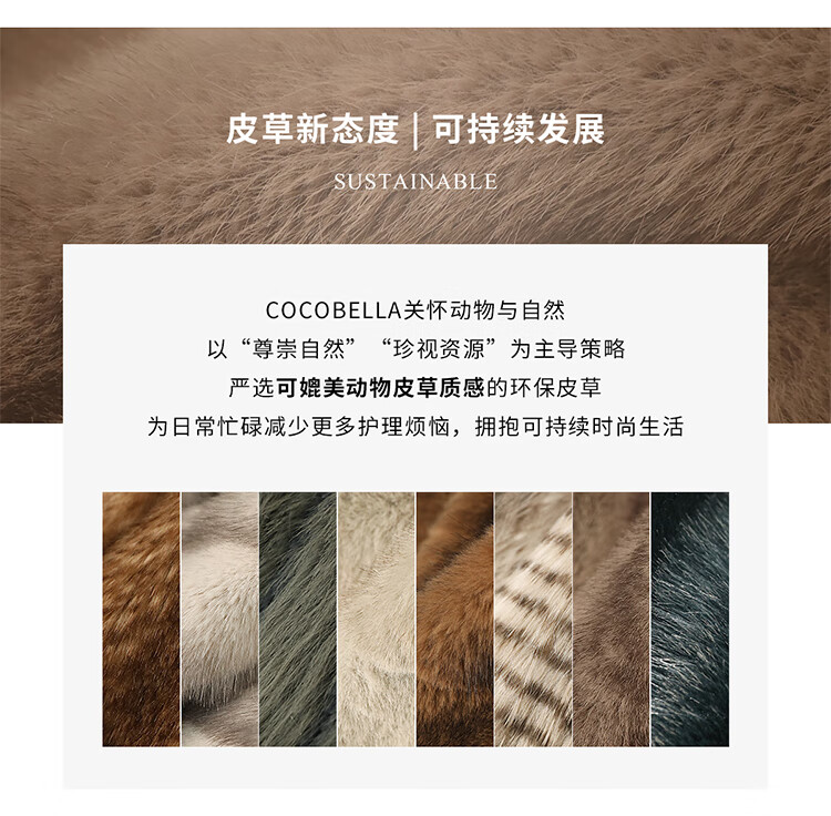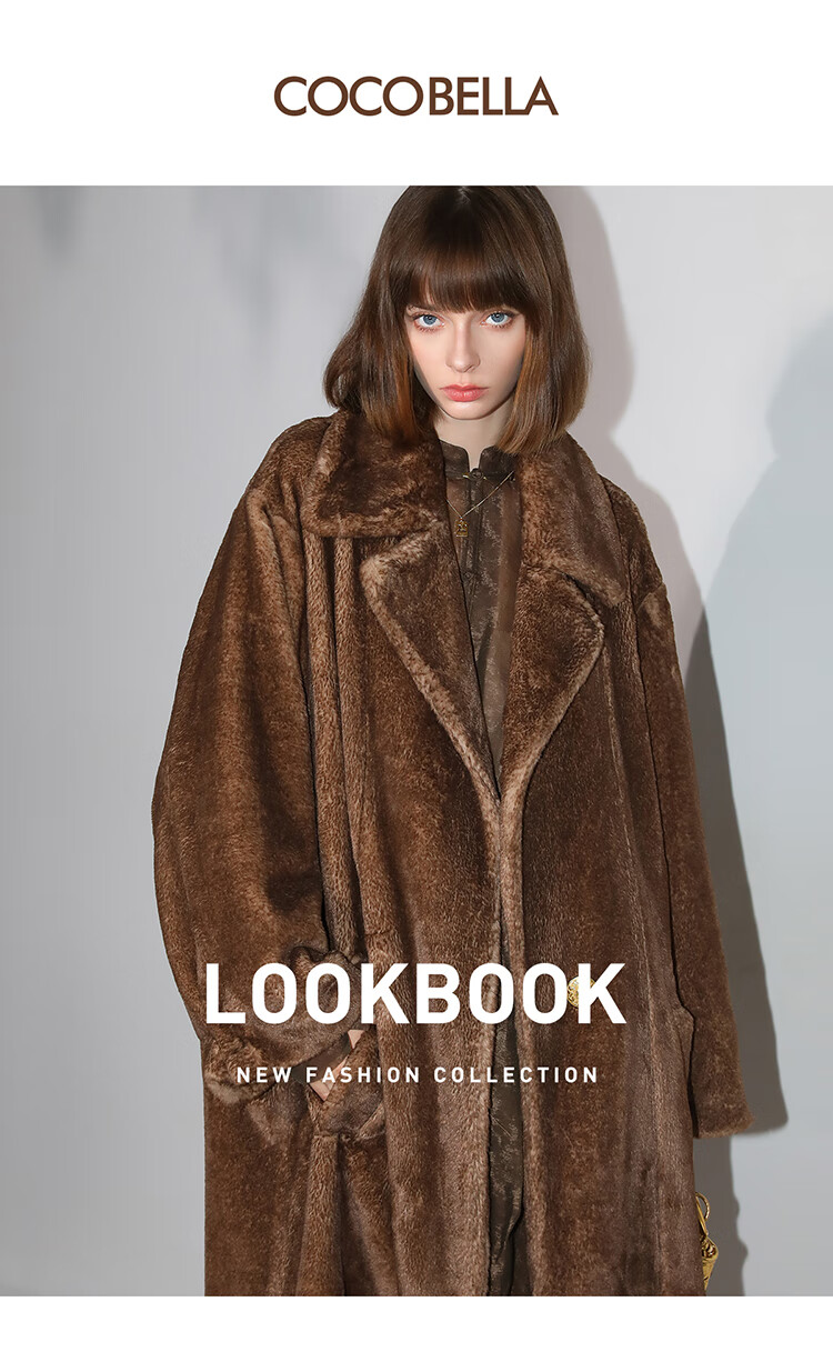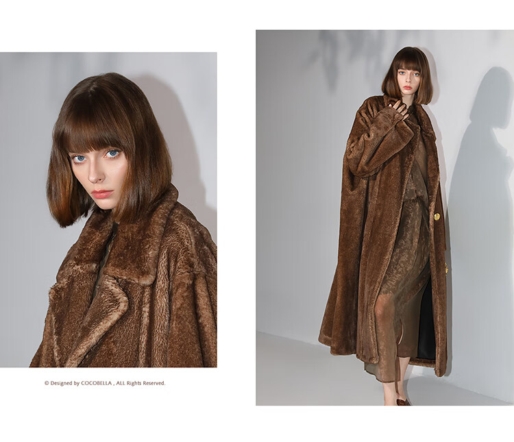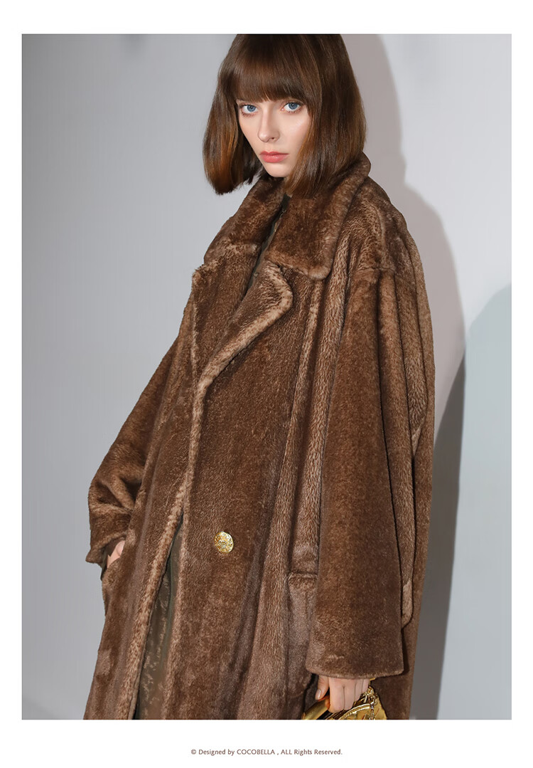 COCOBELLA高奢质感复古环保皮草外套御寒保暖长款大衣FU7003