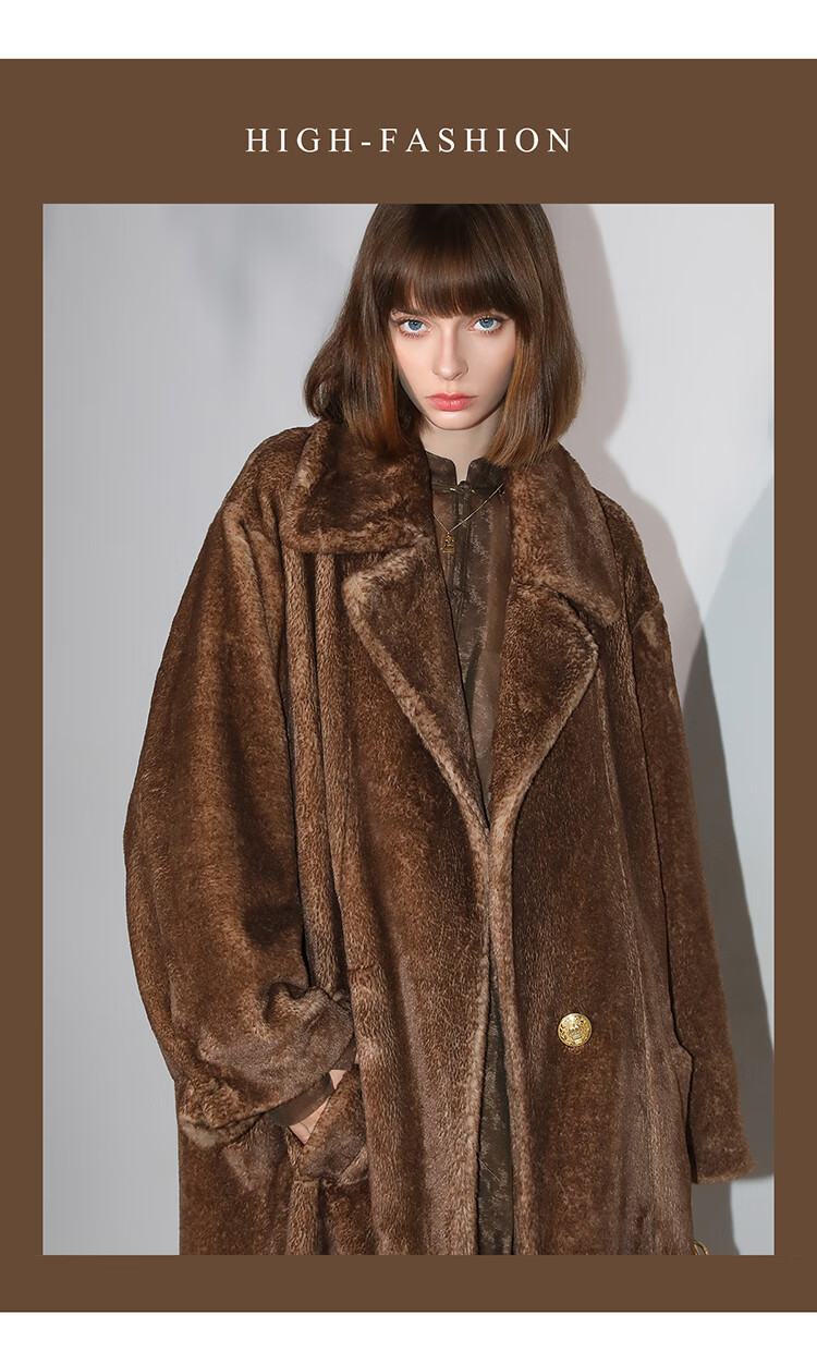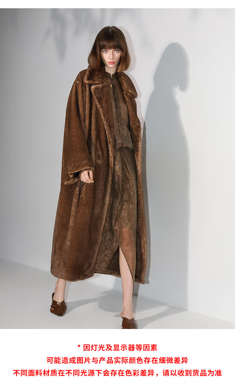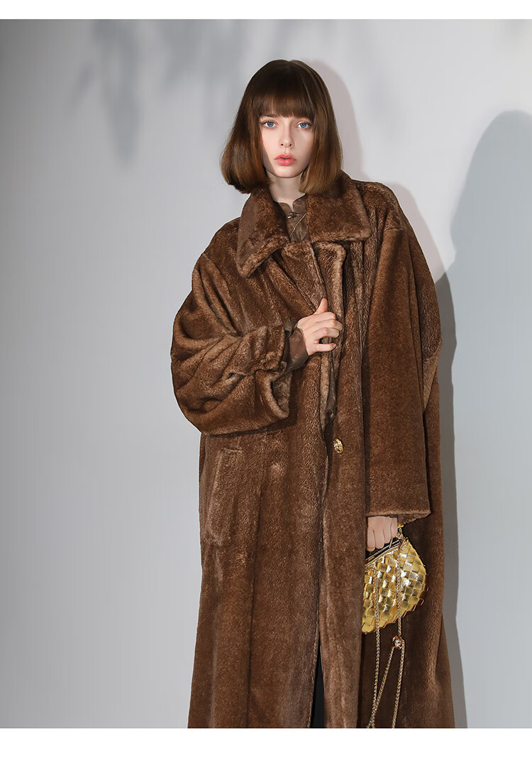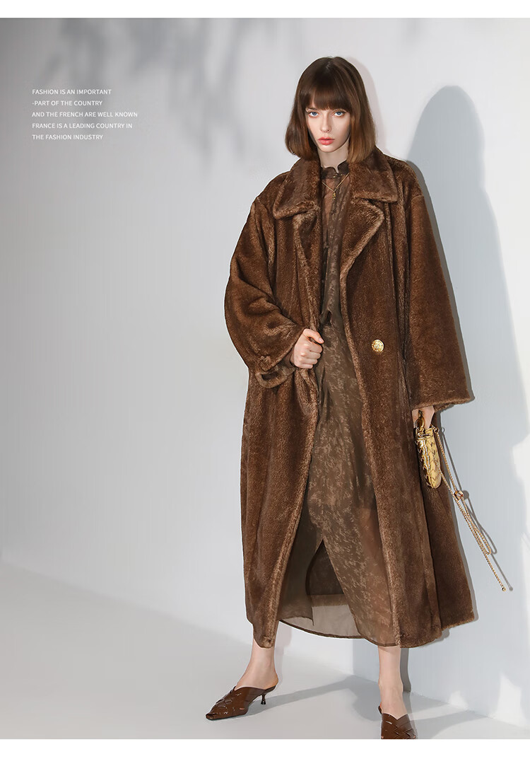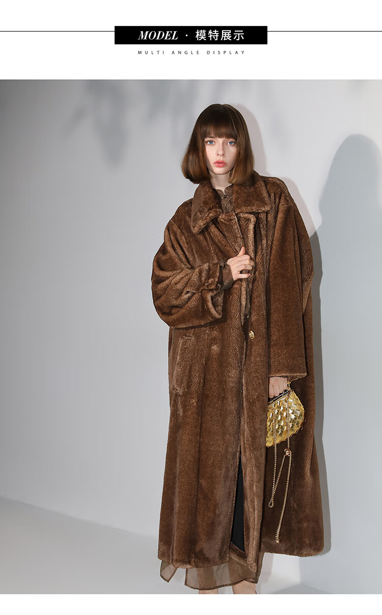 COCOBELLA高奢质感复古环保皮草外套御寒保暖长款大衣FU7003