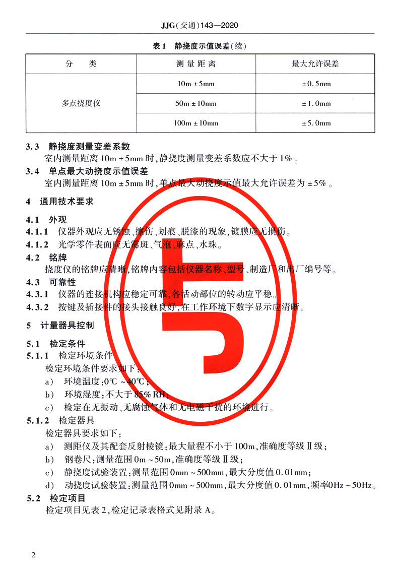 | 桥梁挠度检测仪[JJG(交通)143—2020] | ||
