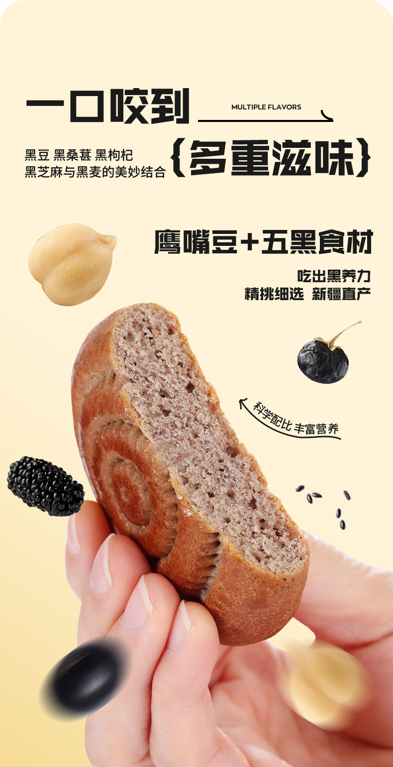 【五黑鹰嘴豆牛乳馕】黑麦香和鹰嘴豆香很浓郁,九分香一分甜。个头不大,放包里揣兜里都很方便!
