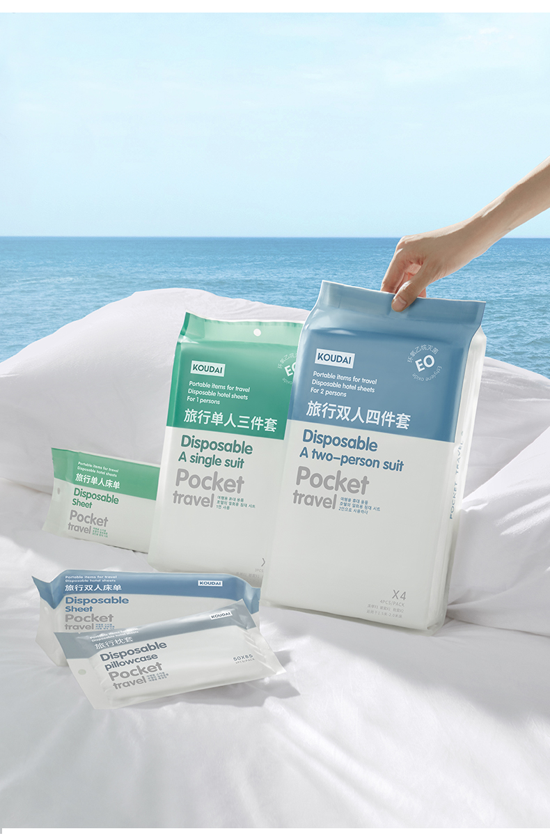 旅游出行必备 【口袋旅行 一次性床品】加厚SMS无纺布 耐撕拉不易破 舒适透气 绑带式设计【口袋旅行 一次性产品套装】