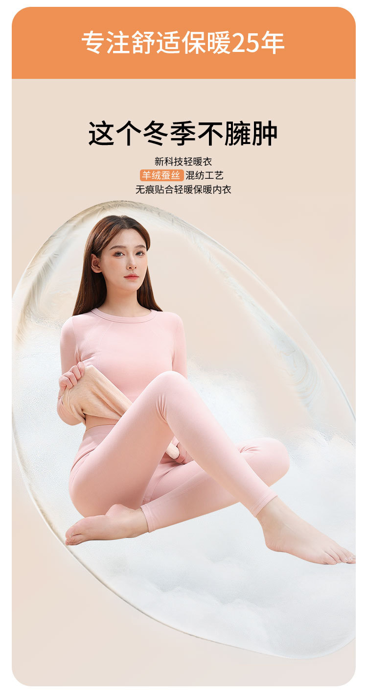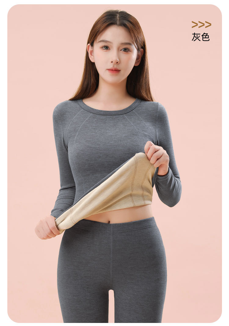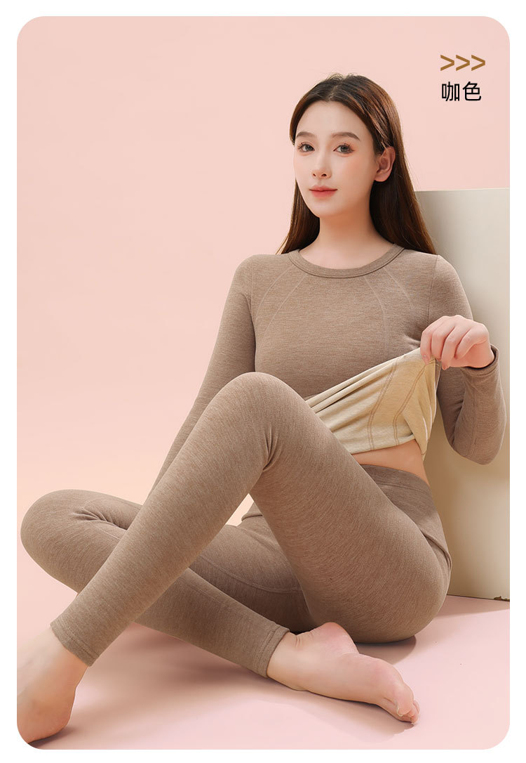 羊绒蚕丝保暖套装女士加绒加厚无痕发热德绒内衣打底秋衣秋裤冬季