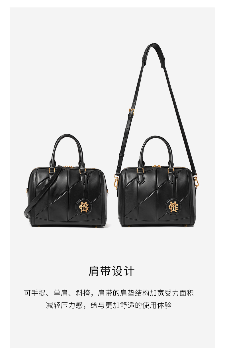 法国梦特娇冬新款秋冬斜挎包手提包真皮女士百搭时尚波士顿包