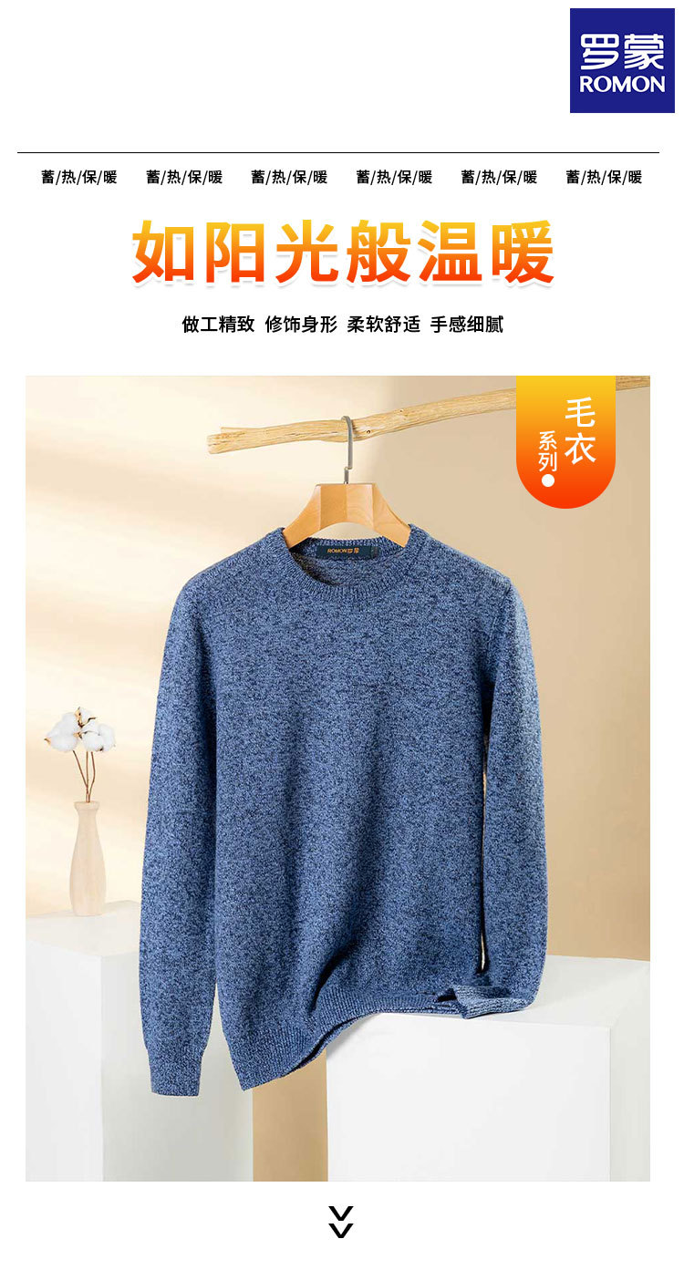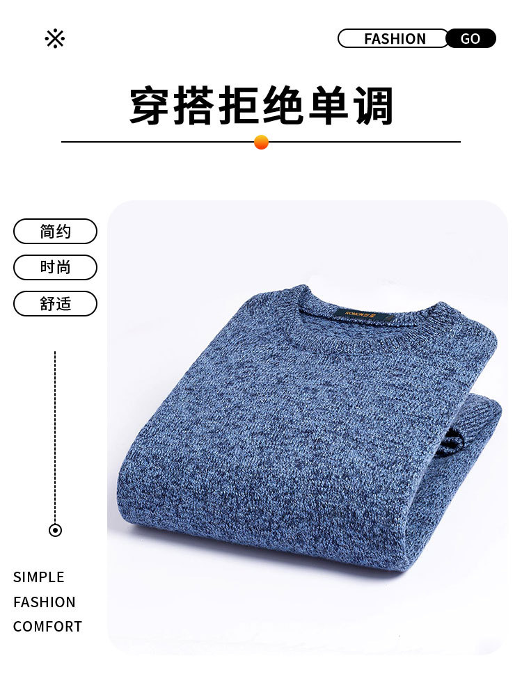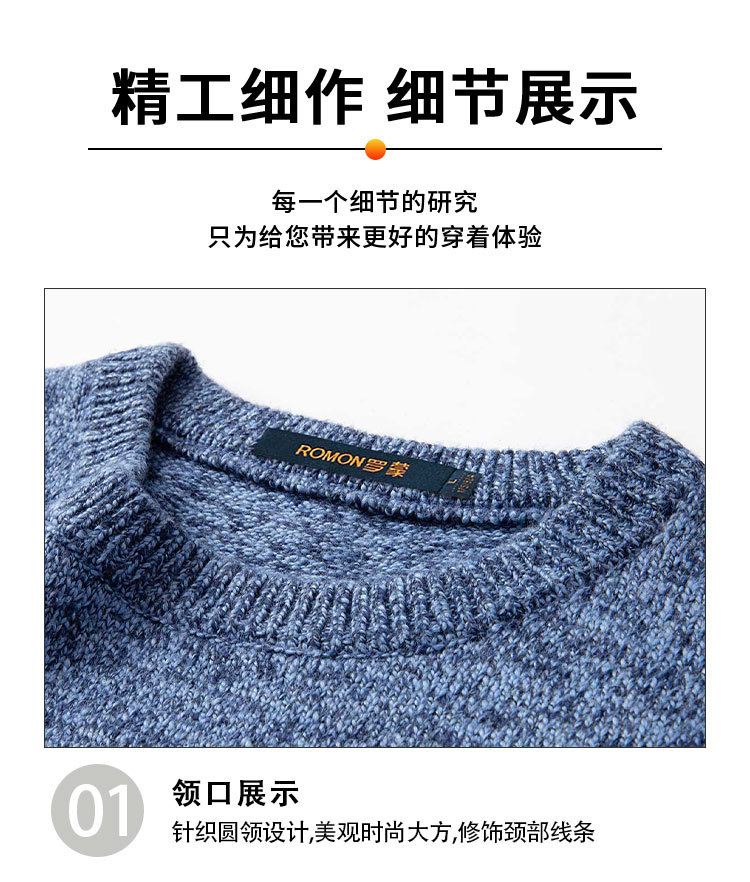 罗蒙秋冬厚款保暖针织衫男士毛衣套头圆领针织衫基础百搭打底毛衣男