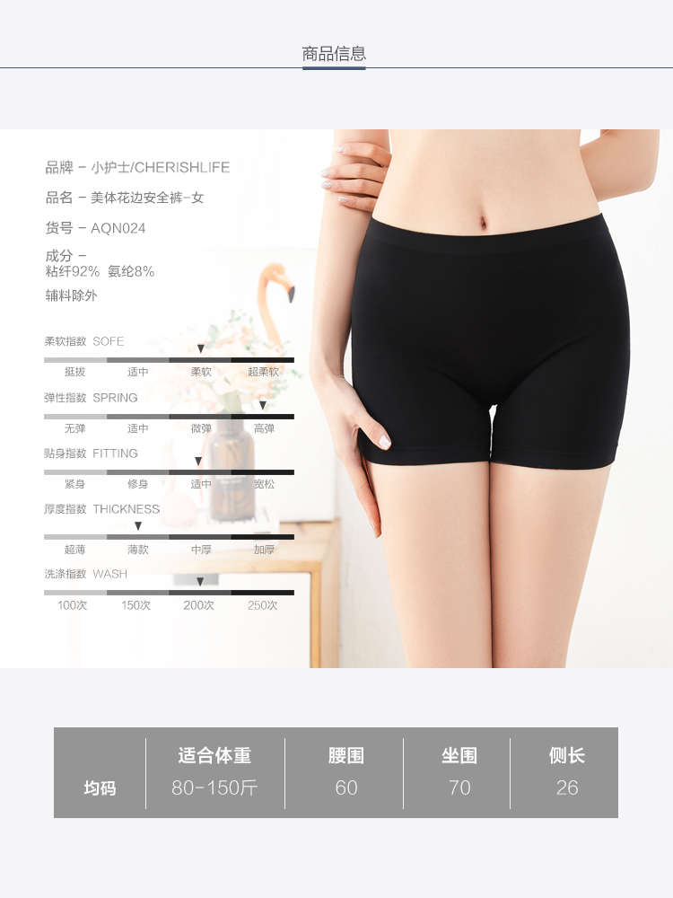 小护士 安全裤女防走光美体透气中腰不卷边短裤打底裤 AQN024