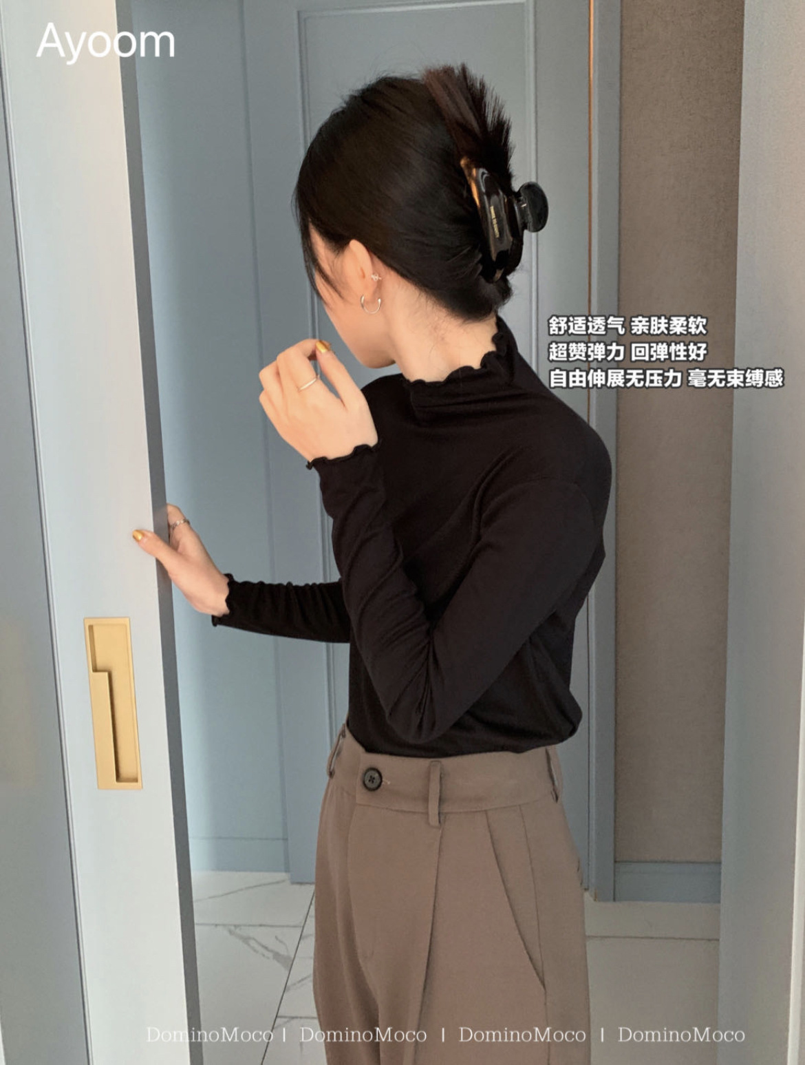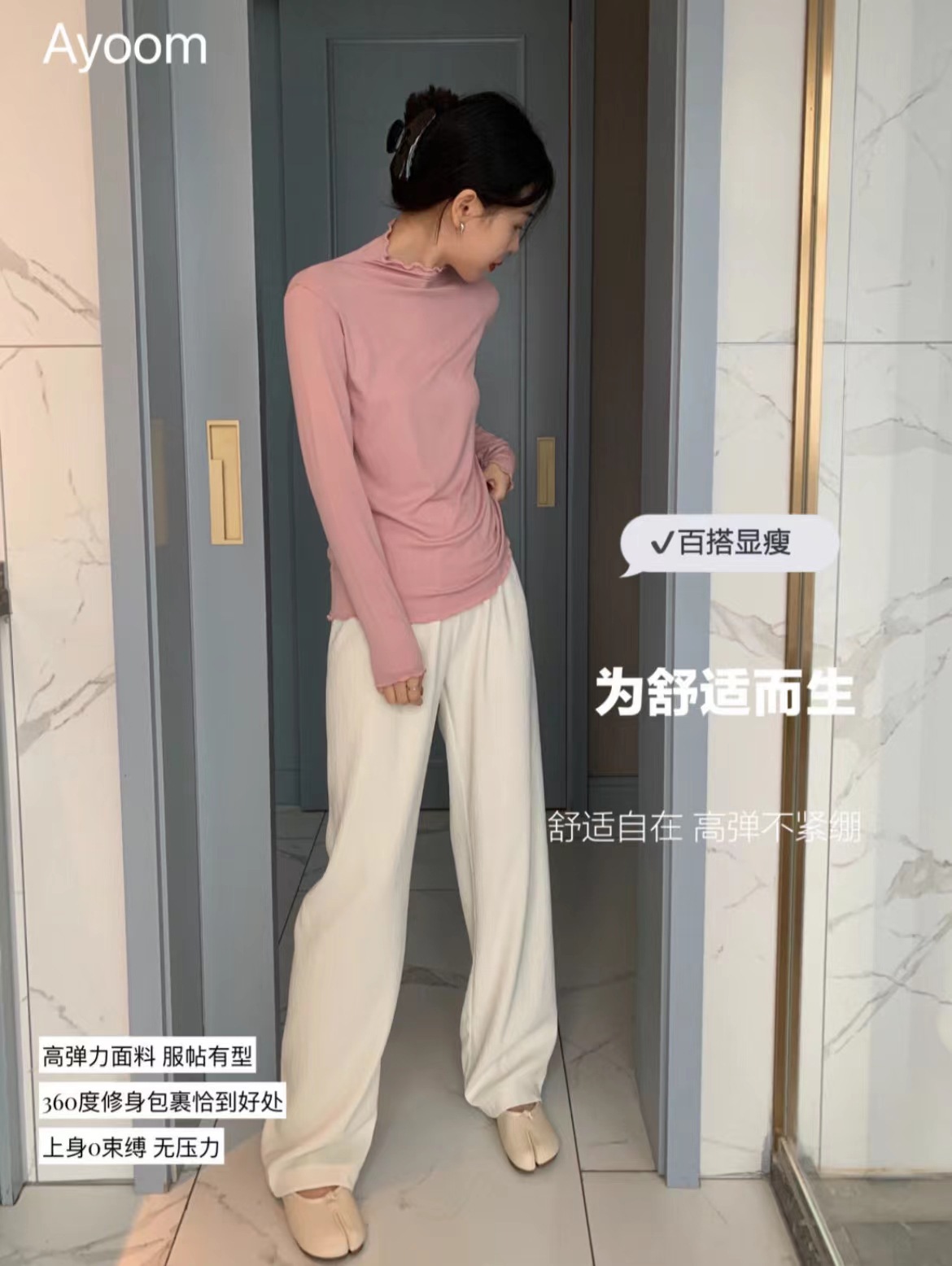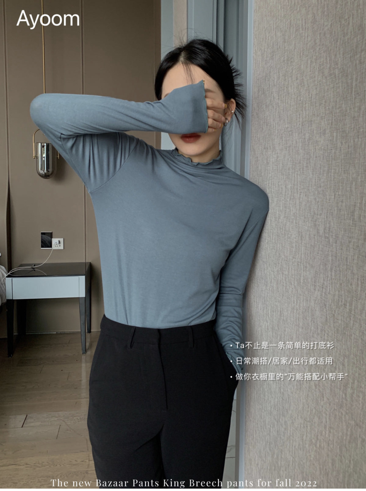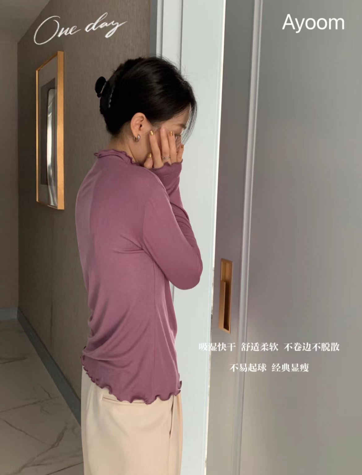 2024新款莫代尔打底衫女春秋新款长袖t恤设计感木耳边半高领白色