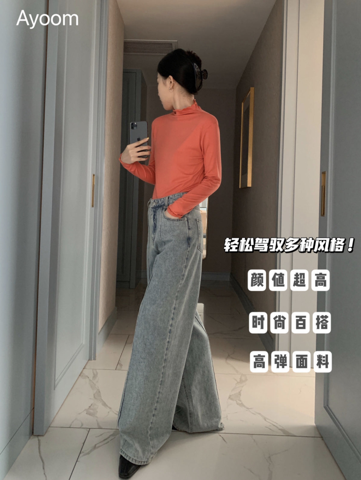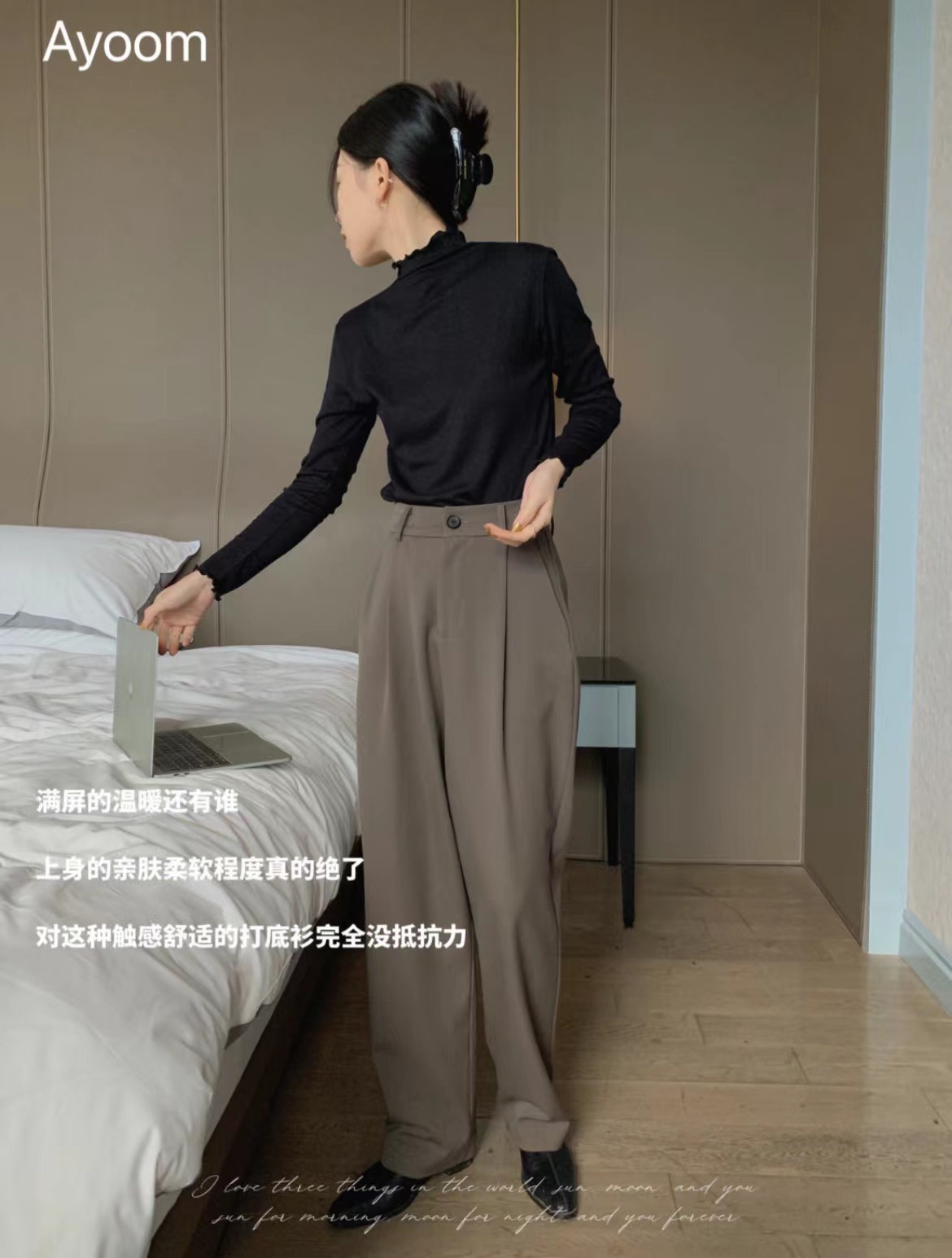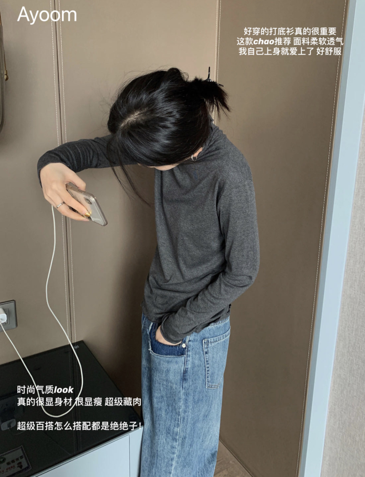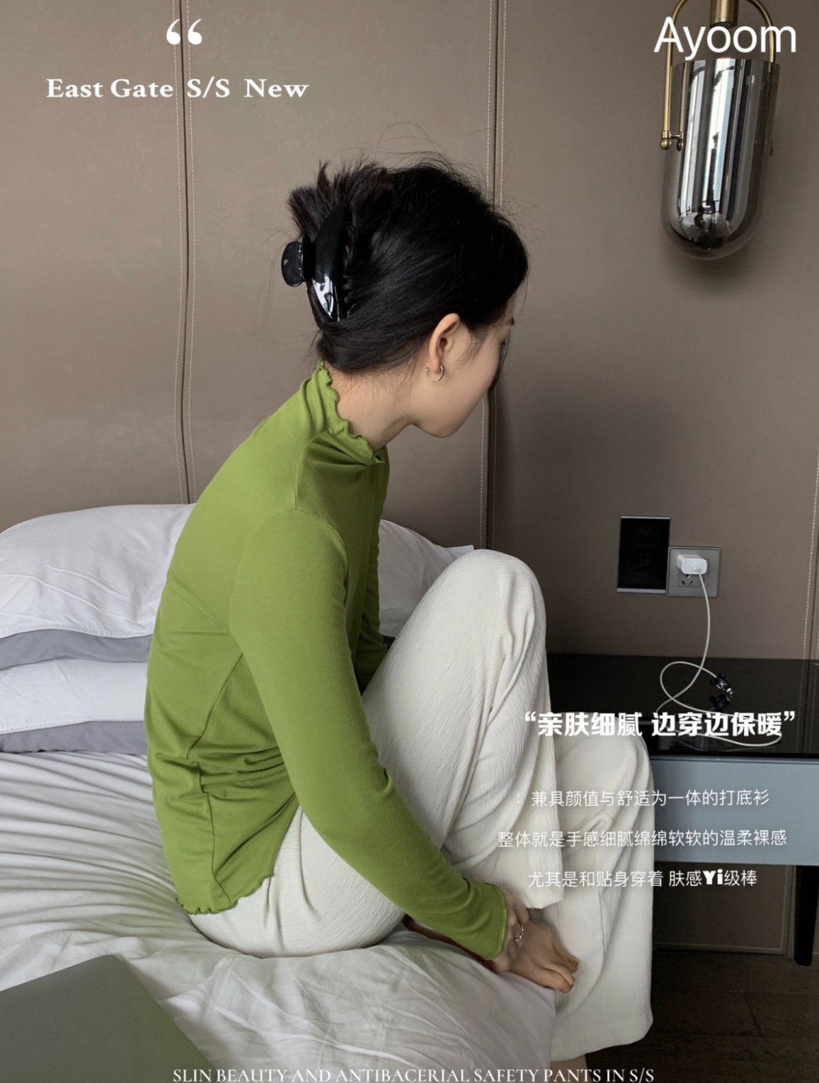 2024新款莫代尔打底衫女春秋新款长袖t恤设计感木耳边半高领白色