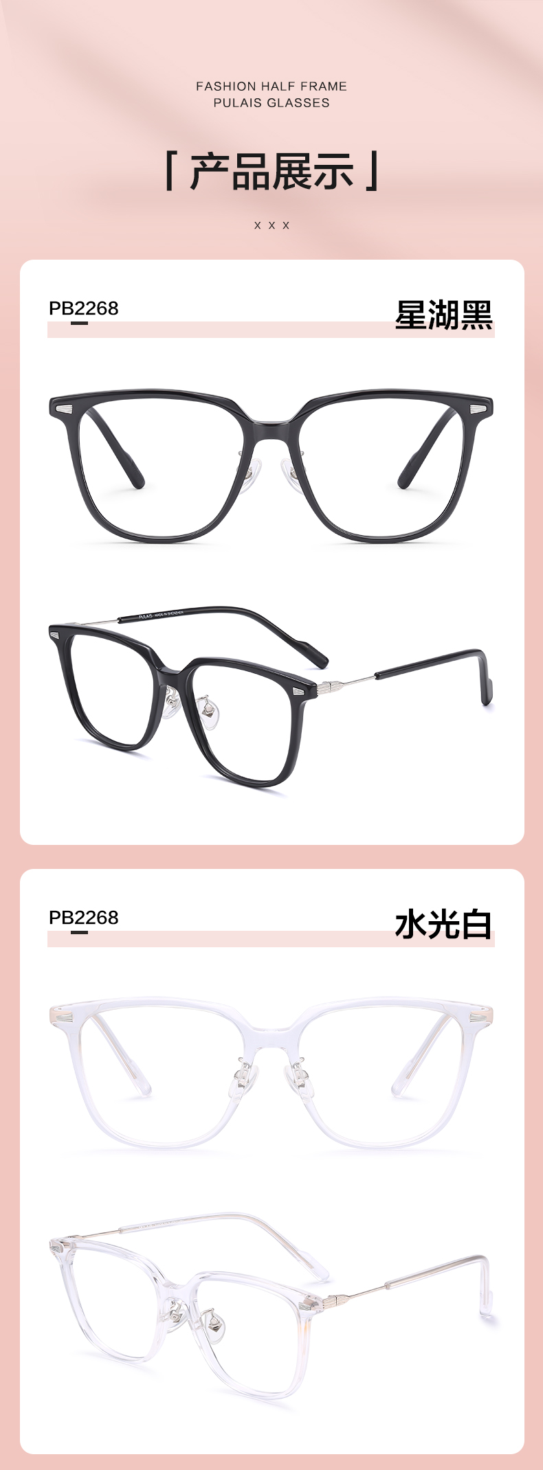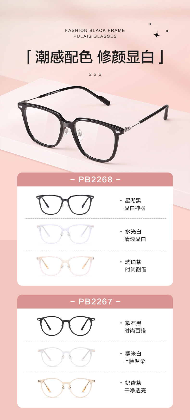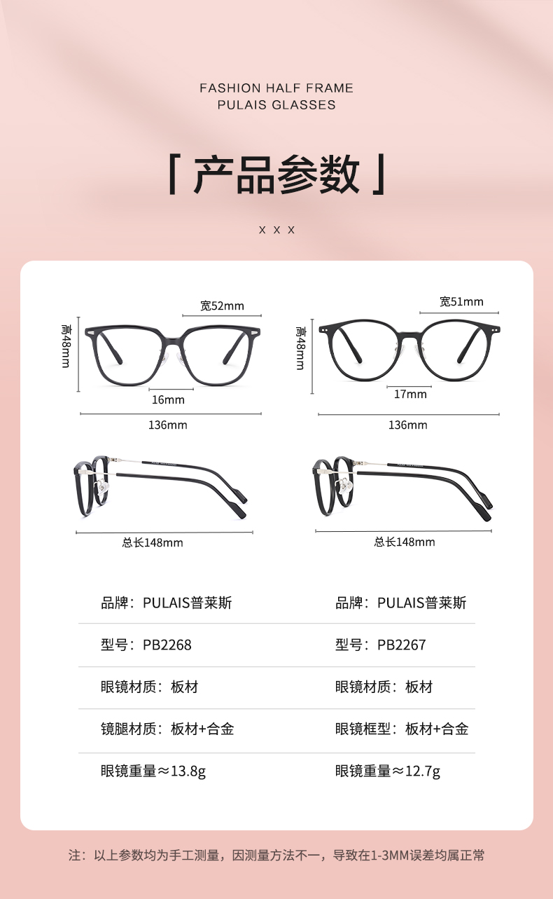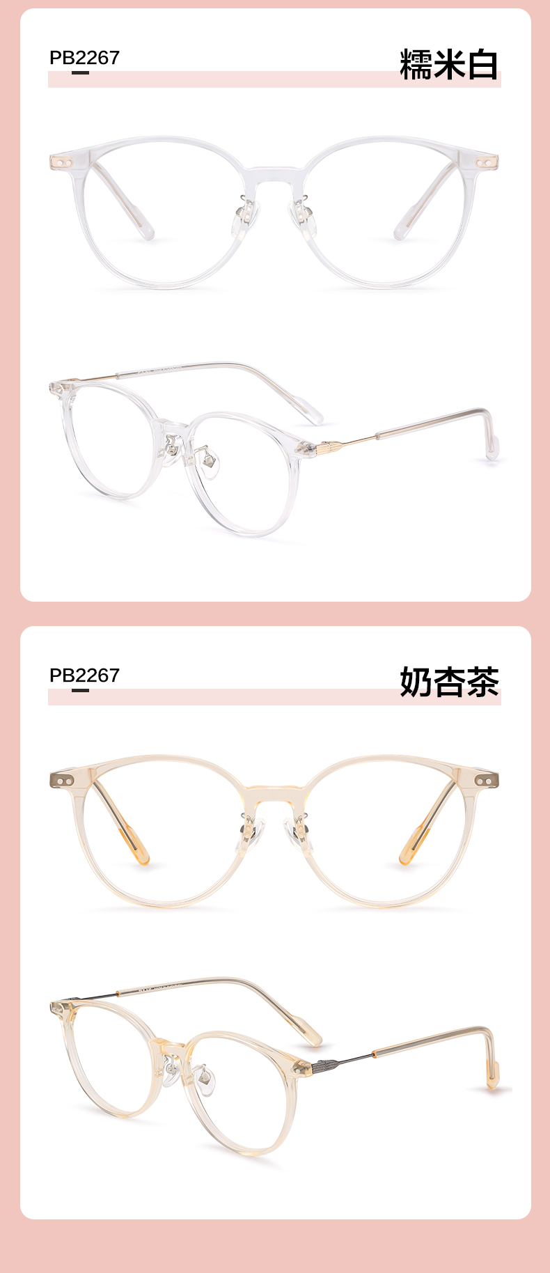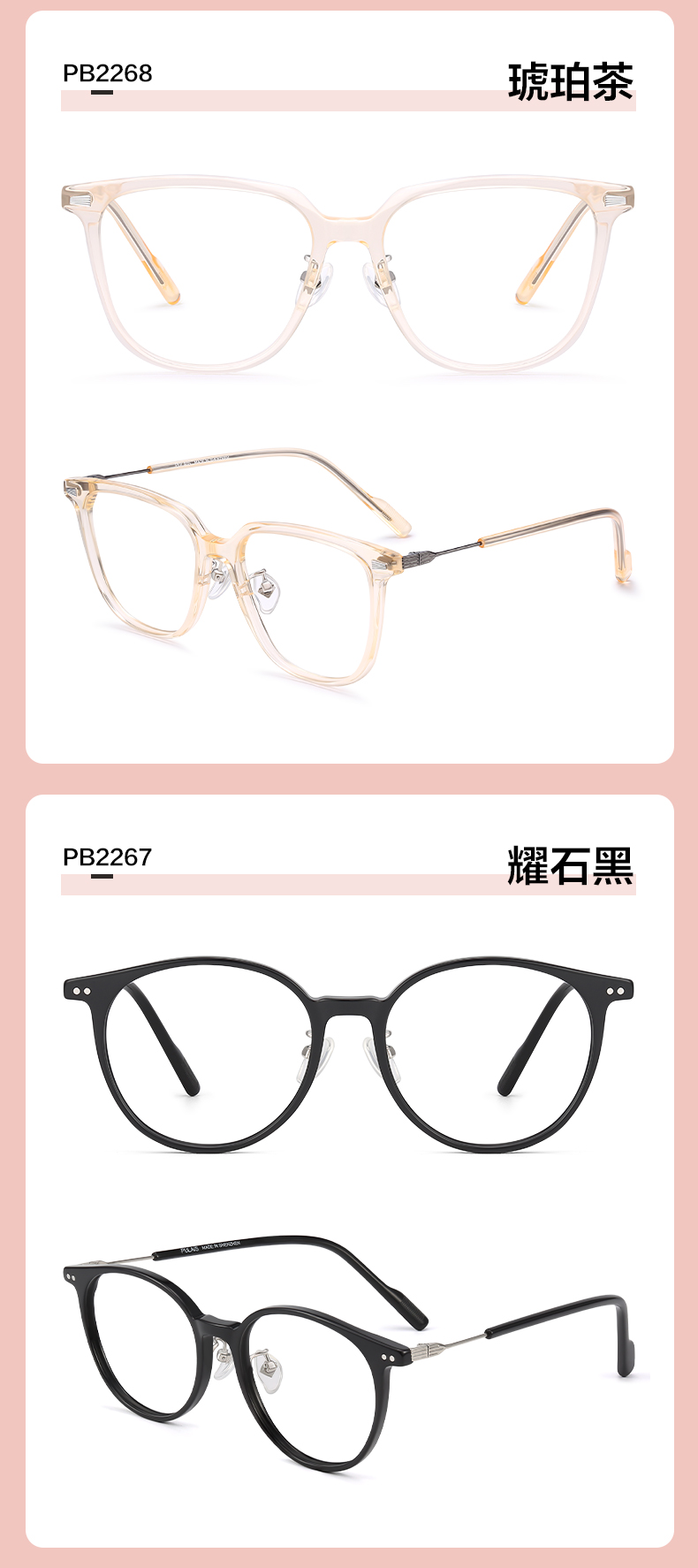 普莱斯光学镜架 PB2267&PB2268 韩系素颜框 不易撞框 时尚感十足 板材+合金 六色可选