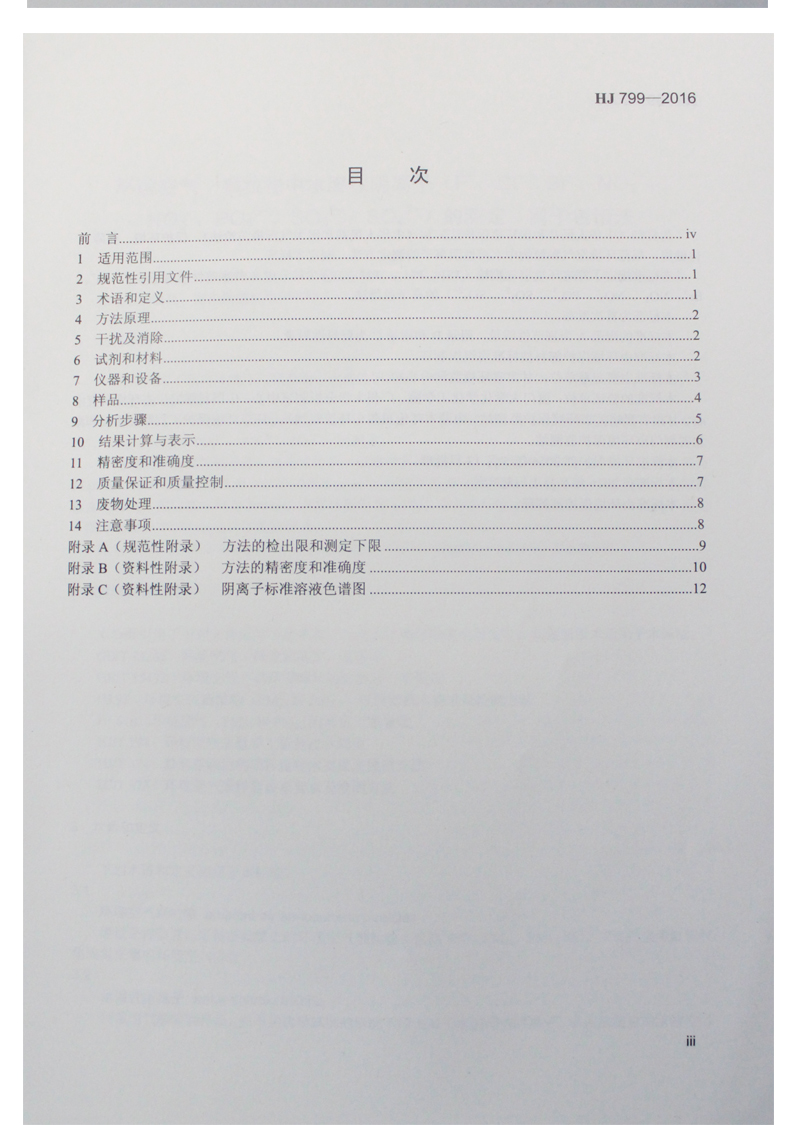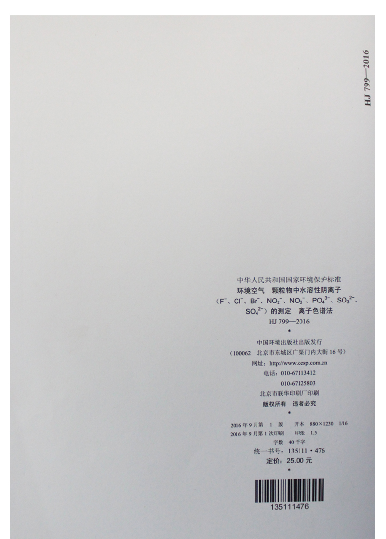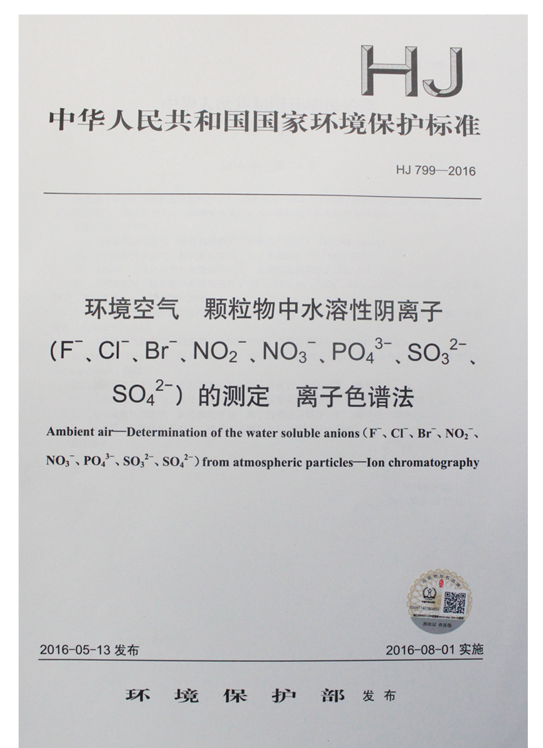 HJ 799-2016 环境空气 颗粒物中水溶性阴离子(F-、Cl-、Br-、NO2-、NO3-、PO43-、SO32-、SO42-)的测定离子色谱法135111476