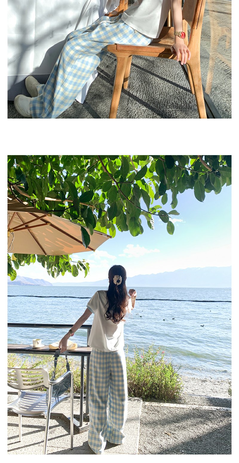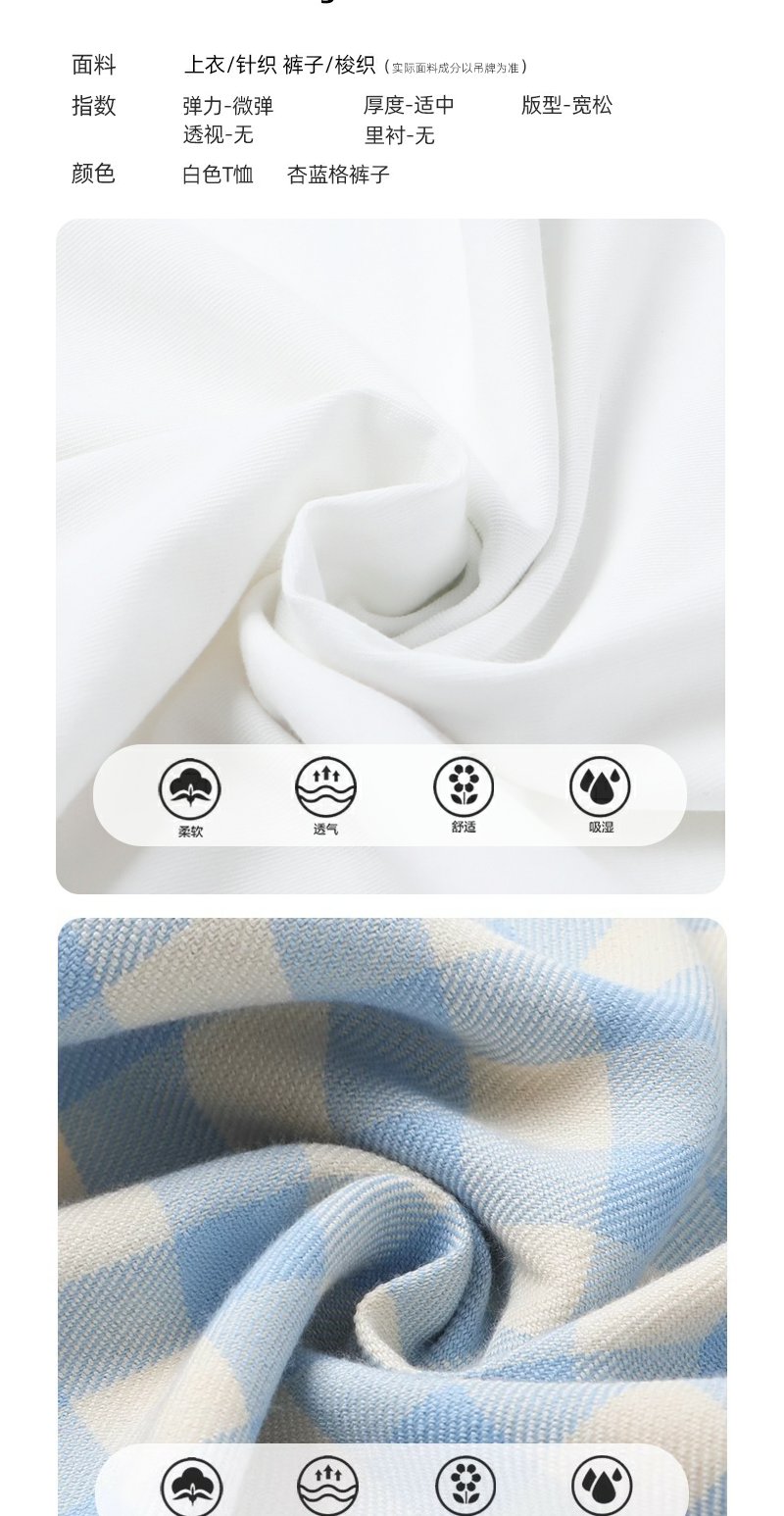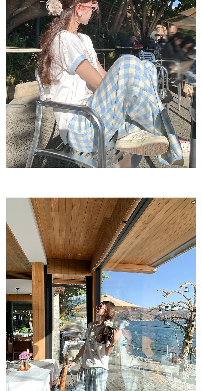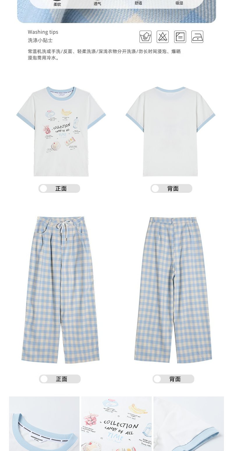 <曾小咸推荐>小清新白色印花短袖撞蓝色边宽松T恤
