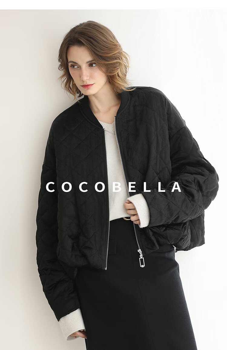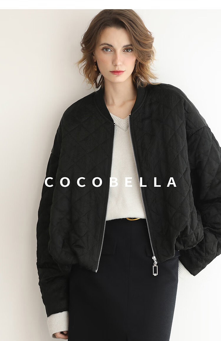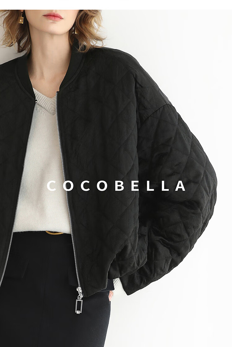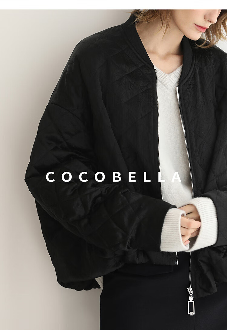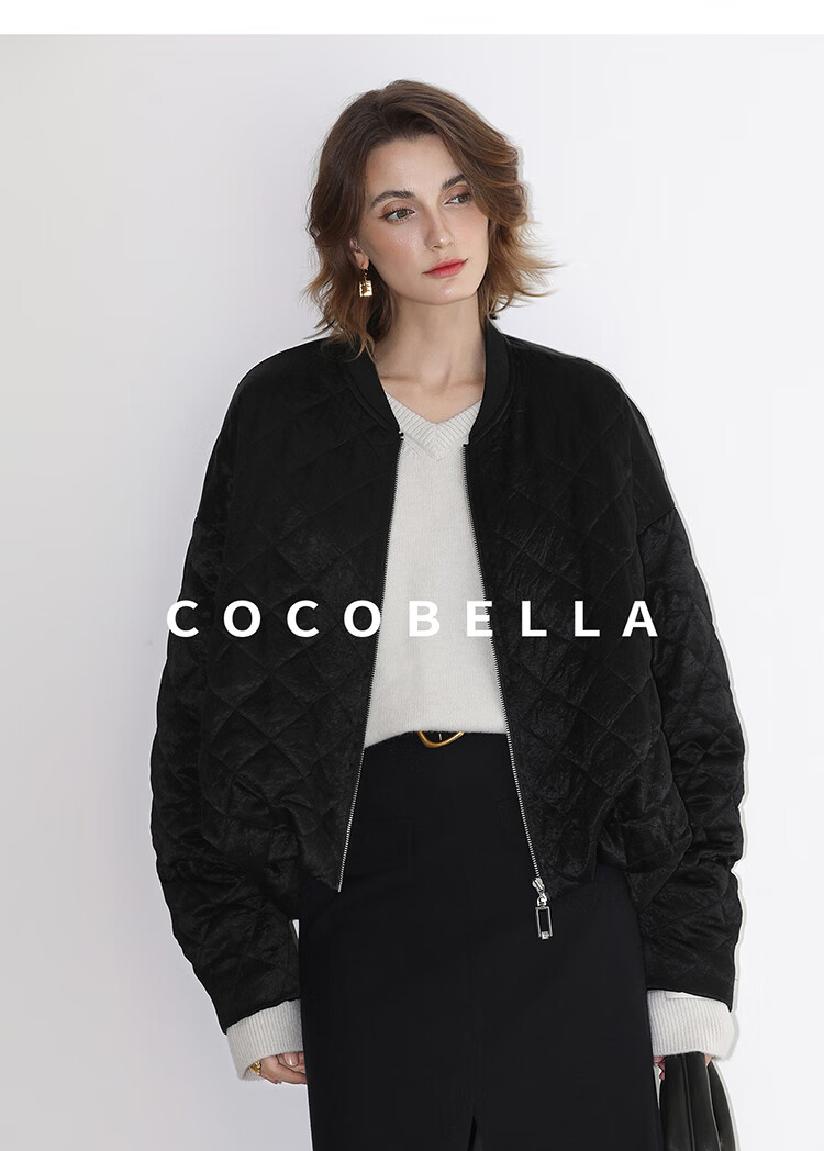 【瑕疵】COCOBELLA100%醋酸短款棉服女绗棉棒球服秋冬夹克外套MF3042