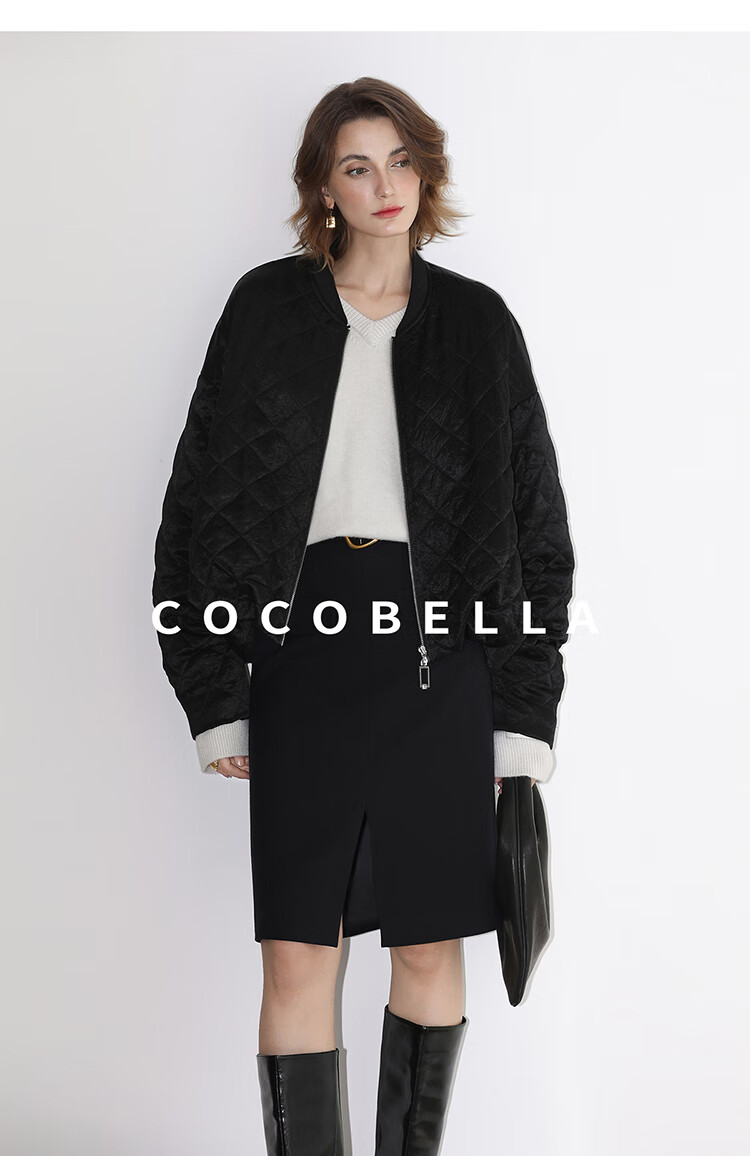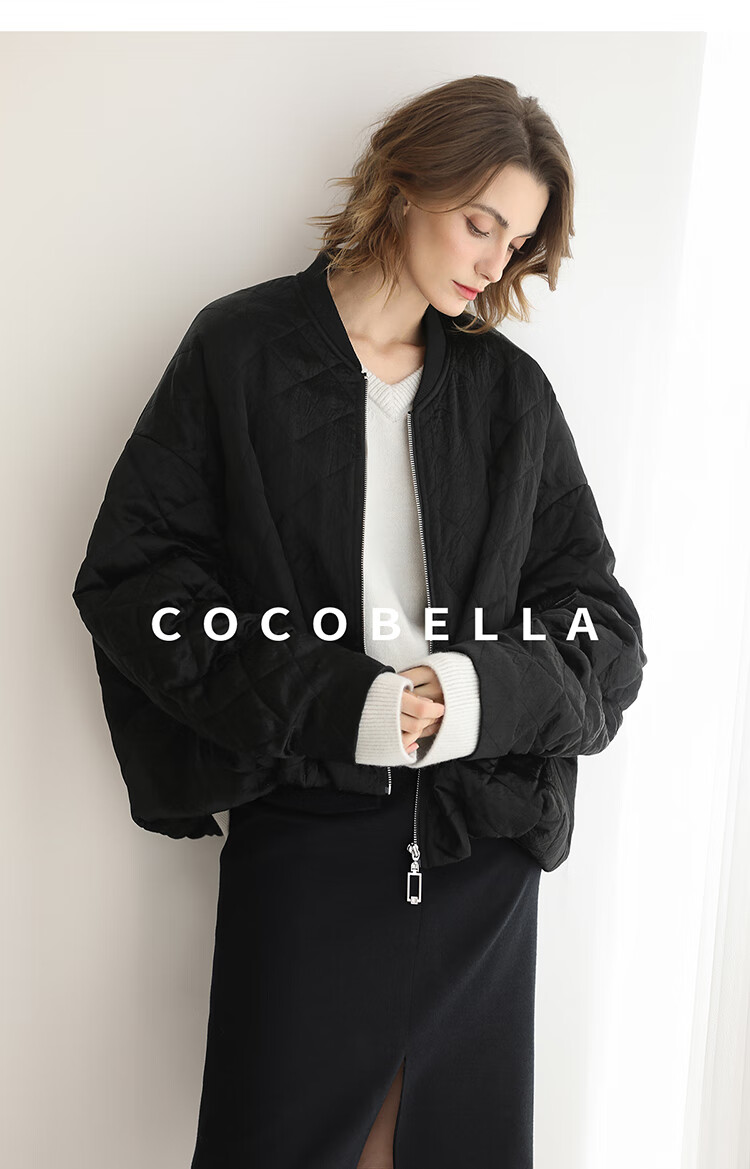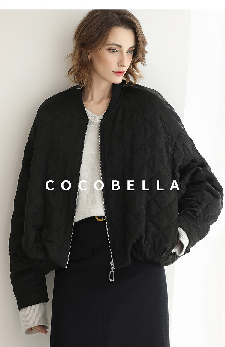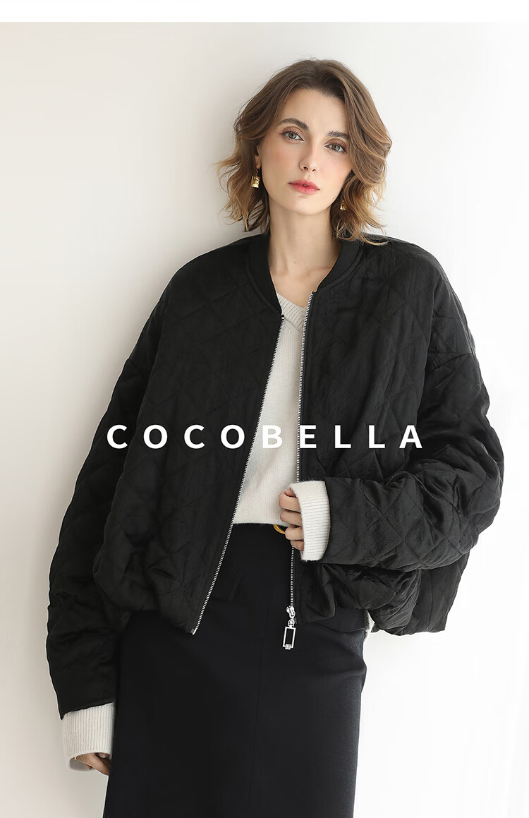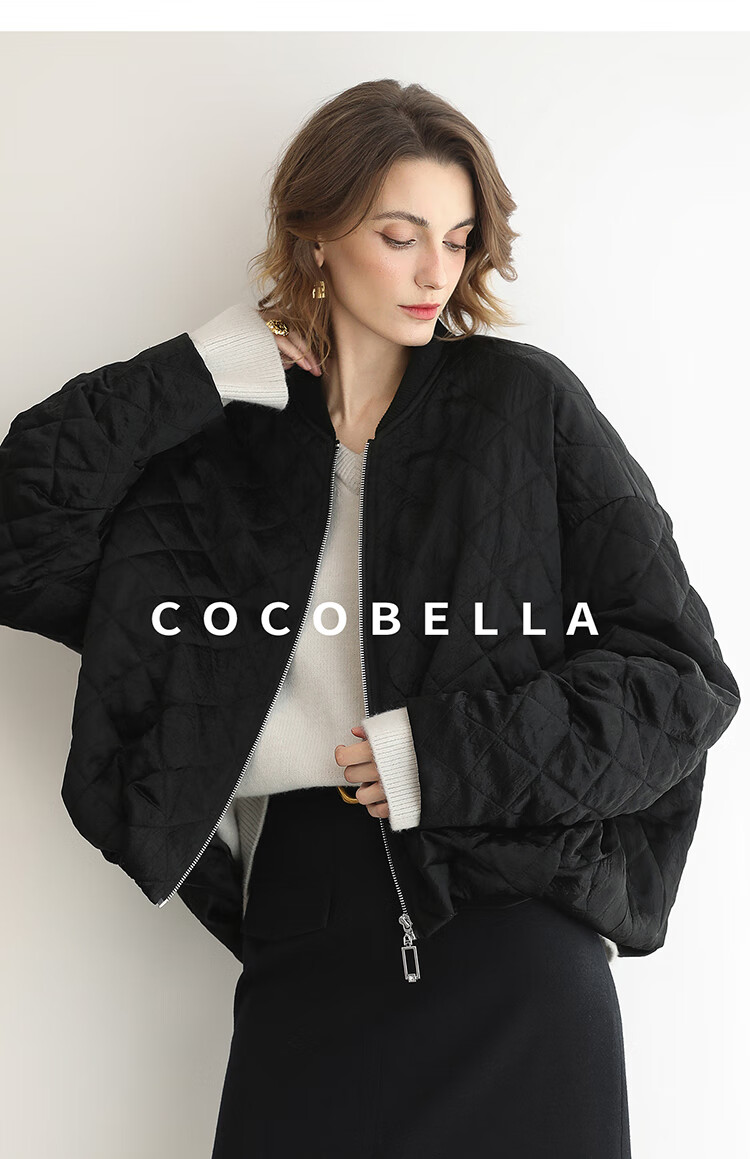 【瑕疵】COCOBELLA100%醋酸短款棉服女绗棉棒球服秋冬夹克外套MF3042