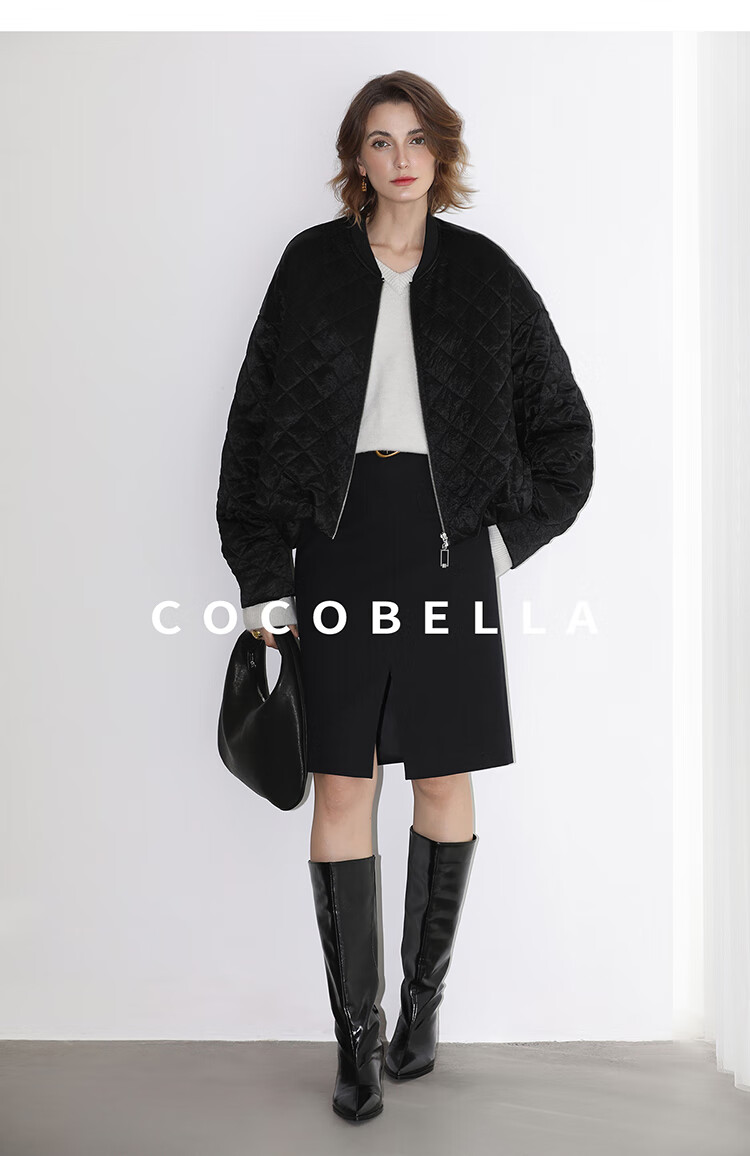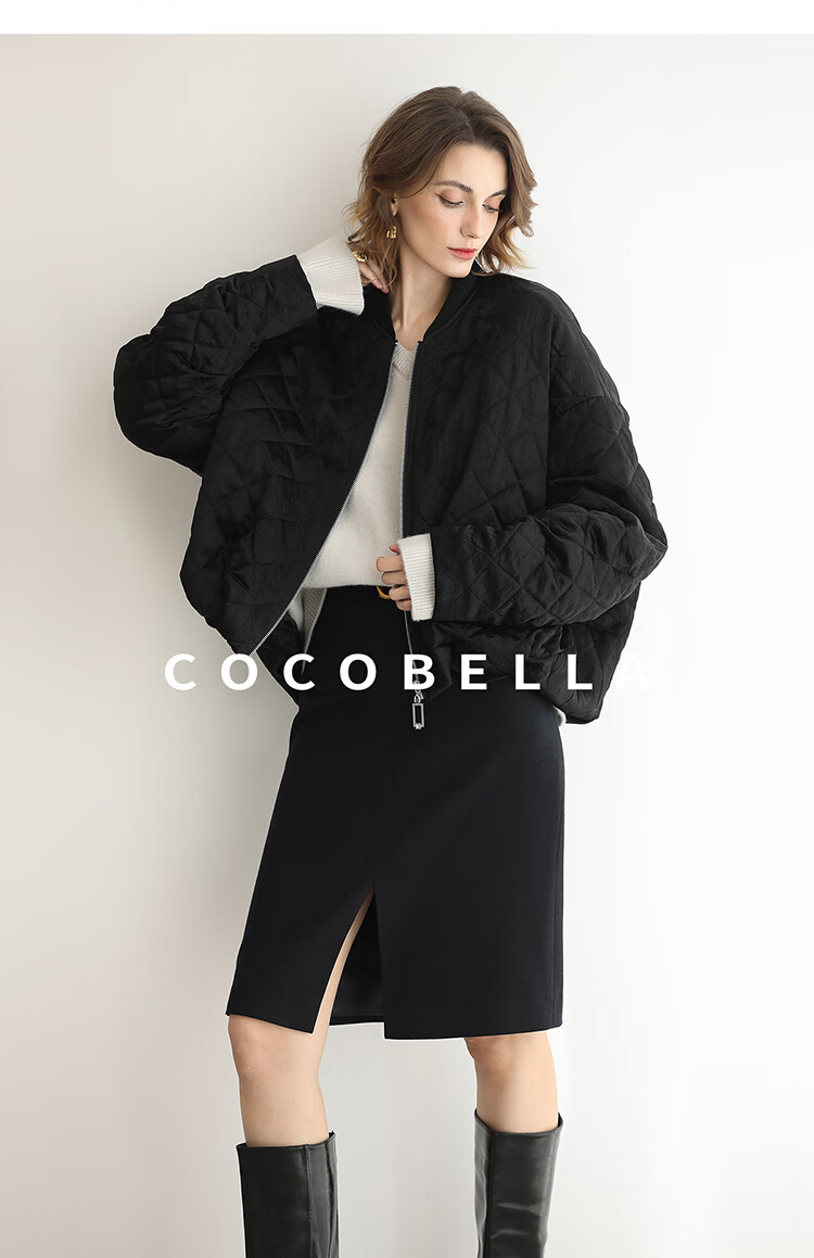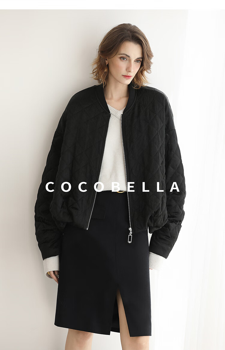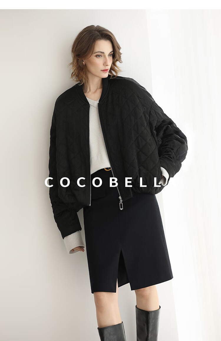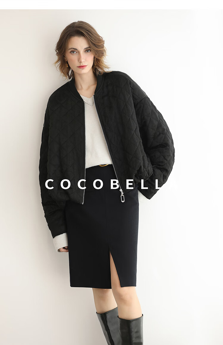 【瑕疵】COCOBELLA100%醋酸短款棉服女绗棉棒球服秋冬夹克外套MF3042
