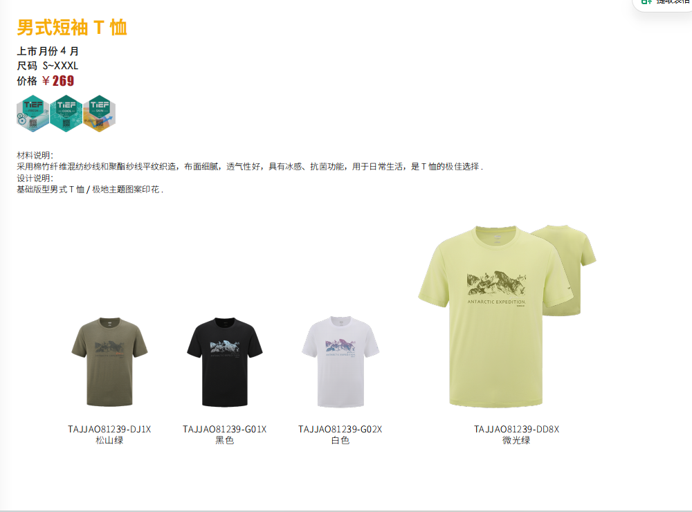 探路者男式棉T恤TAJJAO81239