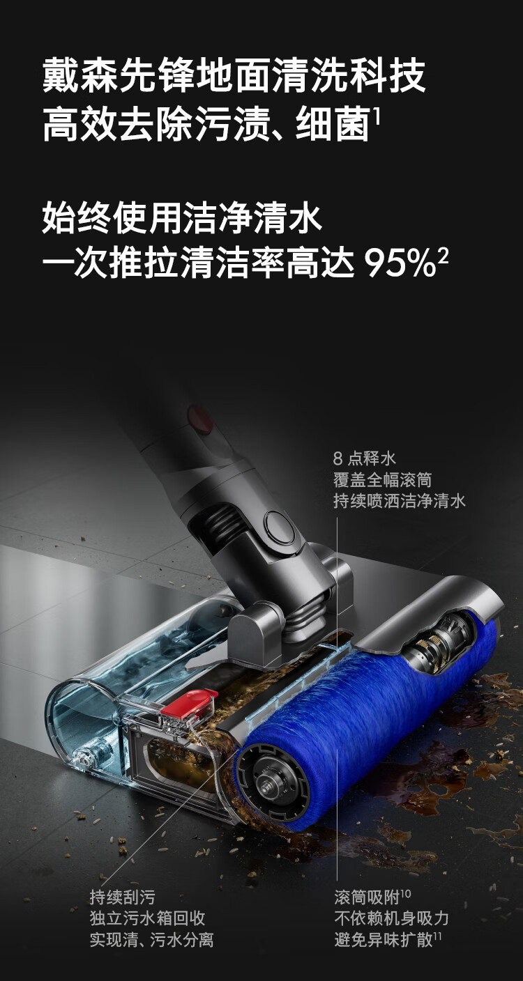 戴森V12n Detect Slim Nautik 轻量吸拖一体洗地机 除螨干湿两用