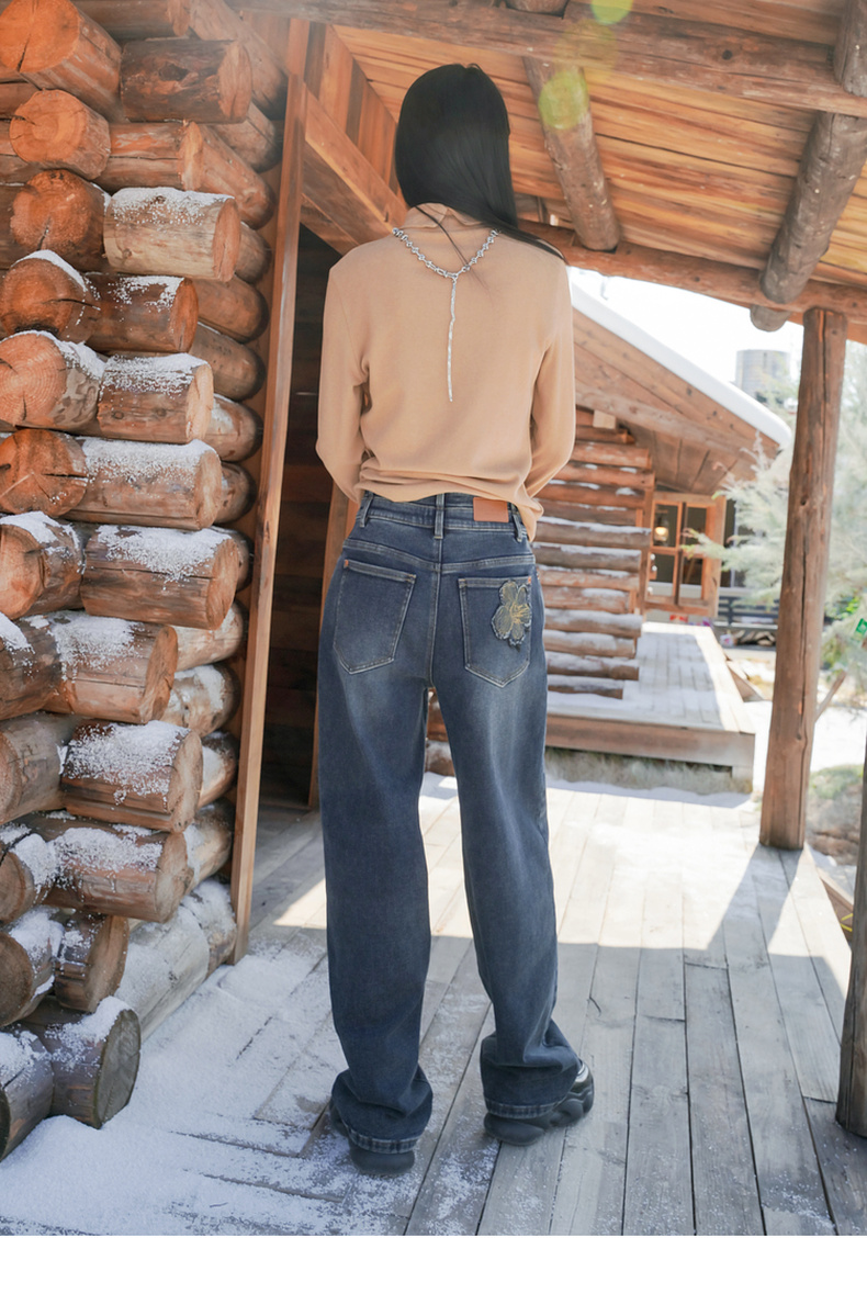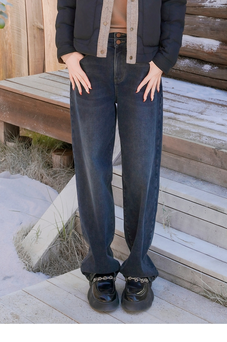谜底直筒牛仔裤长裤2025年冬季新品高腰宽松百搭复古女254MJ1605