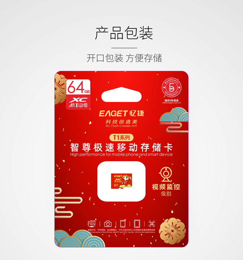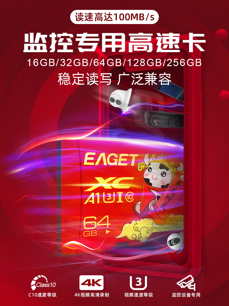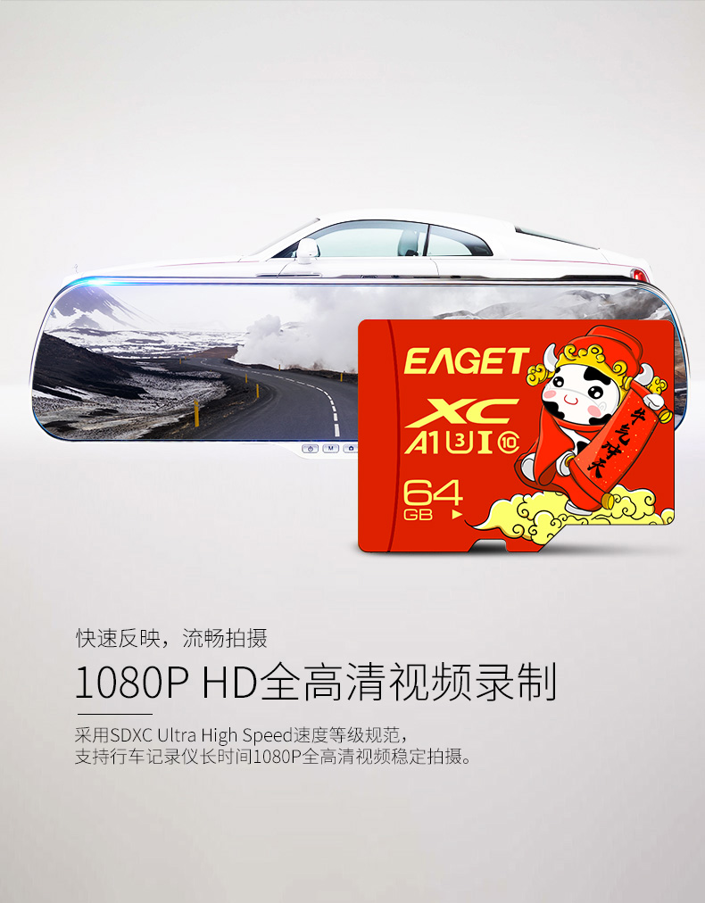 忆捷手机存储卡监控摄像内存卡TF卡高速行车记录仪sd卡c10高速卡 64GB