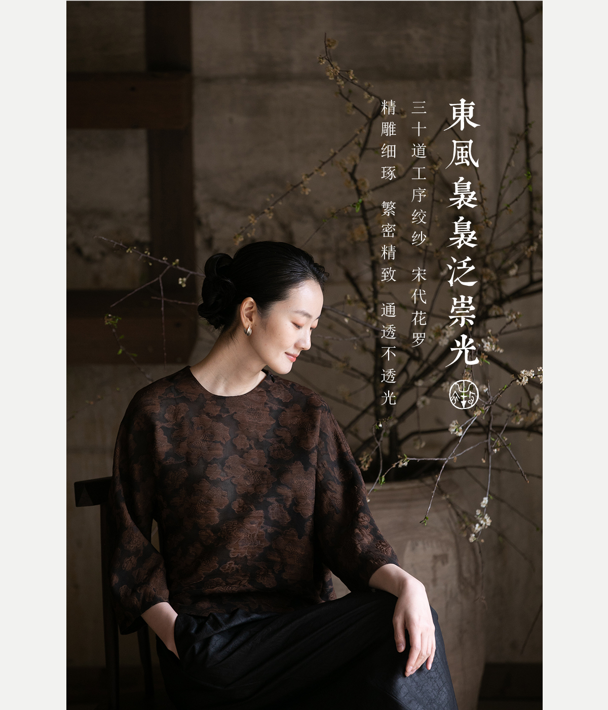 牧衣游原创 铁木机织半手工罗莨绸套头衫高级感复古真丝上衣 雪云