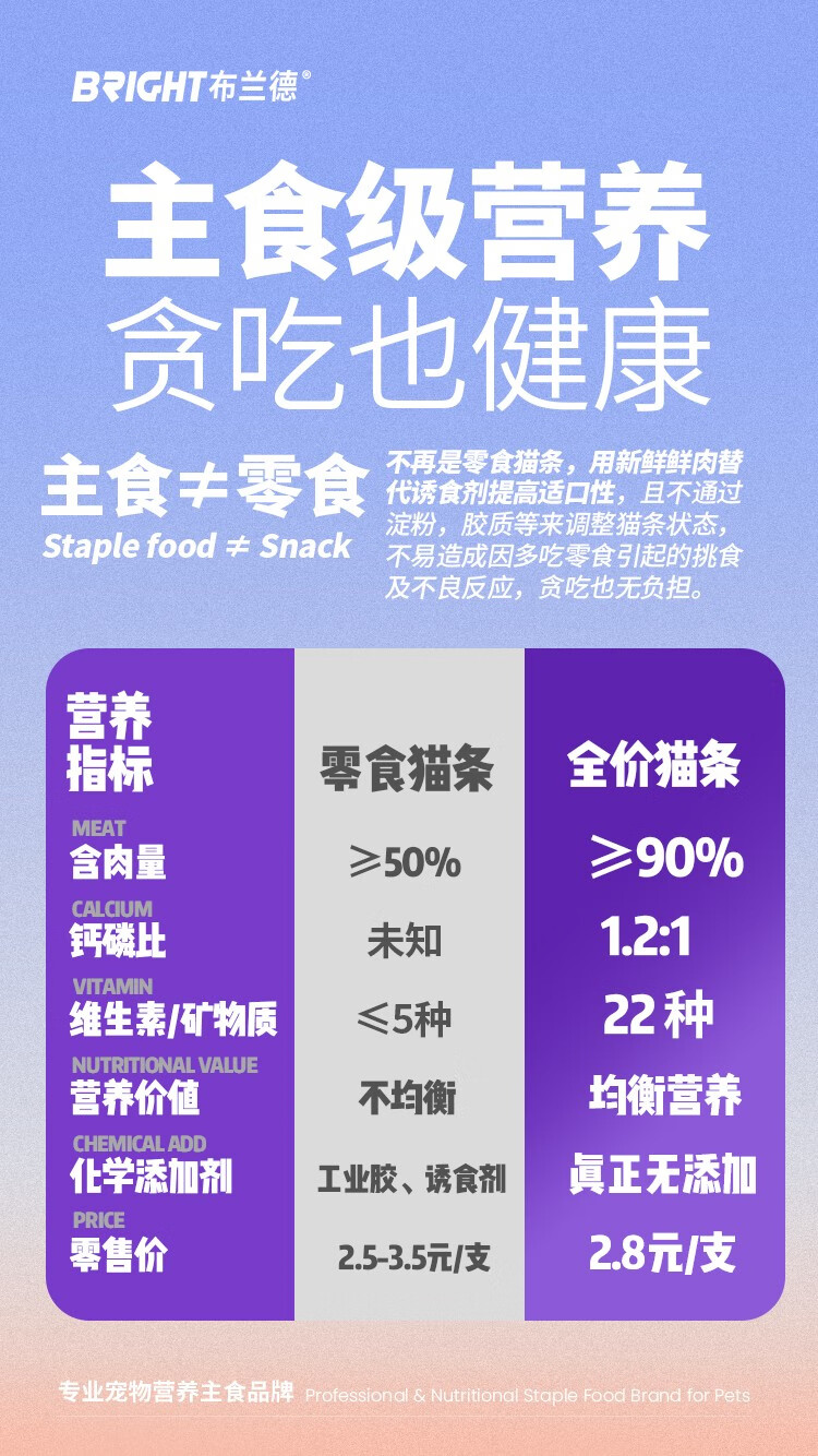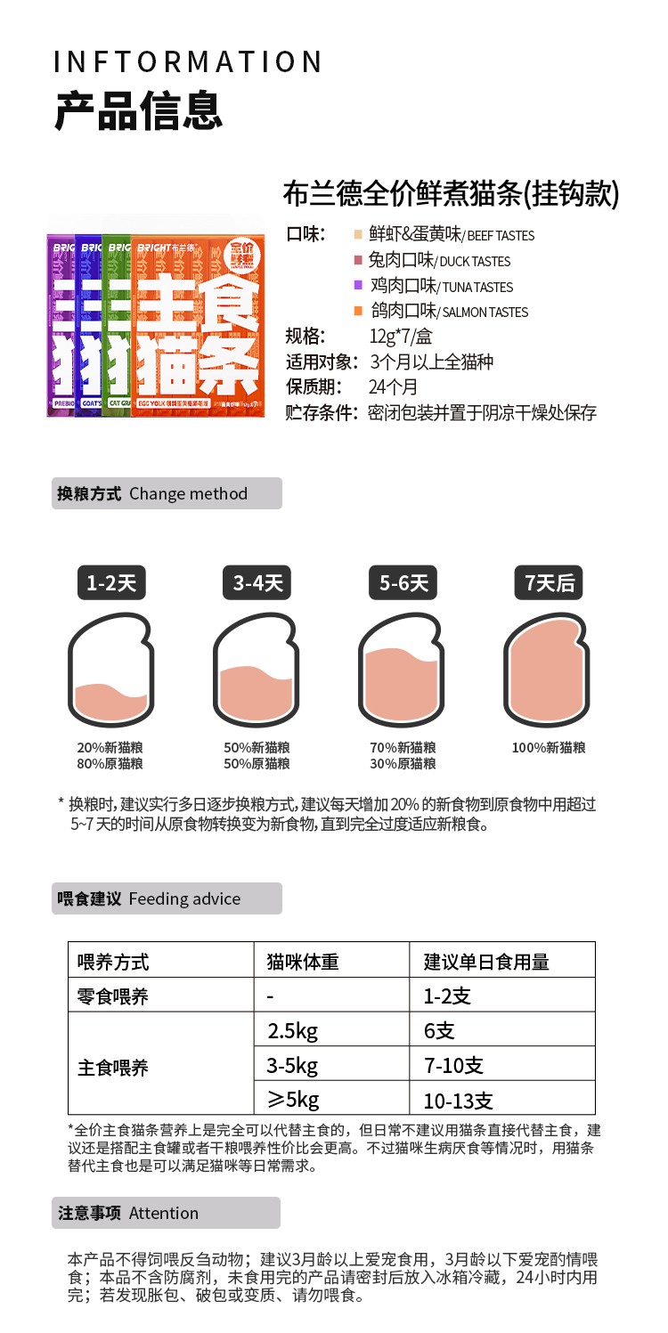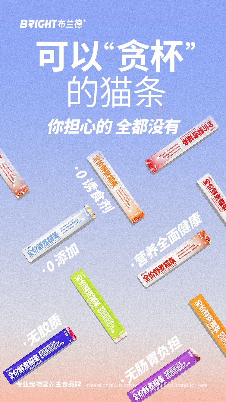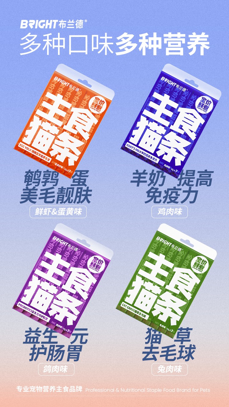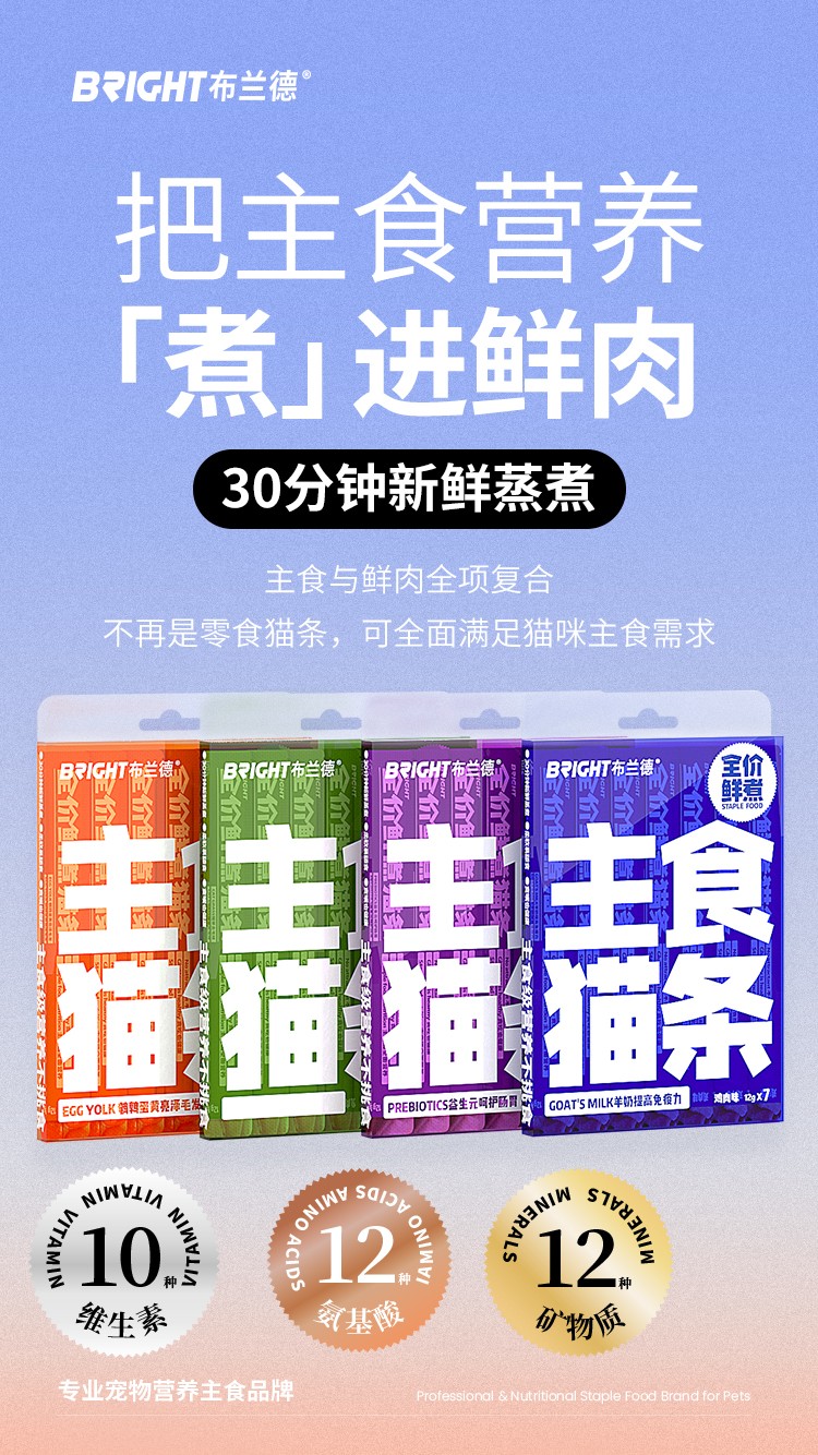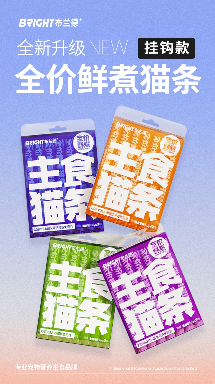 【高端全肉】布兰德猫条全价鲜煮功能主食猫咪肉泥湿粮包12g*7支