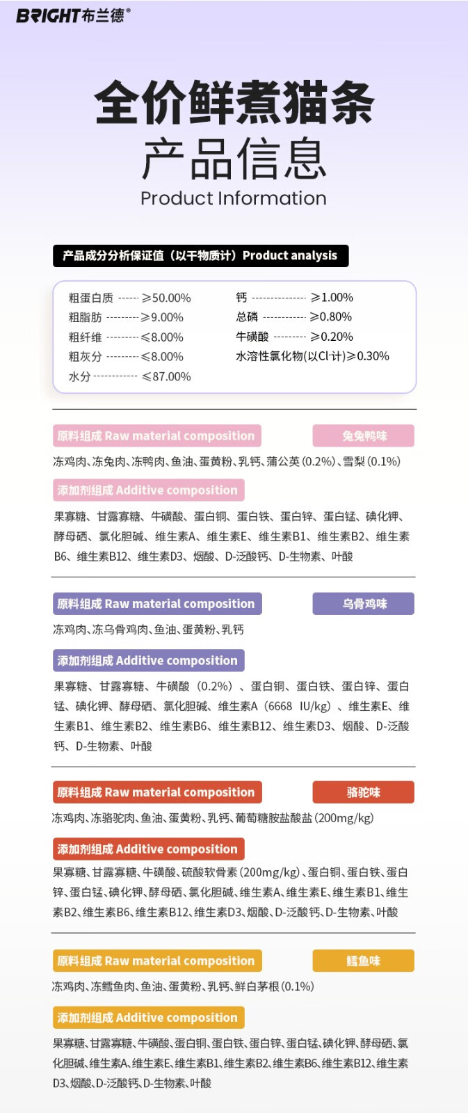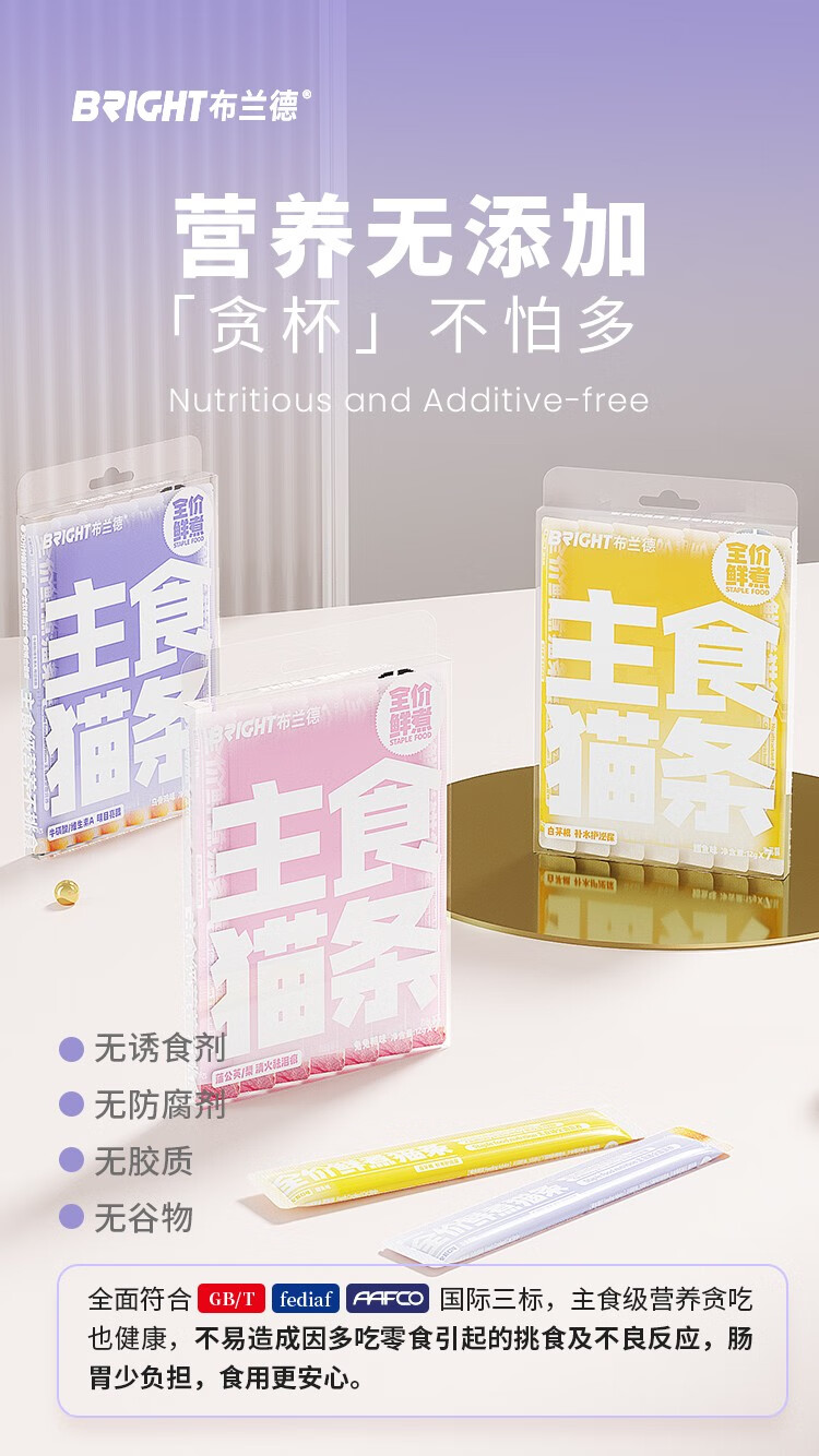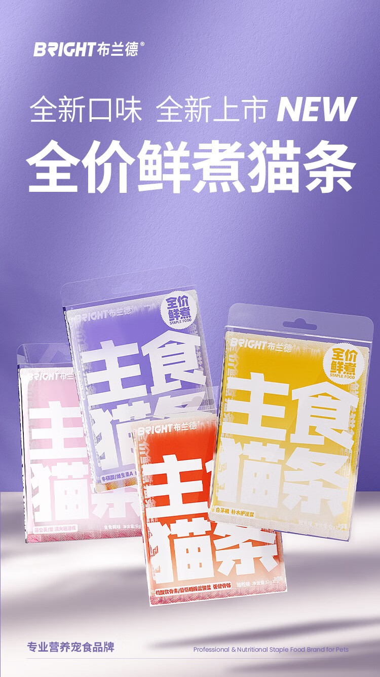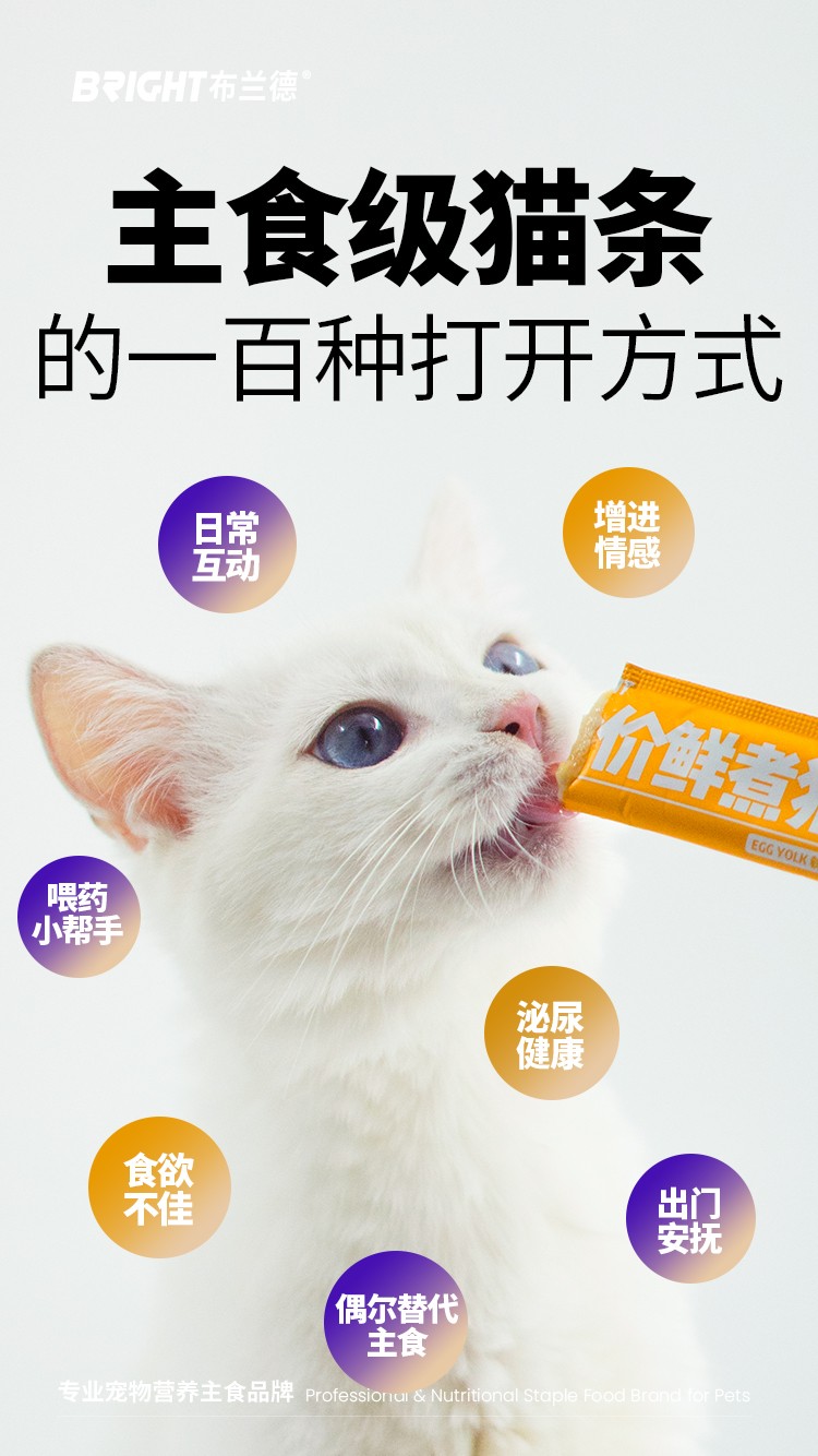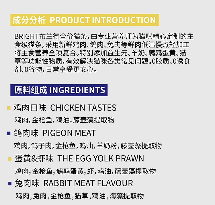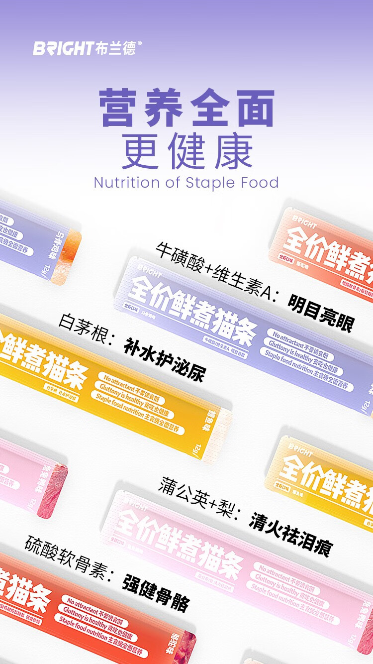 【高端全肉】布兰德猫条全价鲜煮功能主食猫咪肉泥湿粮包12g*7支