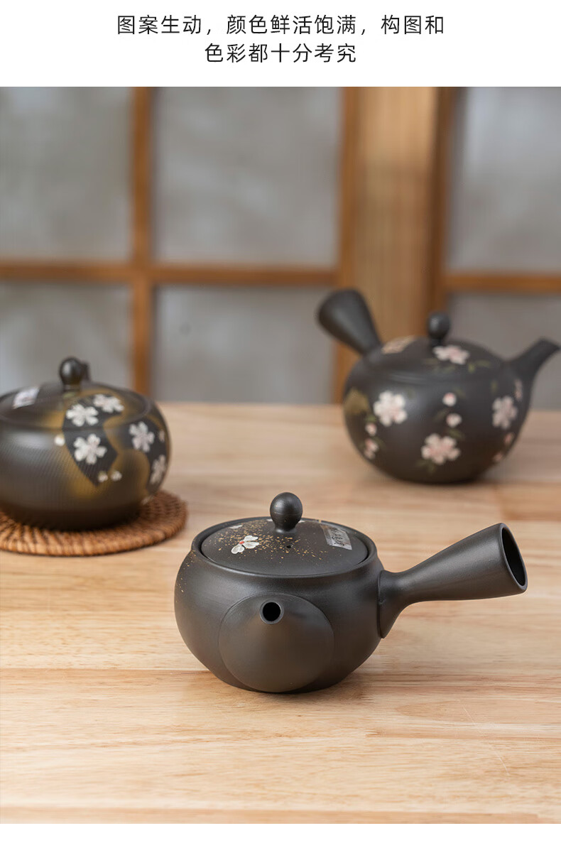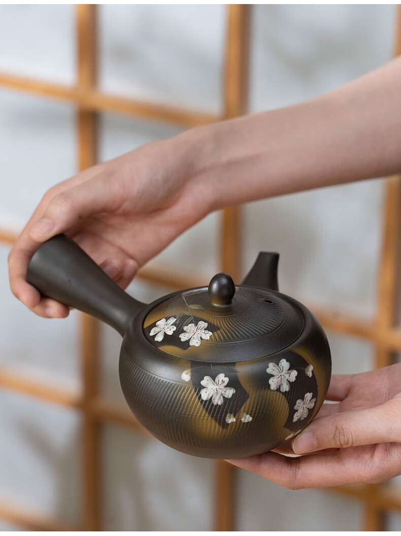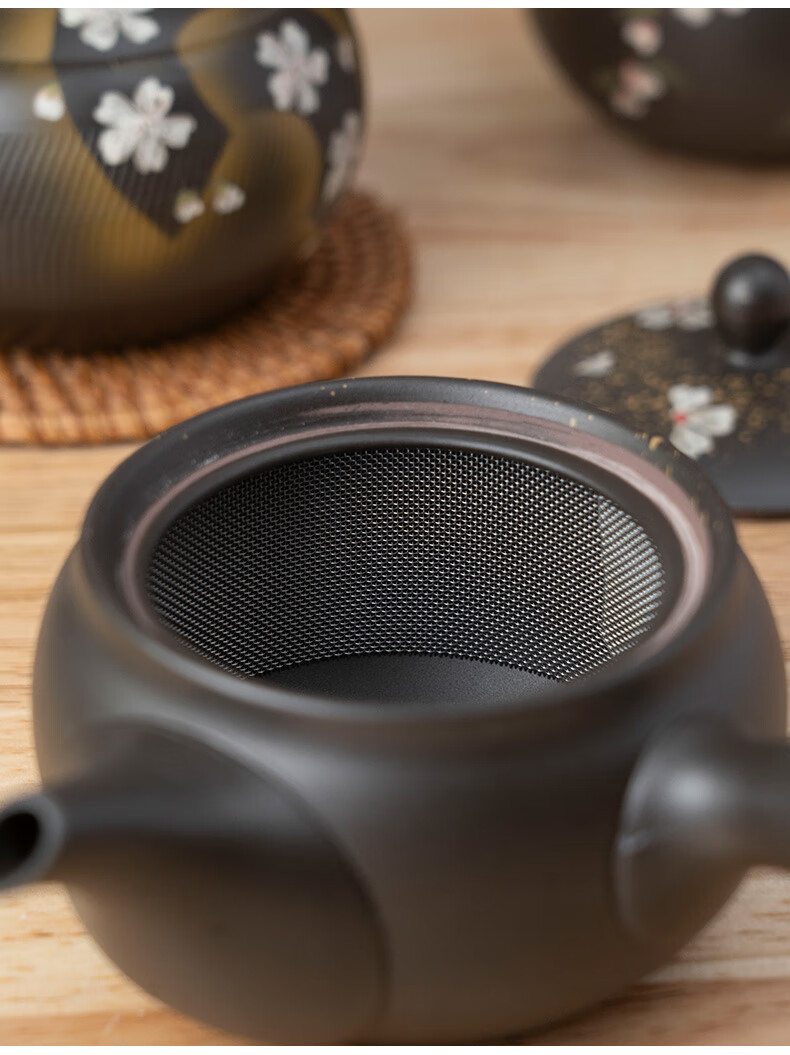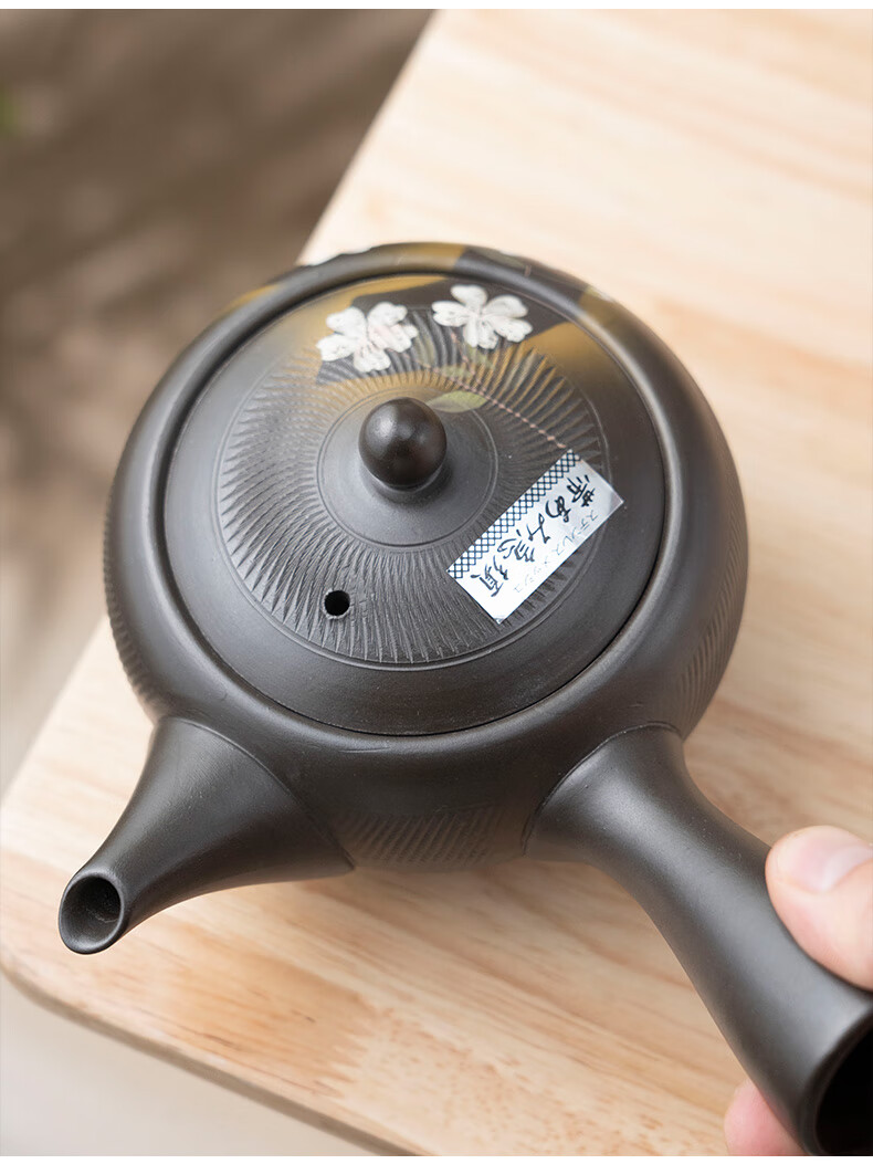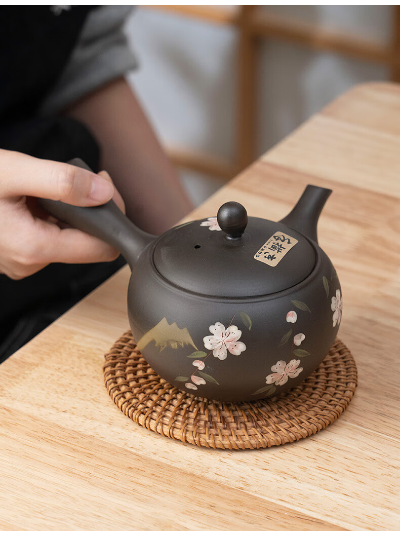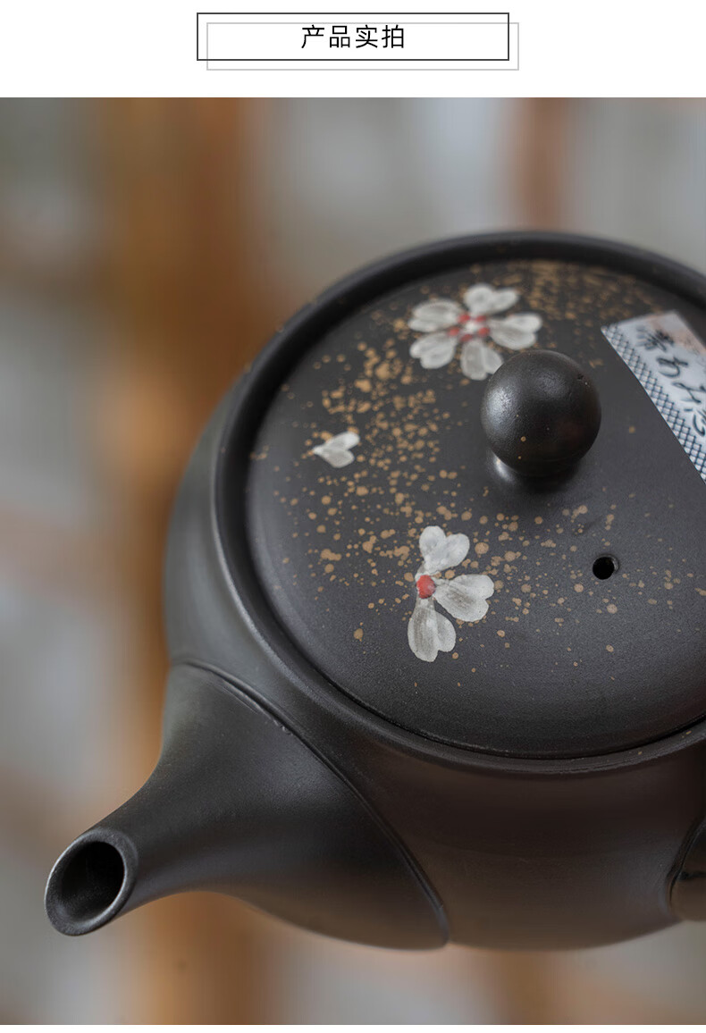 【非同款】美浓烧(Mino Yaki)常滑烧日本进口手作紫砂黑泥富仙手绘樱花复古粗淘过滤泡茶壶茶具