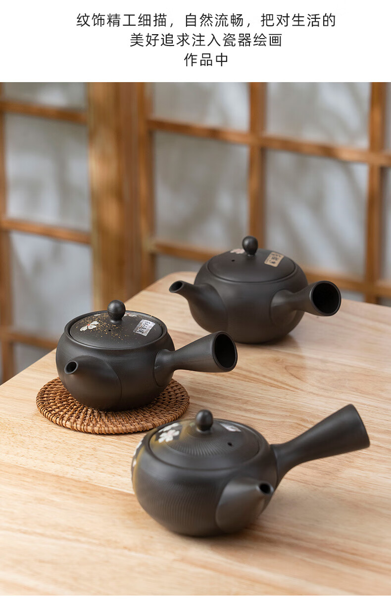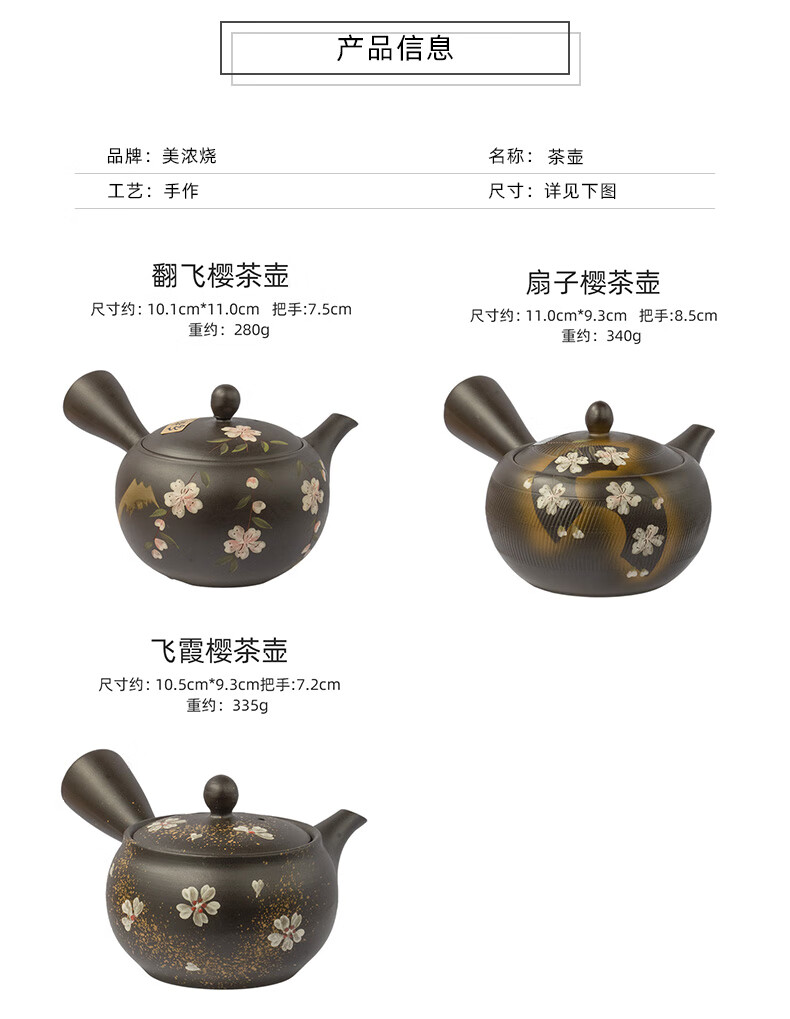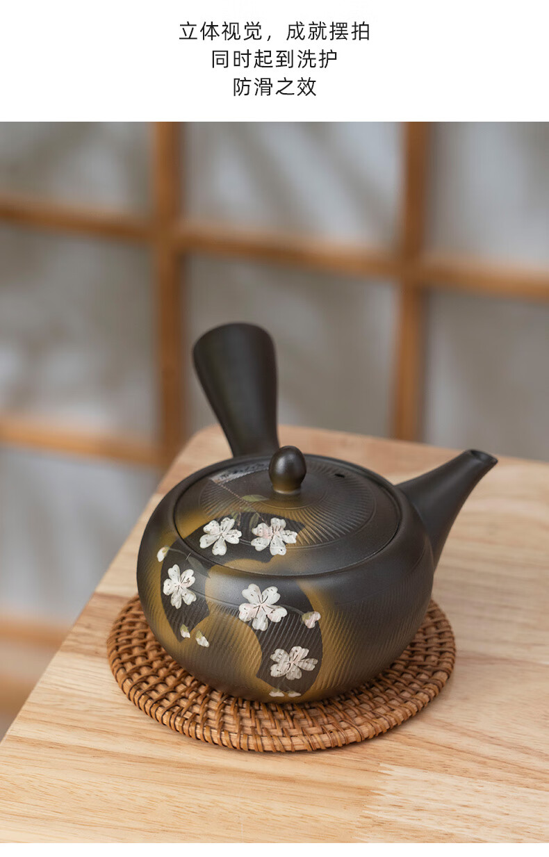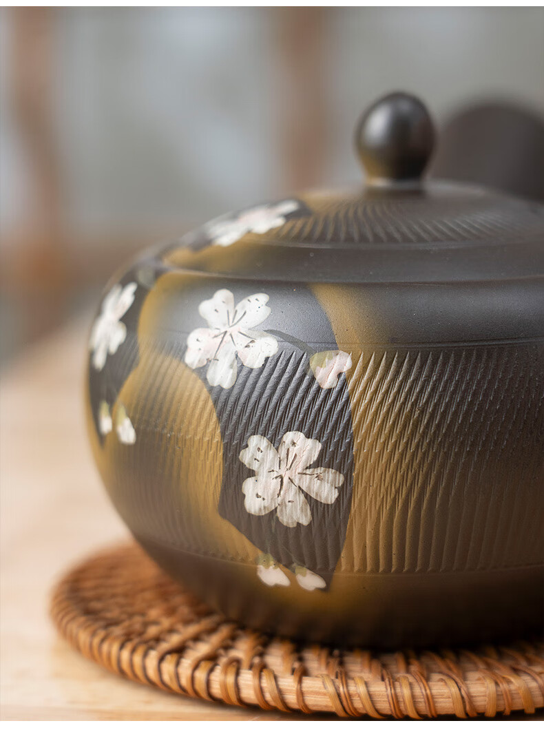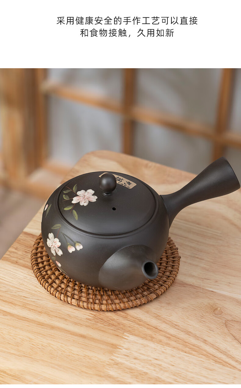 【非同款】美浓烧(Mino Yaki)常滑烧日本进口手作紫砂黑泥富仙手绘樱花复古粗淘过滤泡茶壶茶具