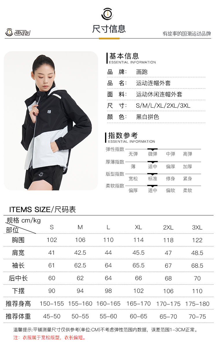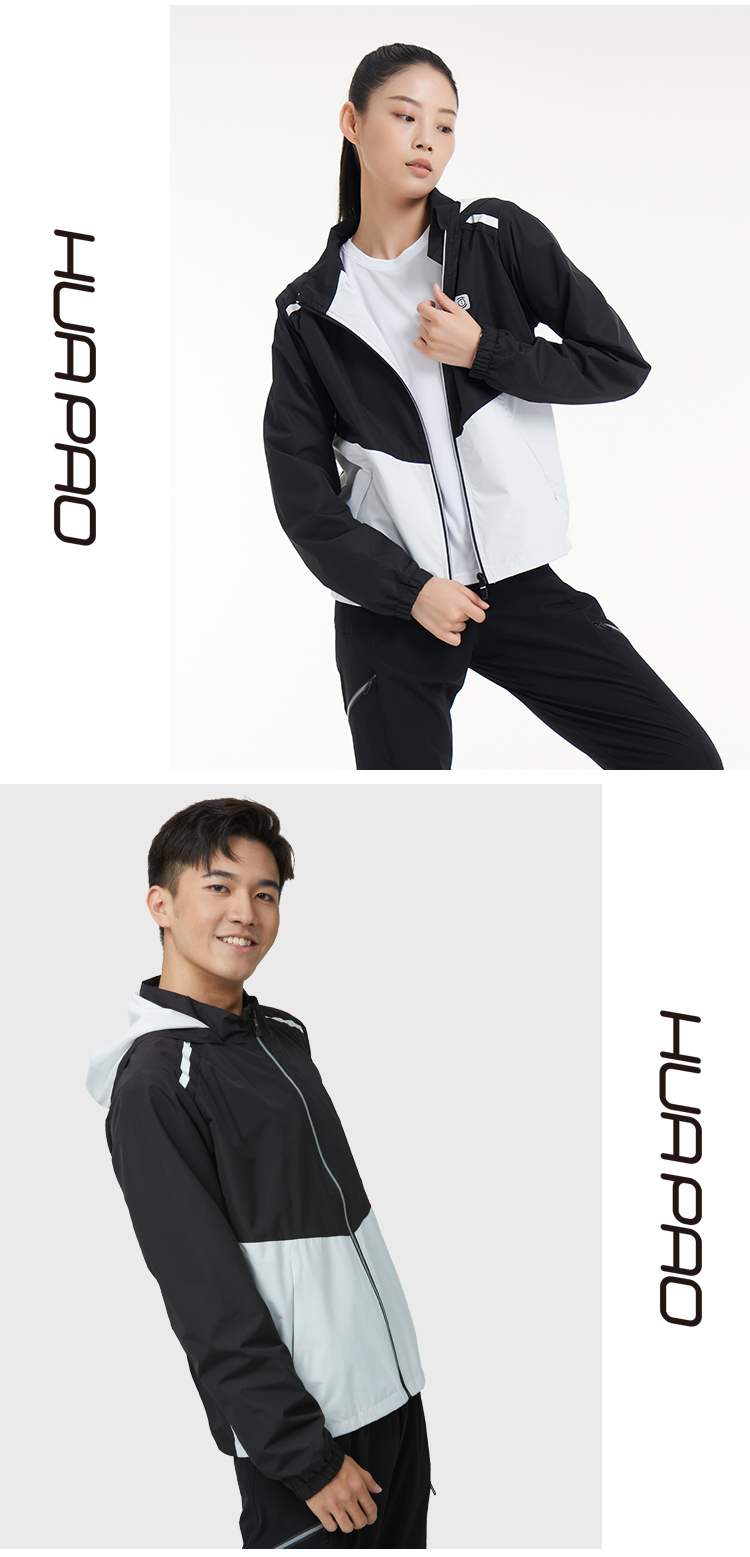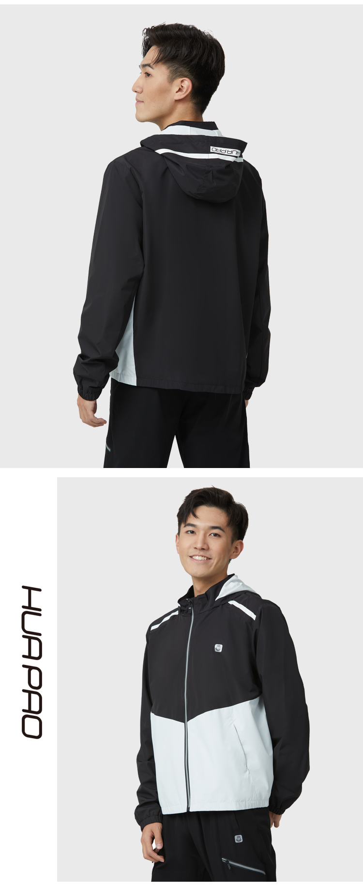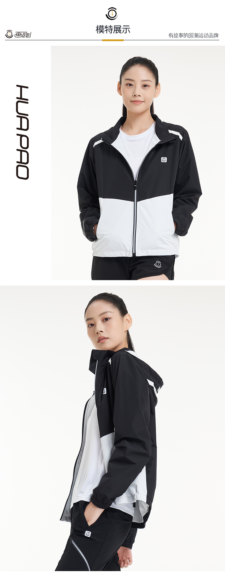 HUAPAO画跑 黑白撞色连帽速干透气防水休闲运动夹克