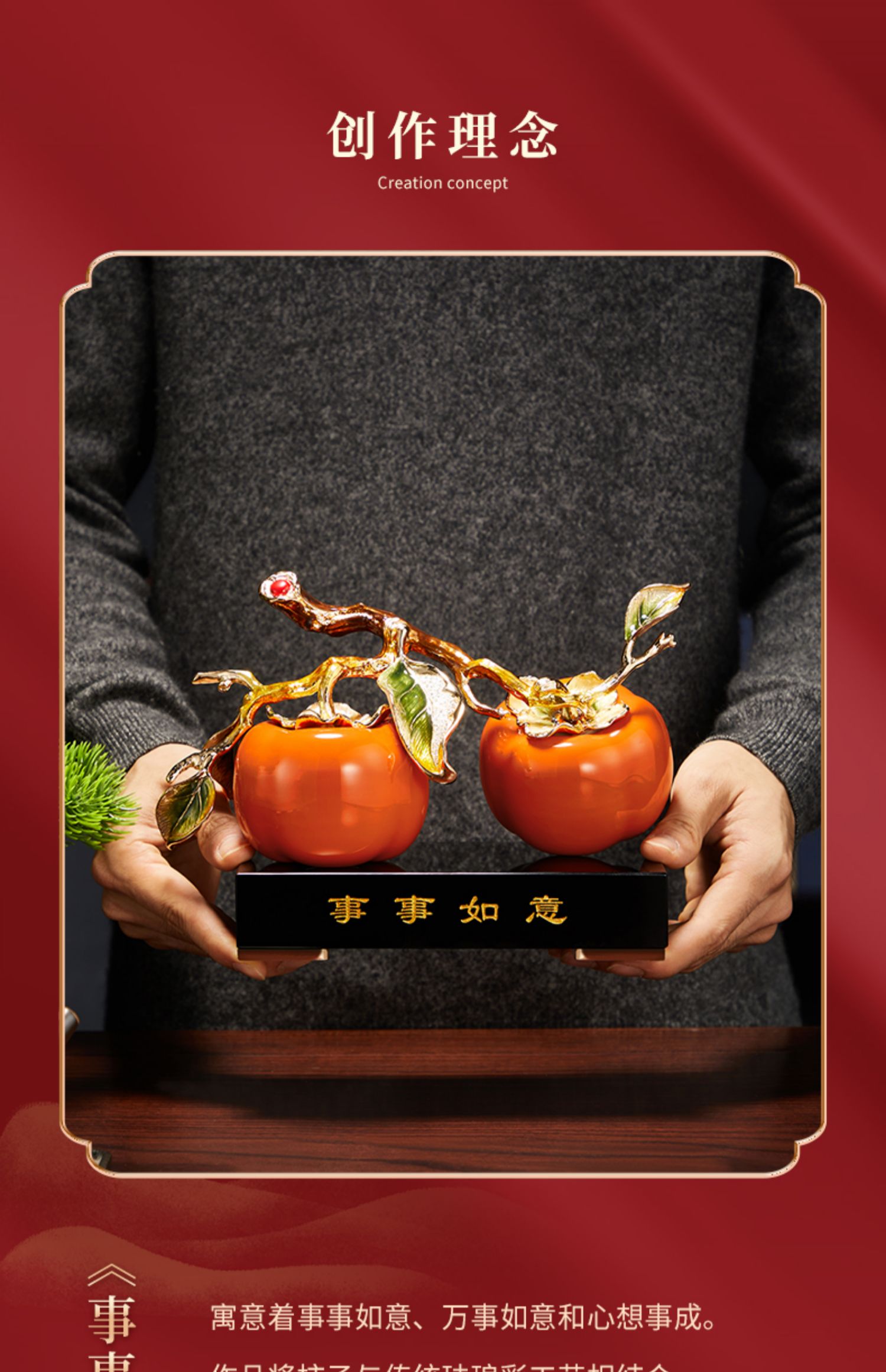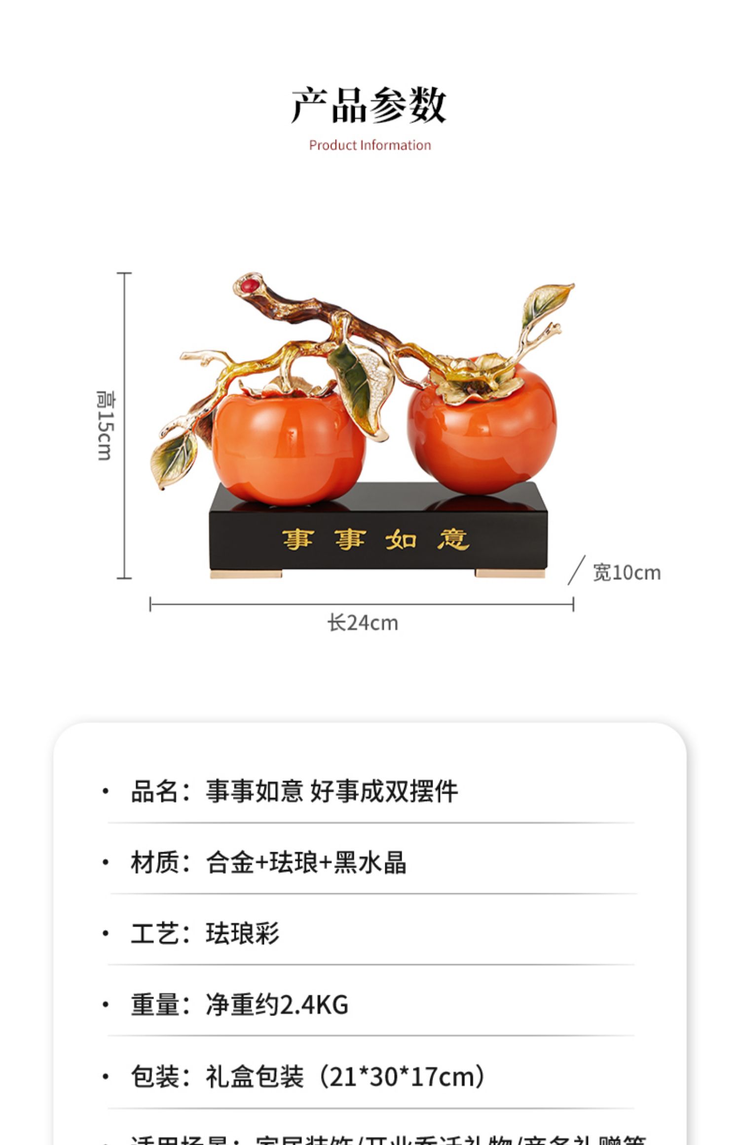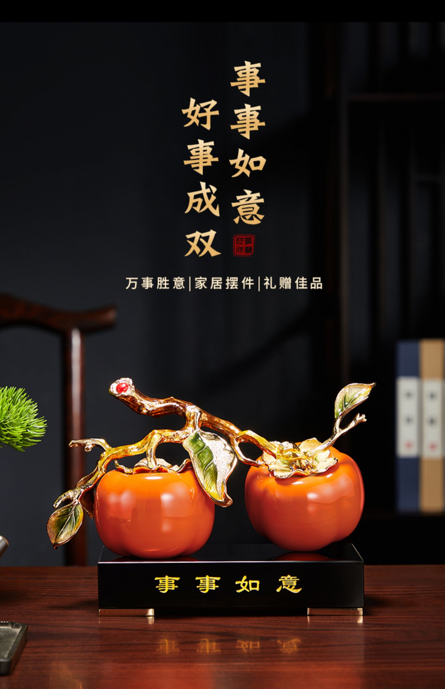 诺诗曼好事成双珐琅摆件客厅书房办公室玄关新中式摆件乔迁贺礼