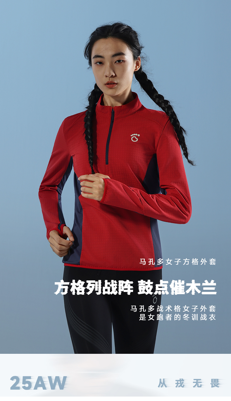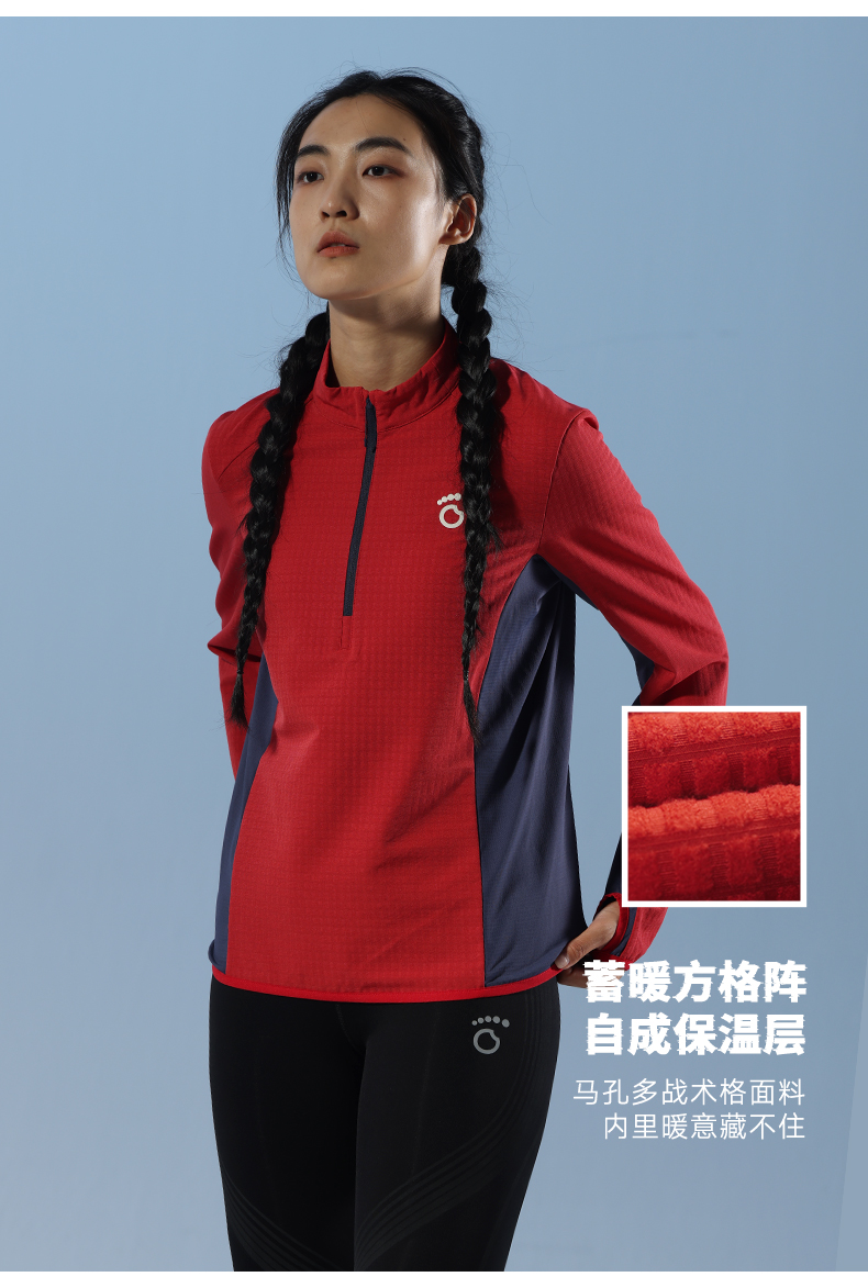 原创单品丨女子半开拉链方格外套 吸湿速干 蓄暖方格 冬训战衣 增加摆臂活动度 多功能袖口 护手掌、看跑表