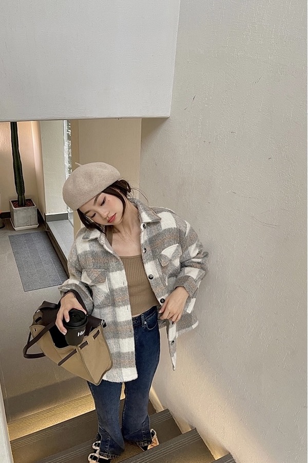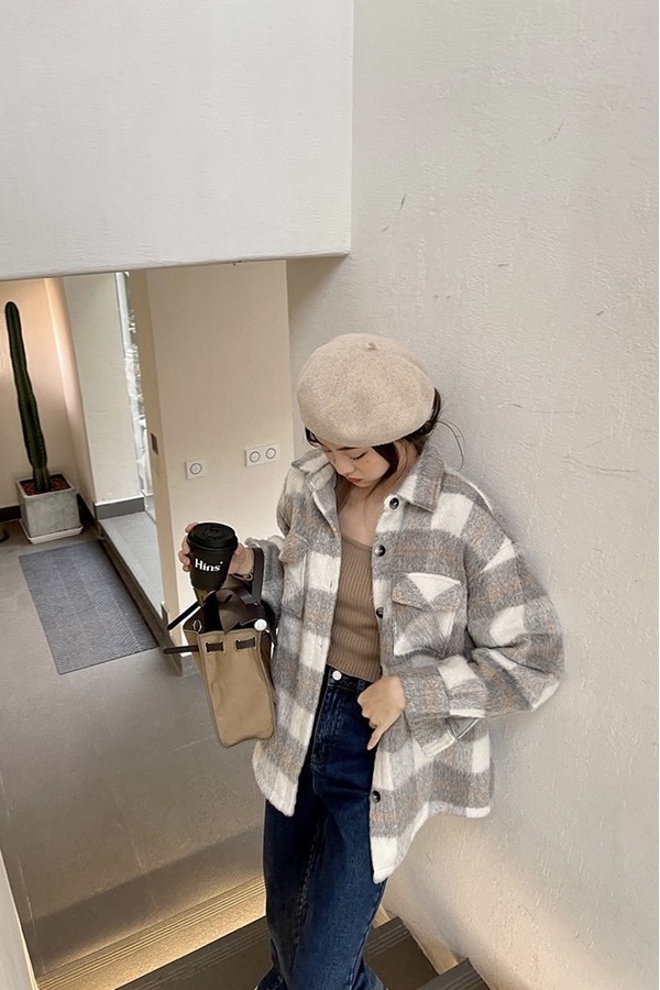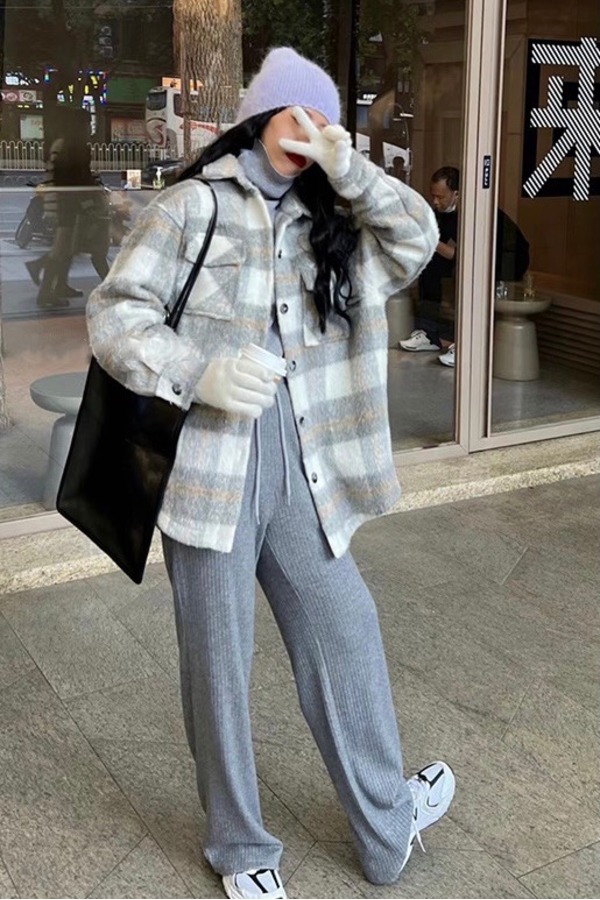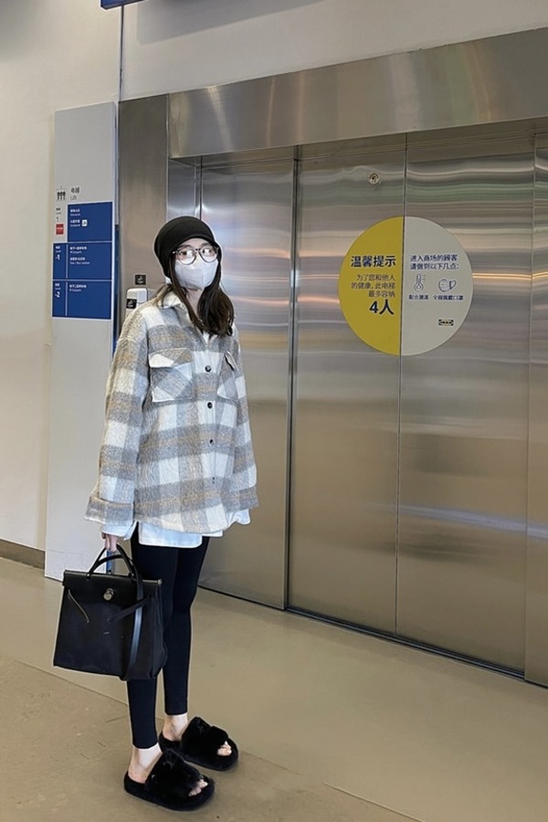 URBAN REVIVO 格纹系带连帽衬衫裙 4200