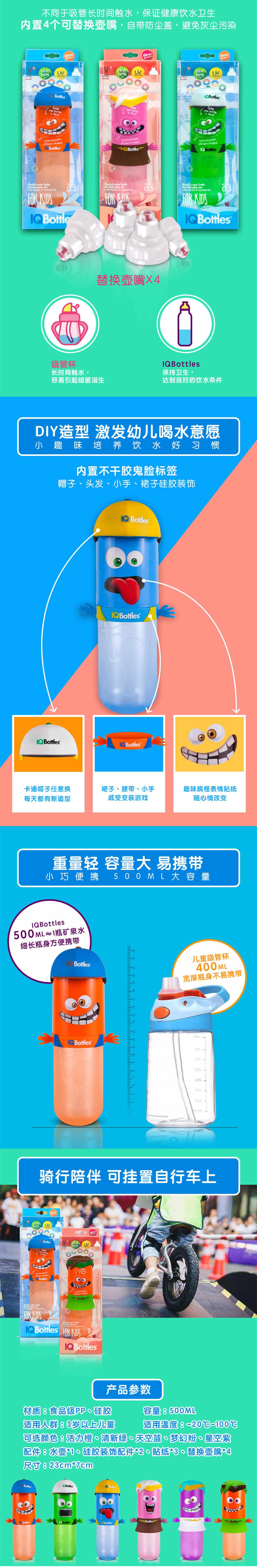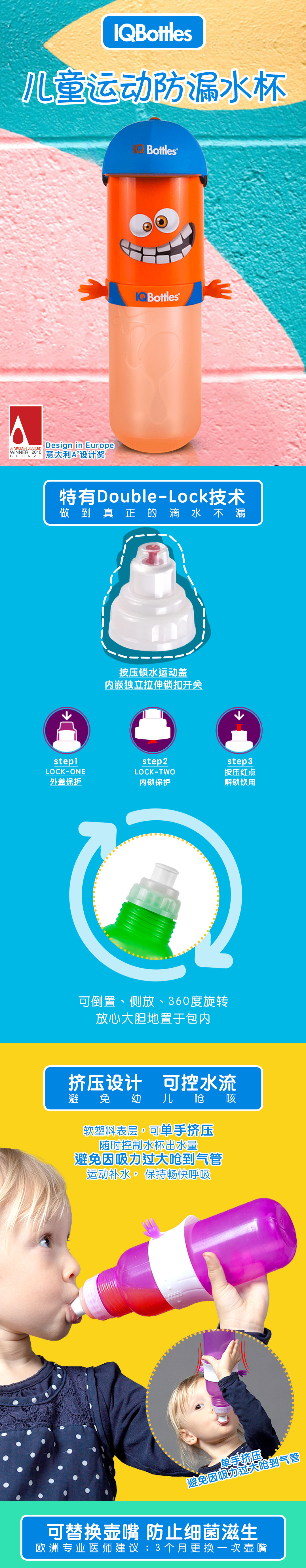IQ bottles儿童运动防漏水杯