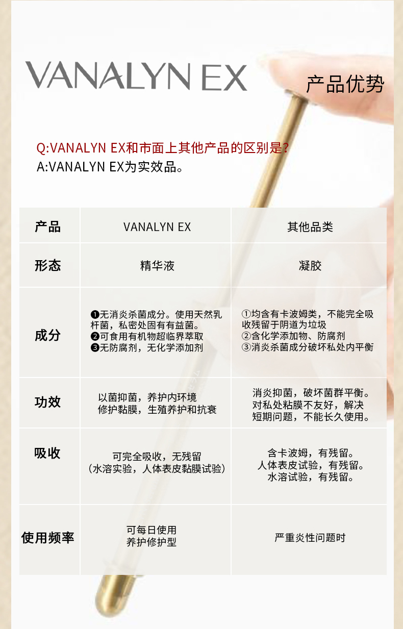 凝胶类的产品基本上主要功能就是杀菌的。另外为了避免进入阴道后外流,凝胶的成分里都添加了卡波姆使得成为胶状。卡波姆不容易被皮肤吸收。