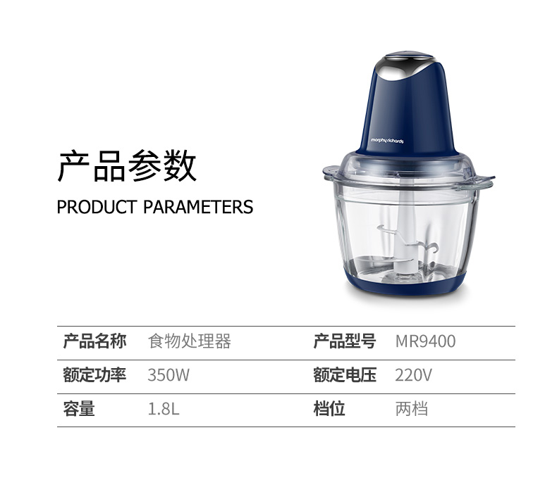 摩飞电器(Morphyrichards)绞肉机家用电动多功能绞馅机辅食机搅拌机打馅MR9400