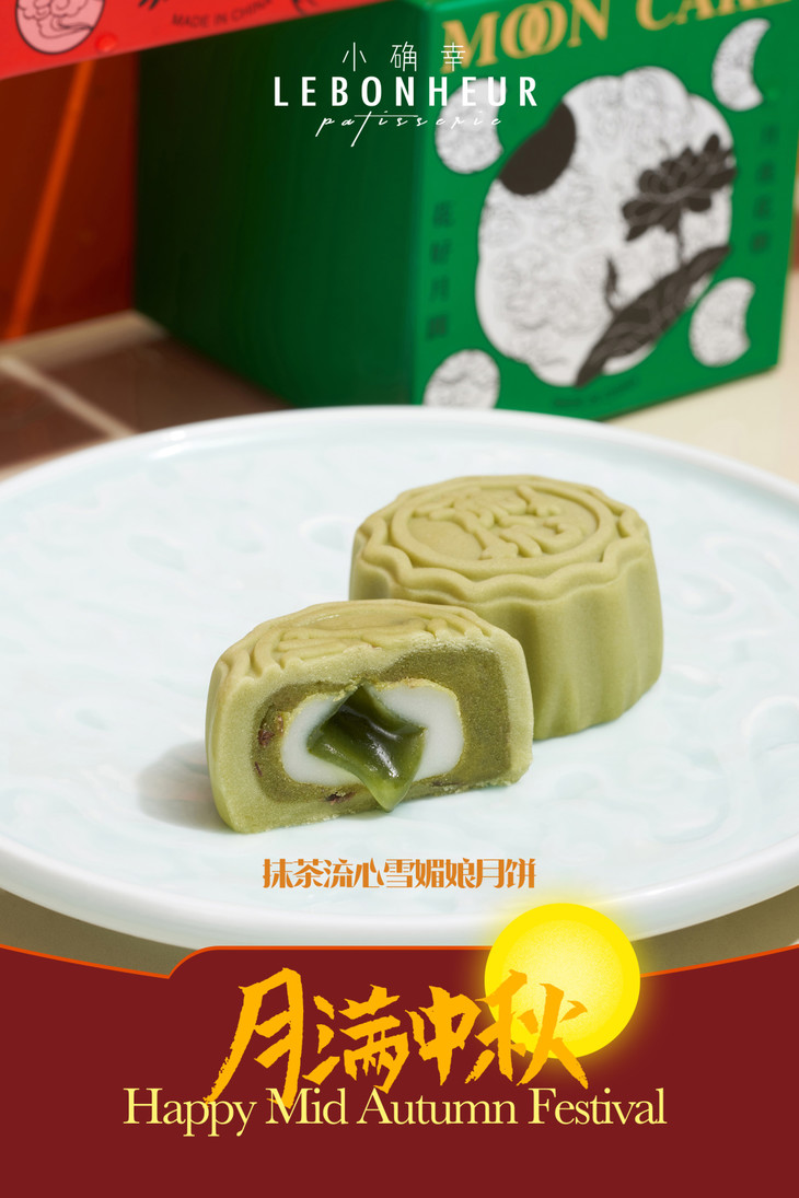 抹茶香气清新解腻,配流心、雪媚娘,传统茶味中带着新中式的趣味