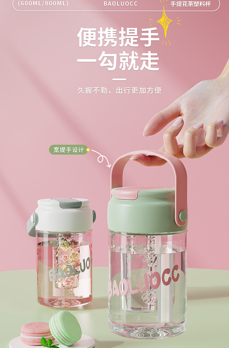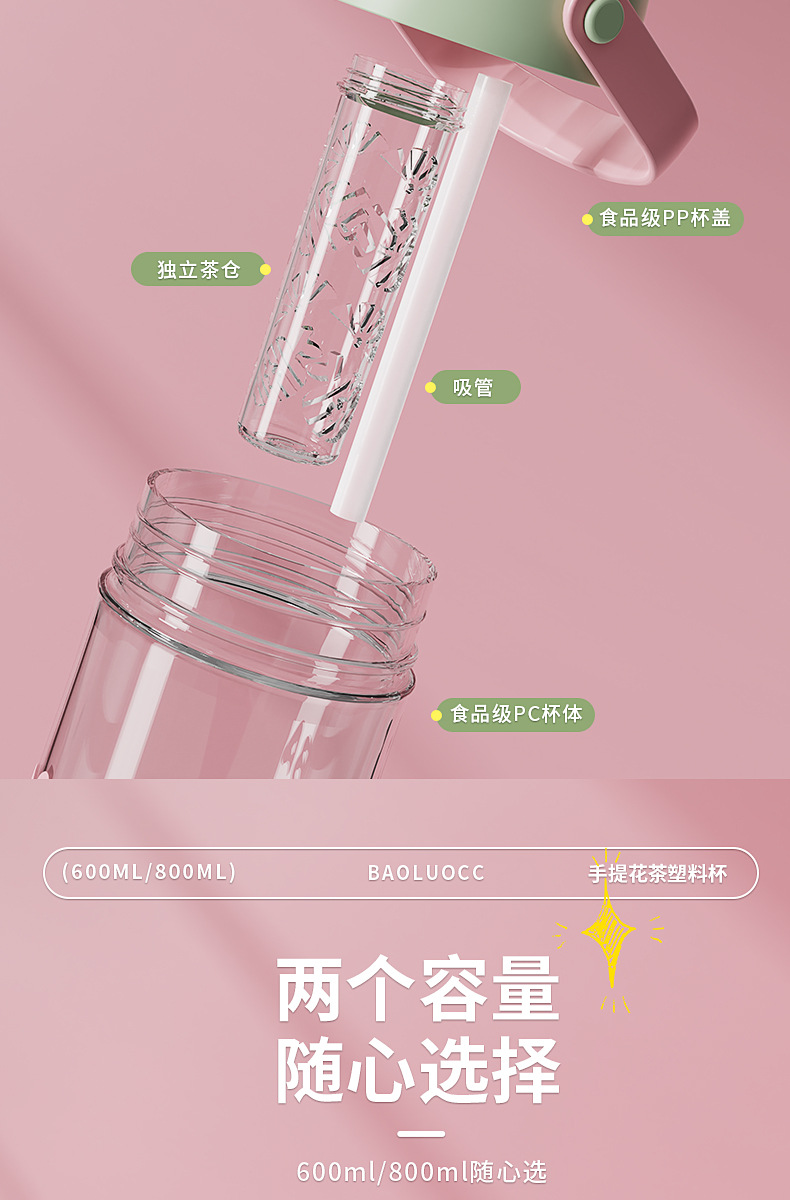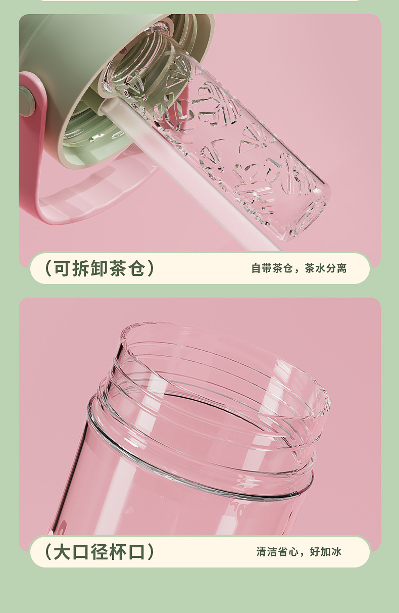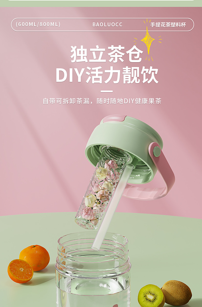 食品级高颜值花茶杯, 800ml大容量+独立茶仓🍵,喝茶不吐茶!樱花粉、奶茶绿等多色可选💖,随时随地畅饮好心情!