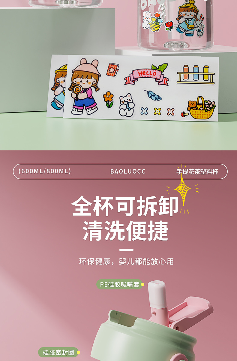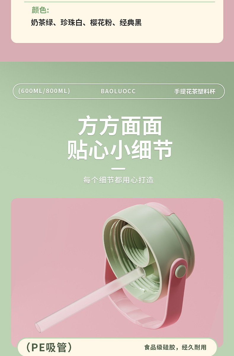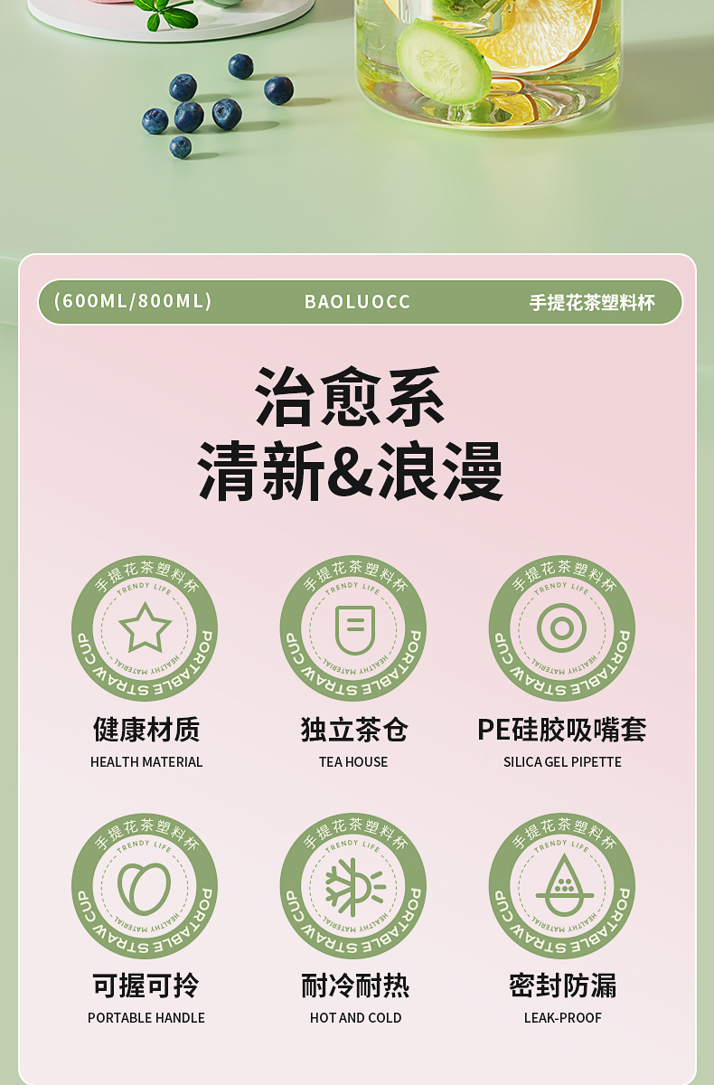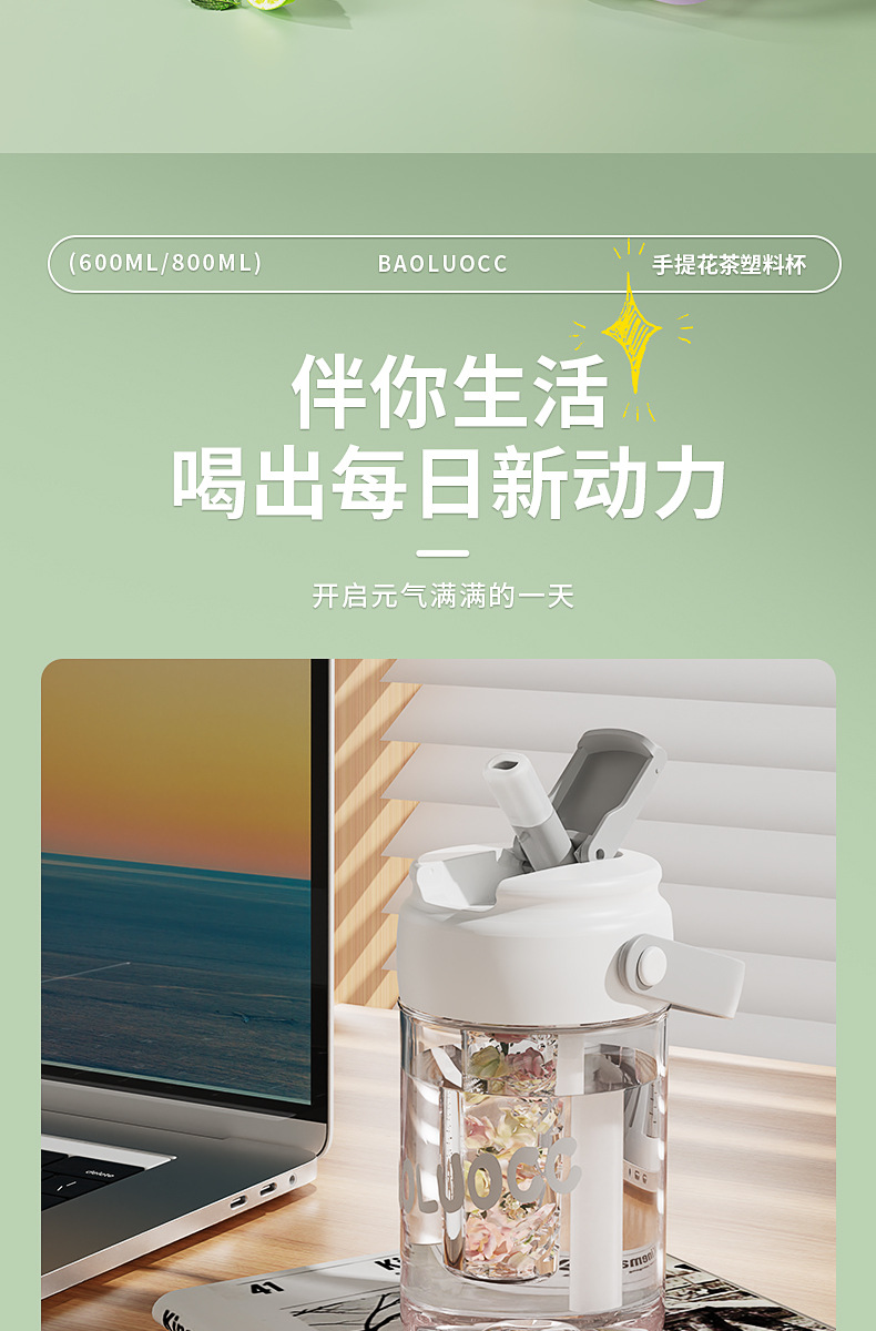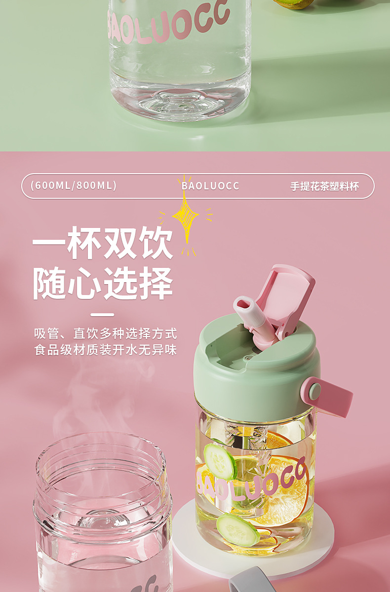 食品级高颜值花茶杯, 800ml大容量+独立茶仓🍵,喝茶不吐茶!樱花粉、奶茶绿等多色可选💖,随时随地畅饮好心情!