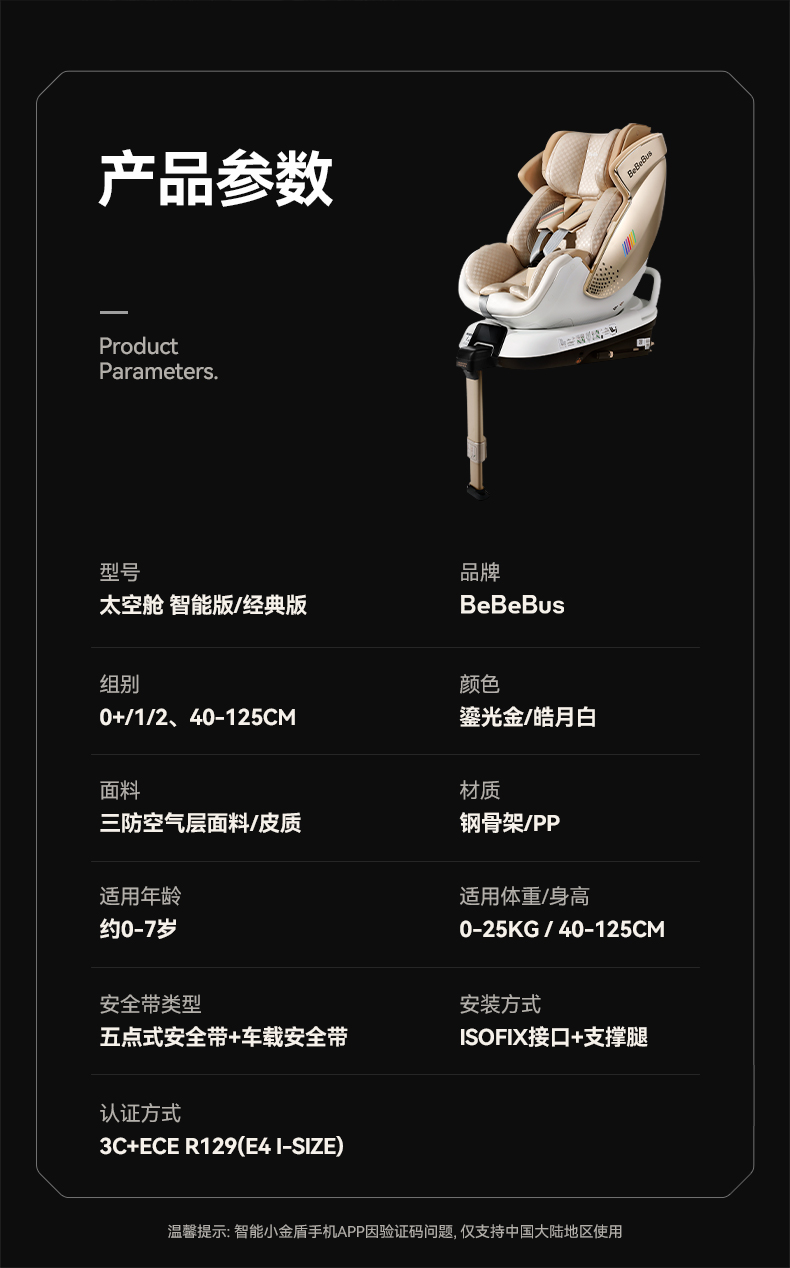 BeBeBus安全座椅 新生儿太空舱 智能通风车载可躺(适用0-7岁)