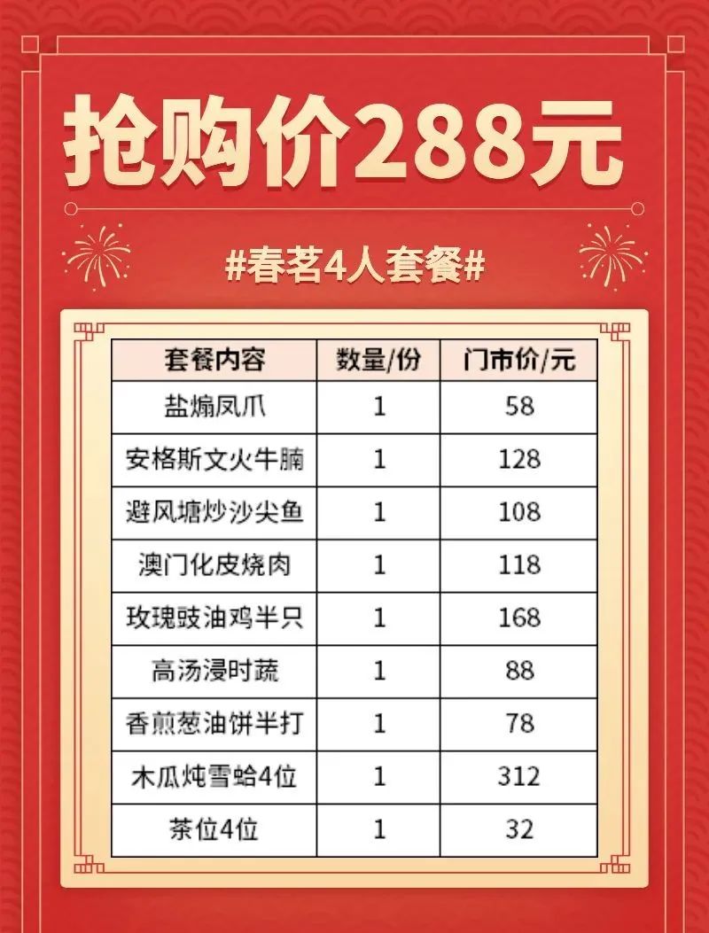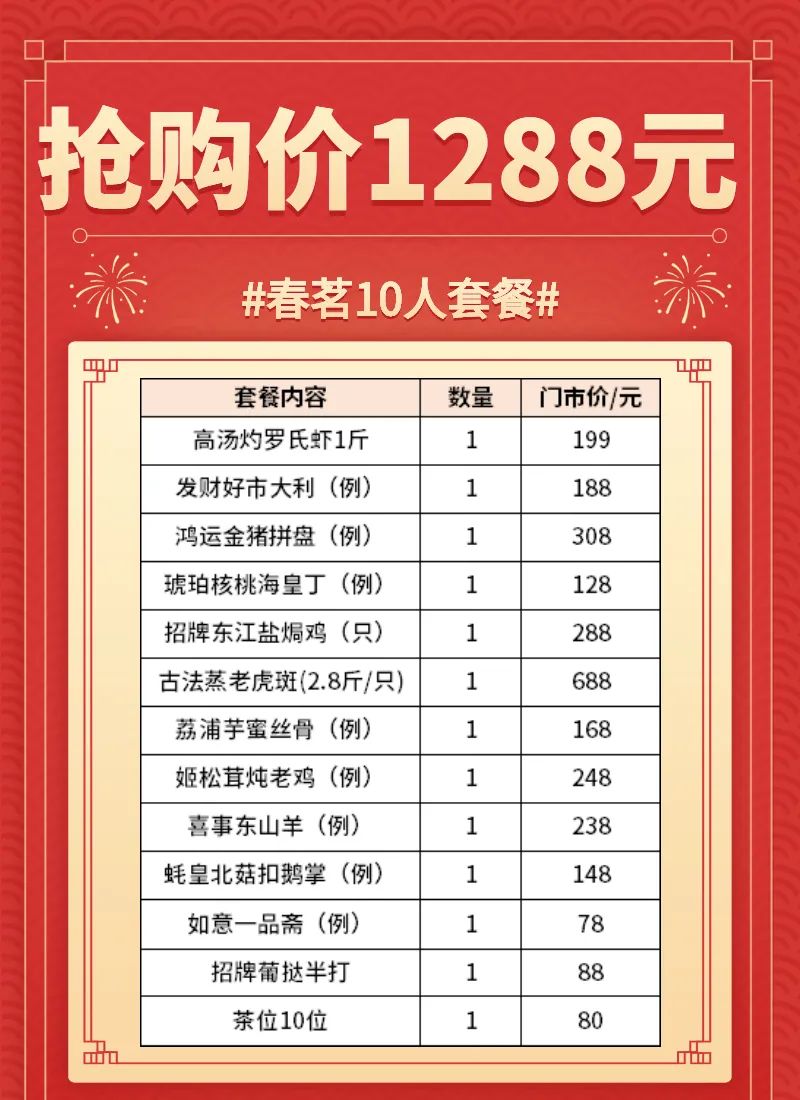 春茗10人套餐抢购价:1288元(门市价:2847元)