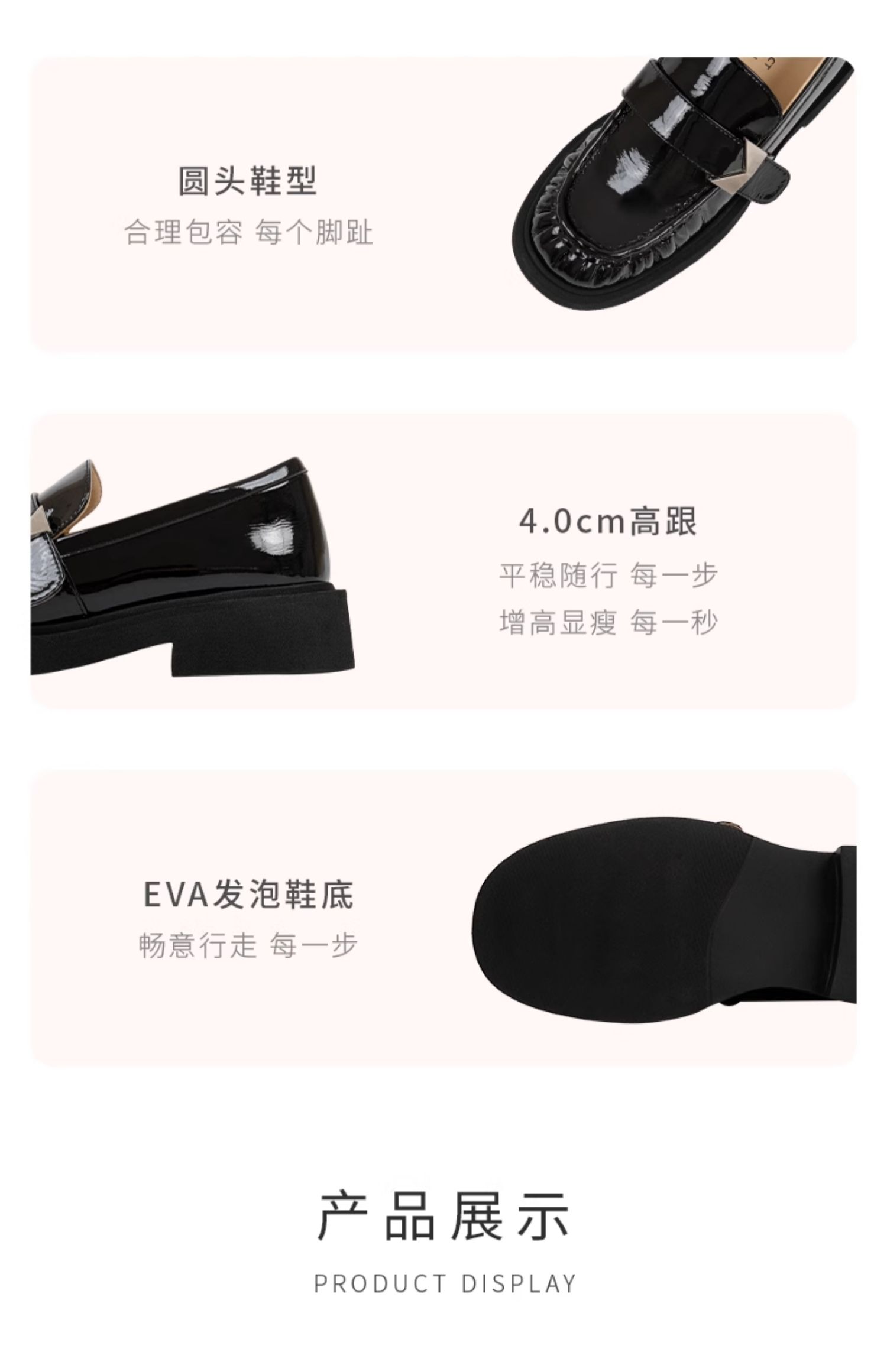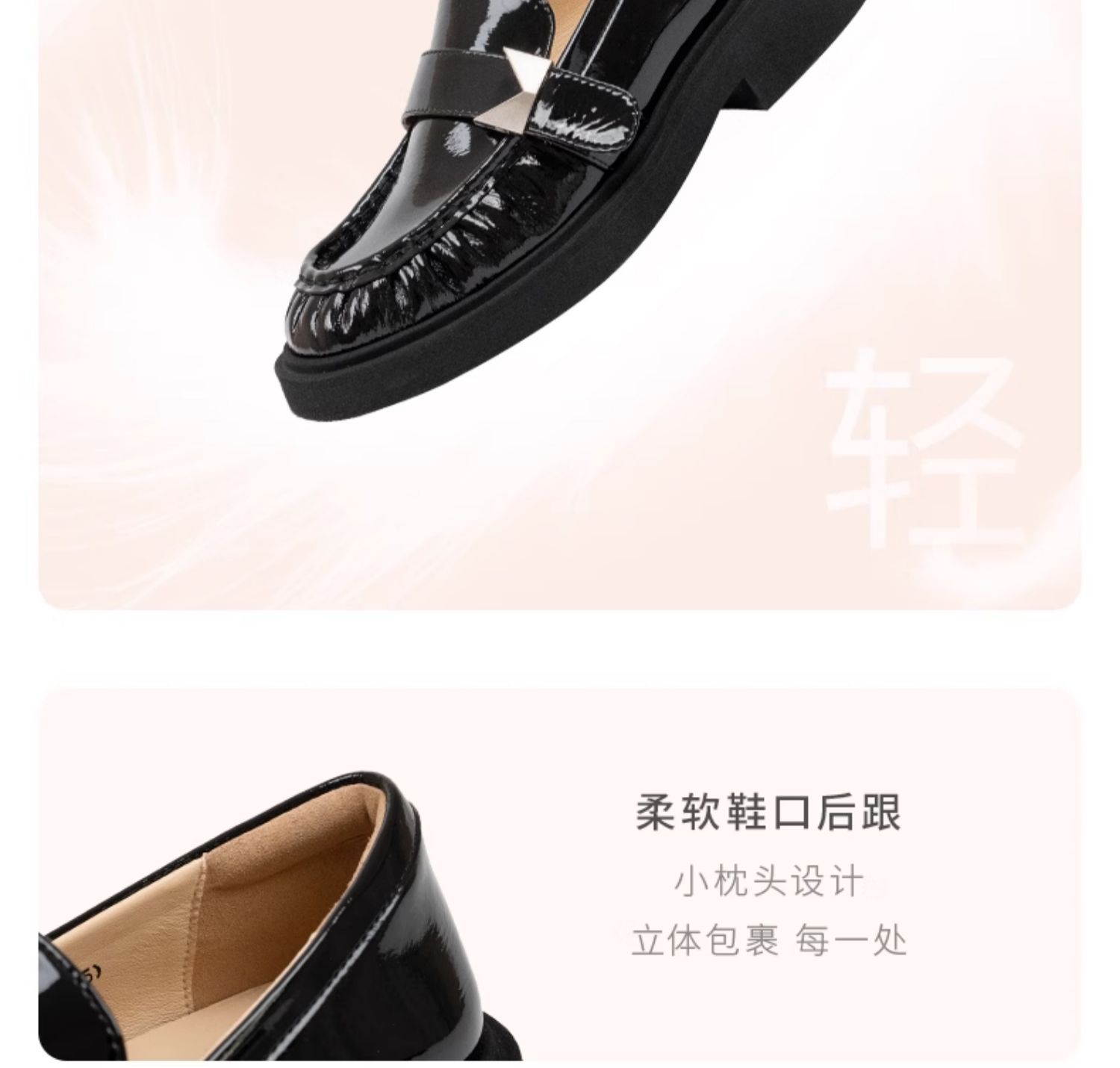 | 【材质】 鞋面:牛漆皮 内里:羊皮 |