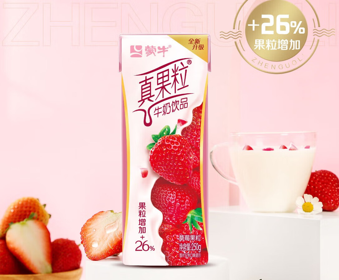 【自营】蒙牛真果粒草莓果粒牛奶饮品250g *12瓶一提装发货