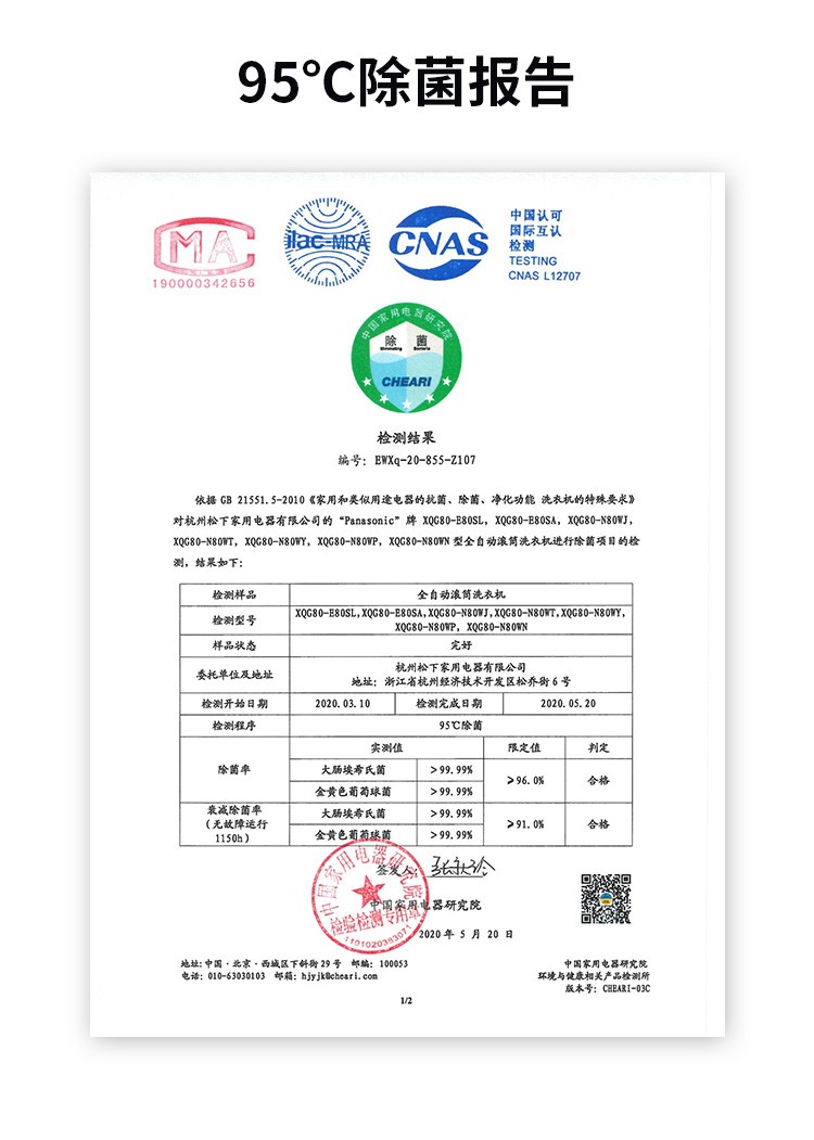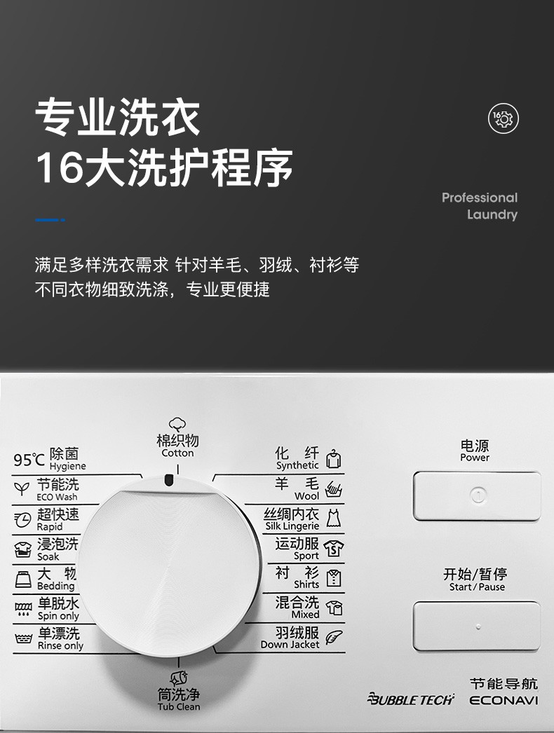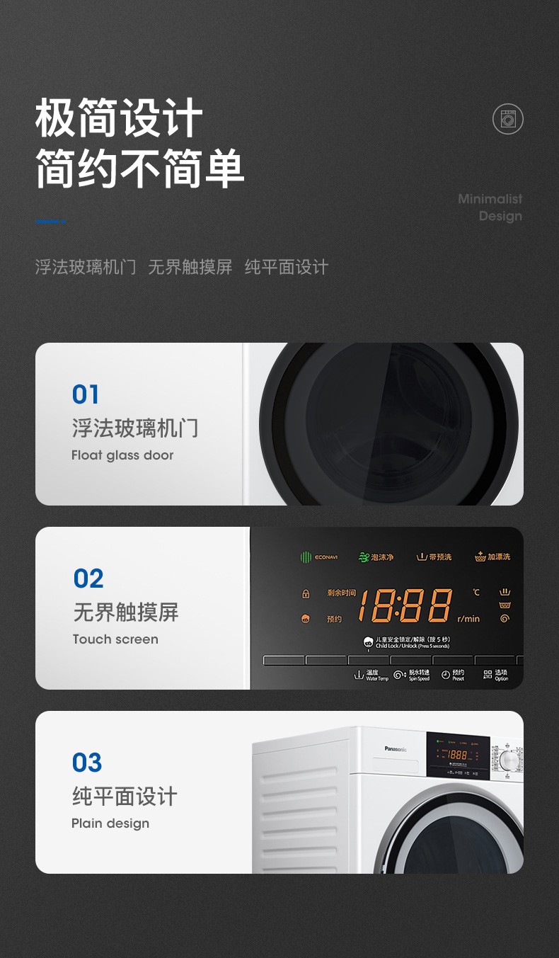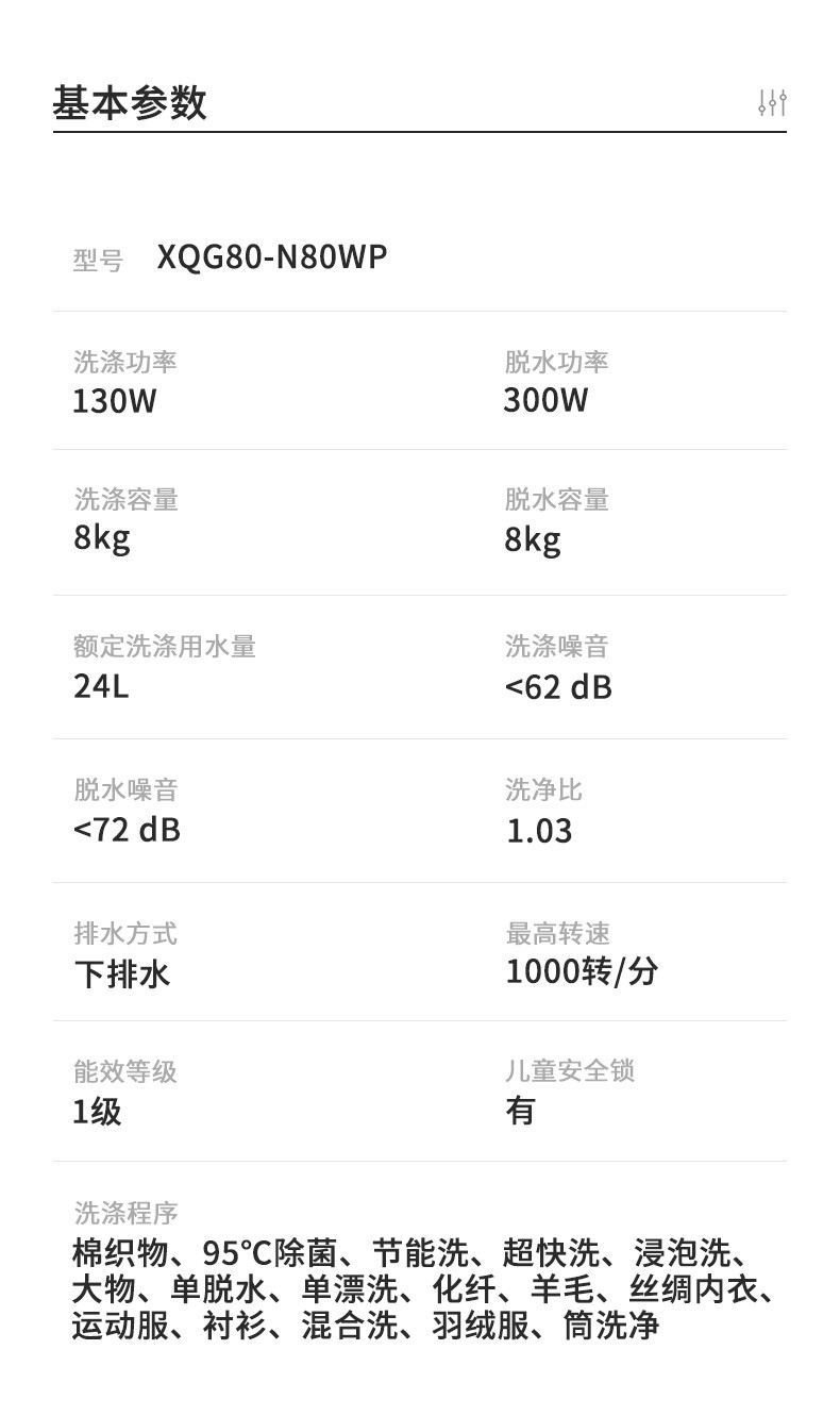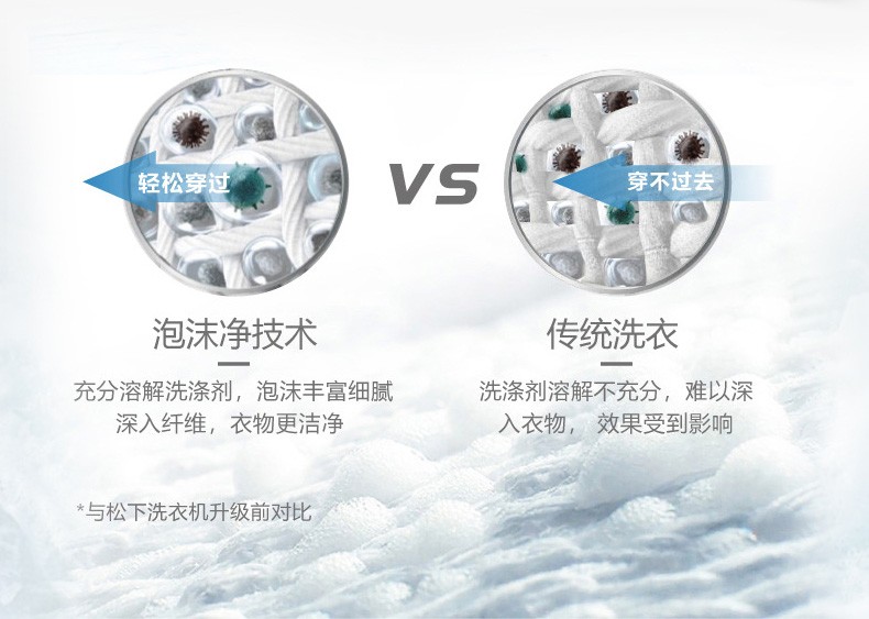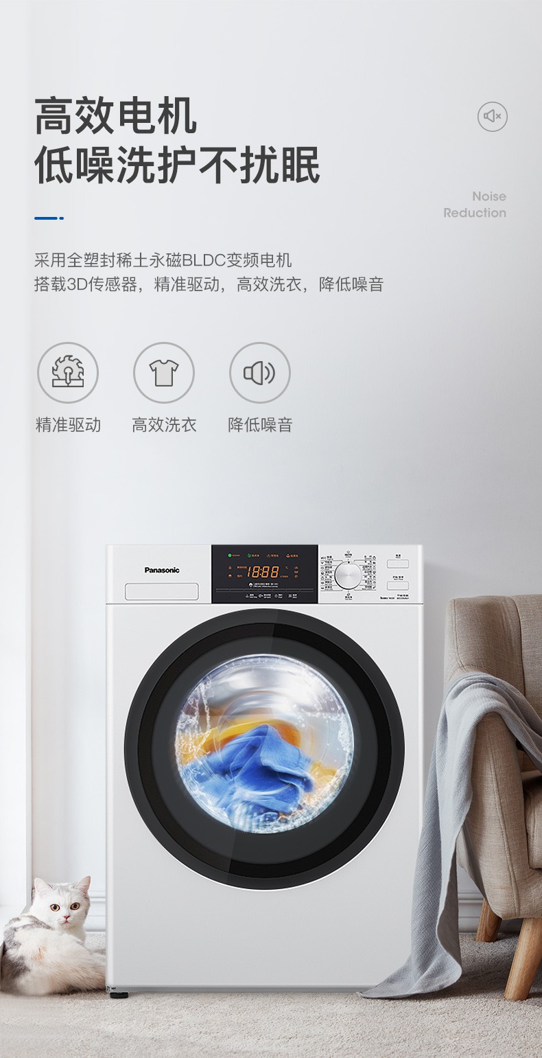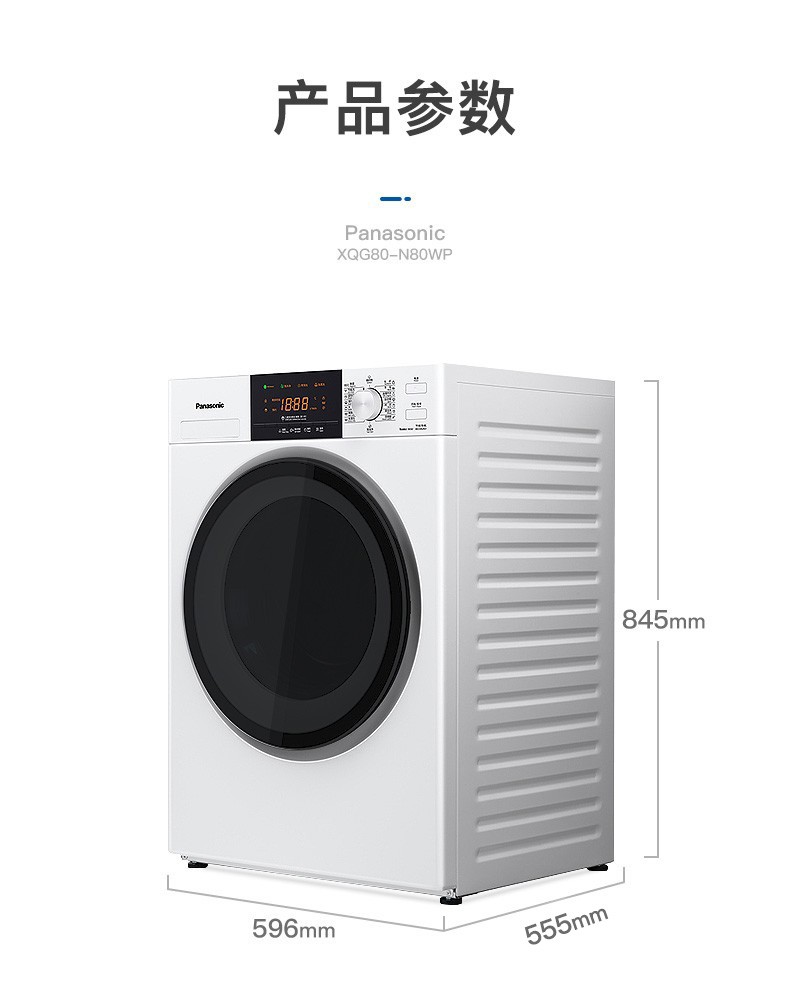 松下(Panasonic)全自动变频滚筒洗衣*公斤下排水节能节水泡沫净XQG80-N80WP 白色