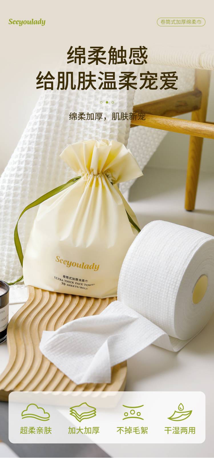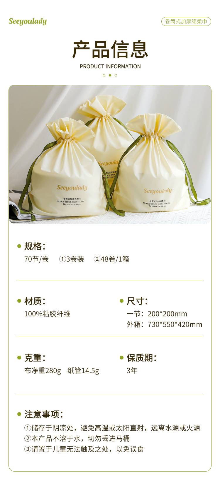 定制款 一次性卷筒式加厚绵洗脸巾升级版(1组 3袋)