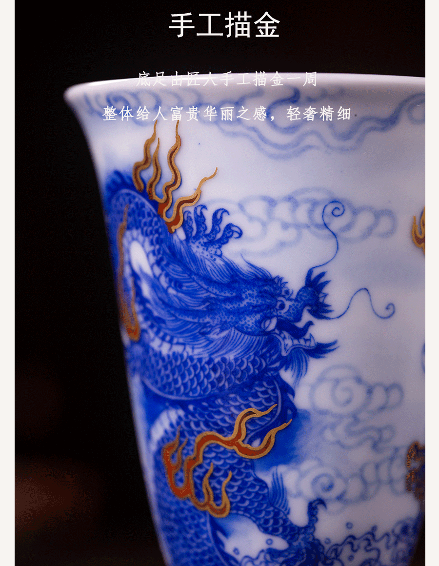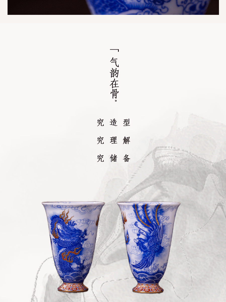 B-XSF- 一溪山房青花斗彩工艺 龙凤呈祥闻香杯